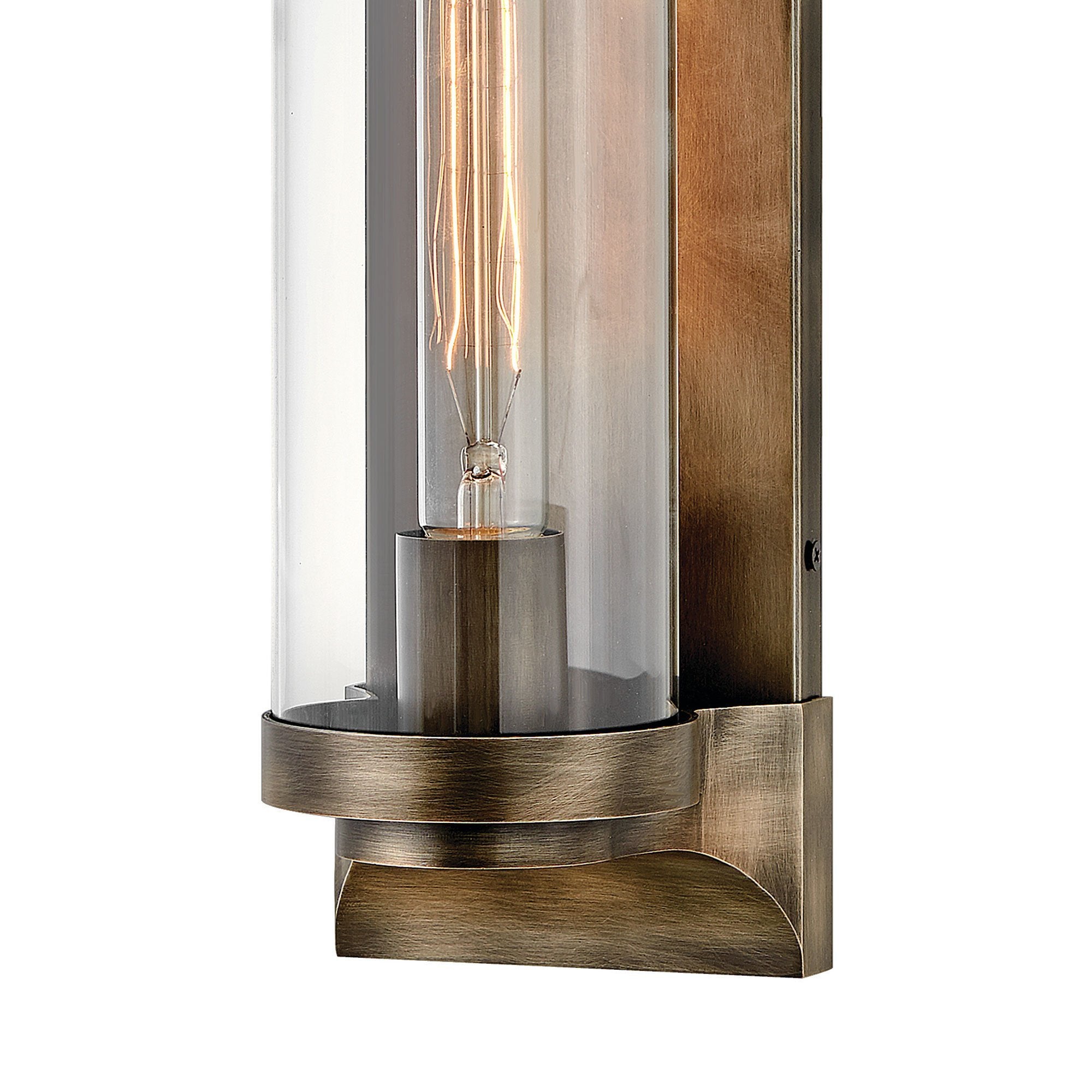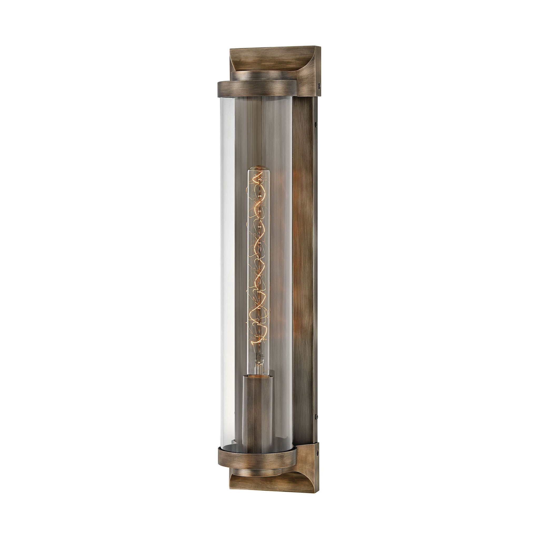 Unmitigated elegance creates a gallery-inspired look and feel to the striking Pearson Outdoor Wall Light from Hinkley, transforming an exterior space into a haven for sleek design. An intriguing design blends a vintage-style filament with upscale, exquisite elements in an aluminum frame with continuous artful elements including end caps sealing a cylindrical clear glass shade.