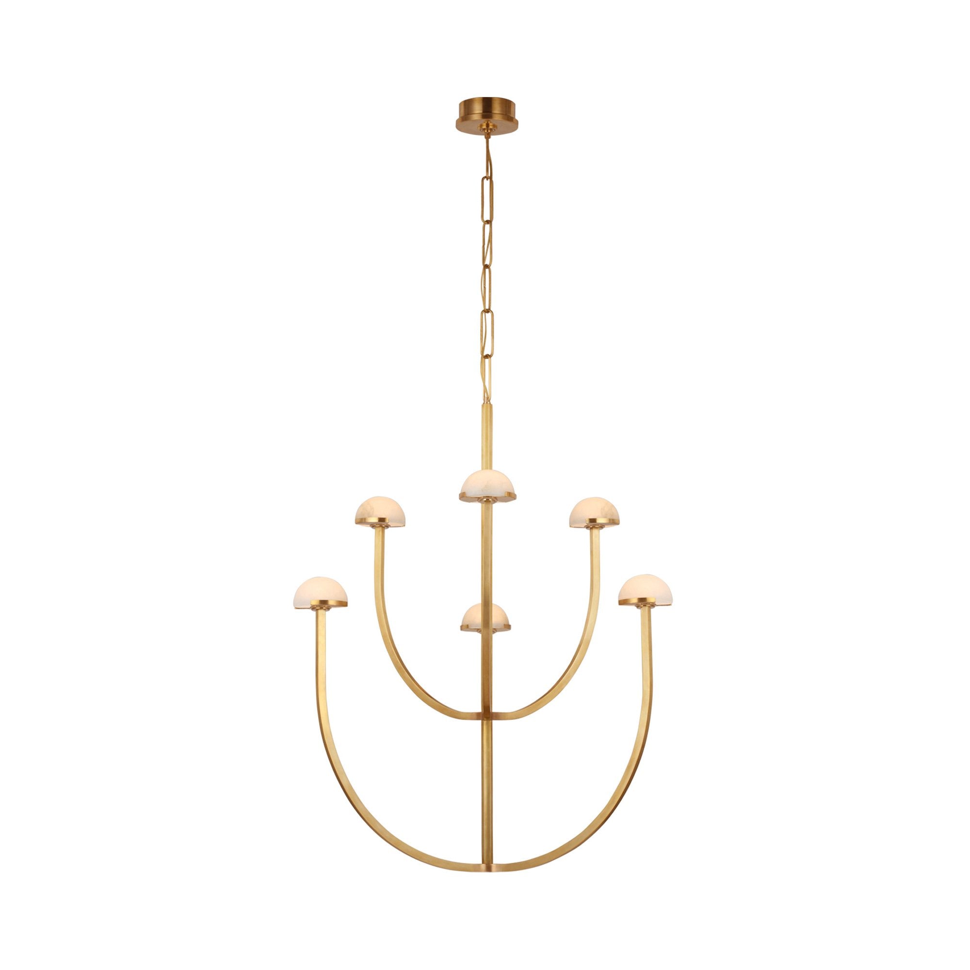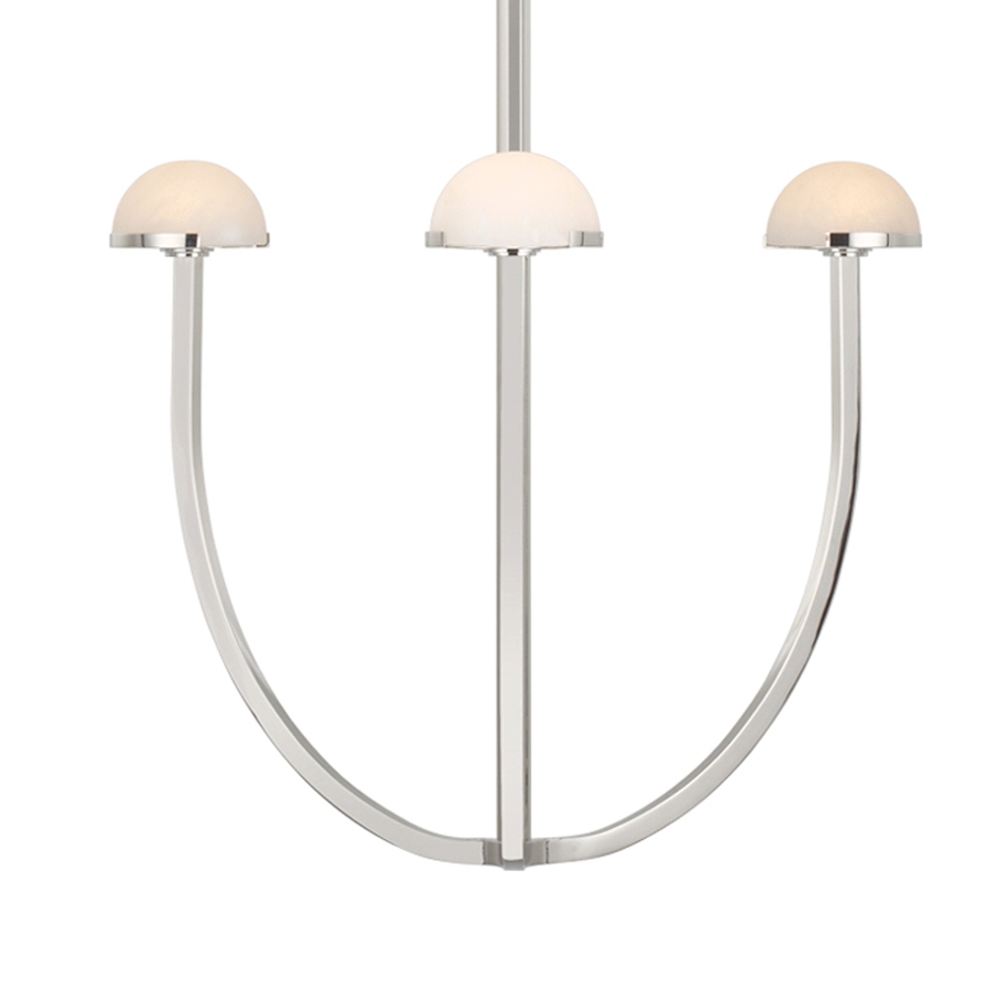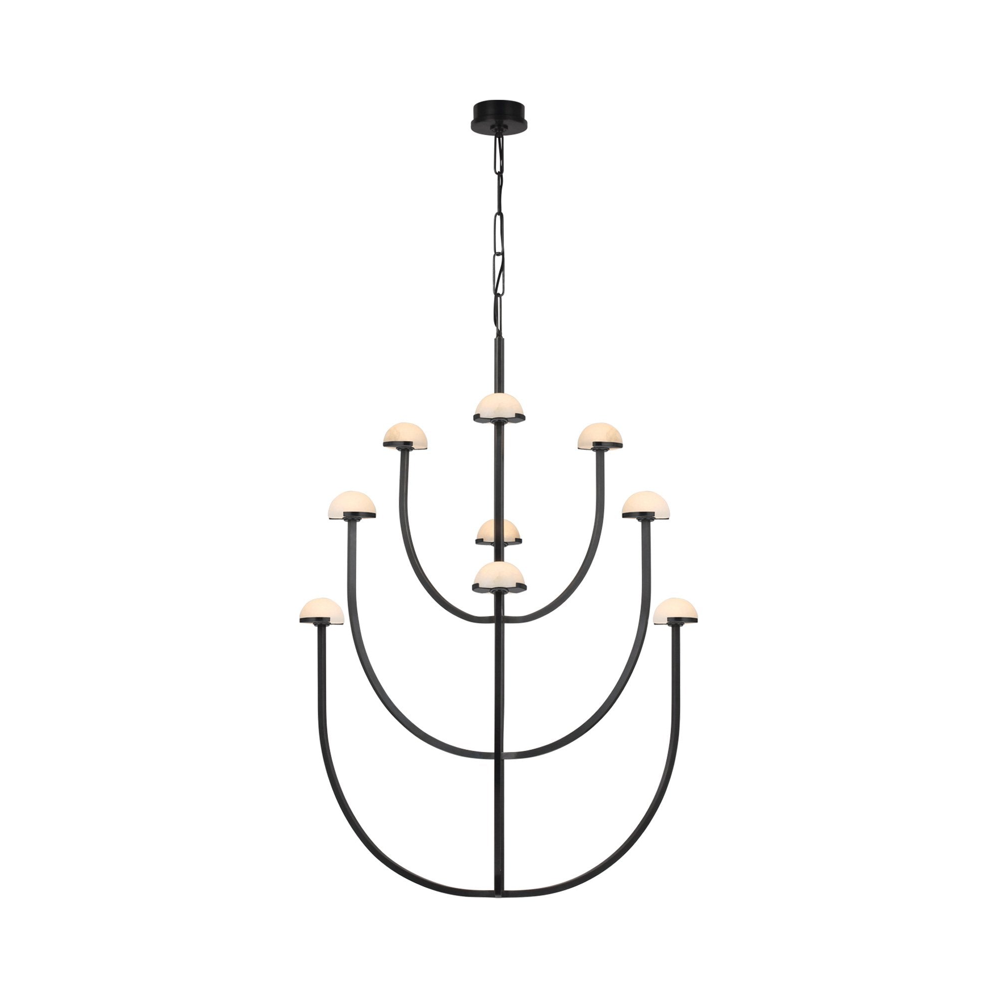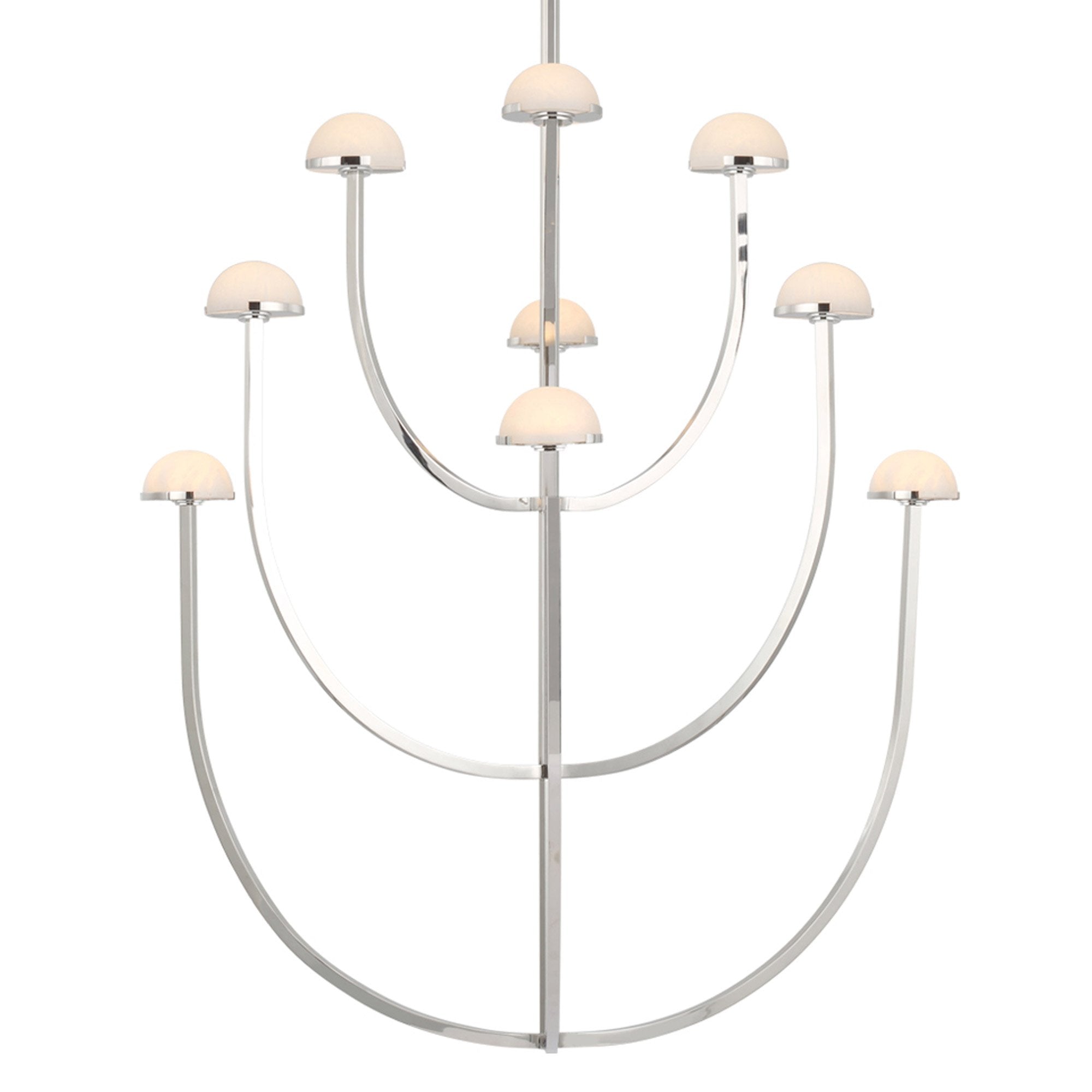 Bold U-shaped frames host petite alabaster shades in the engaging Pedra LED Chandelier from Visual Comfort Signature. Gorgeous over a sophisticated entry or dining table, the chandelier draws the eye with an artistic profile as it complements surrounding decor to perfection.