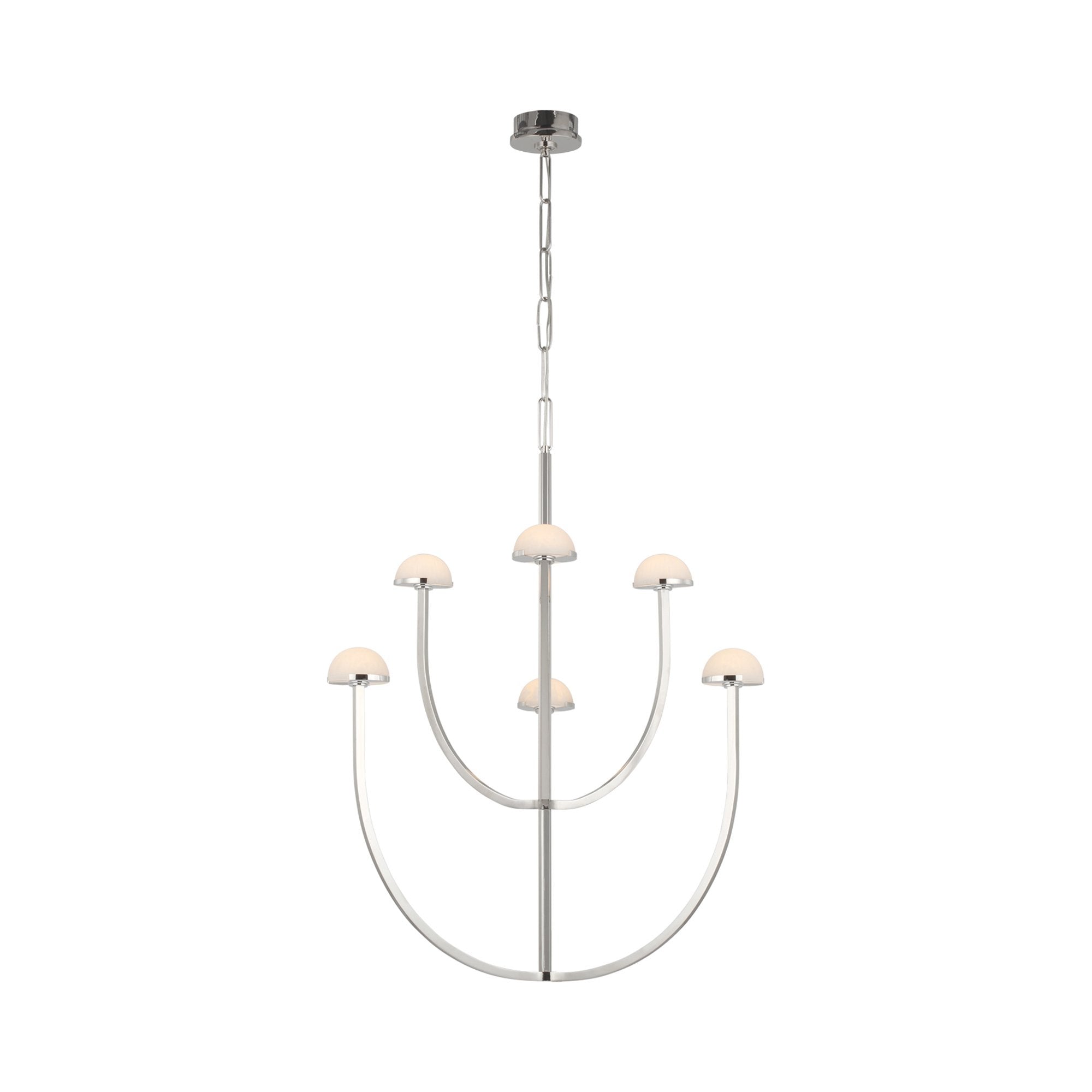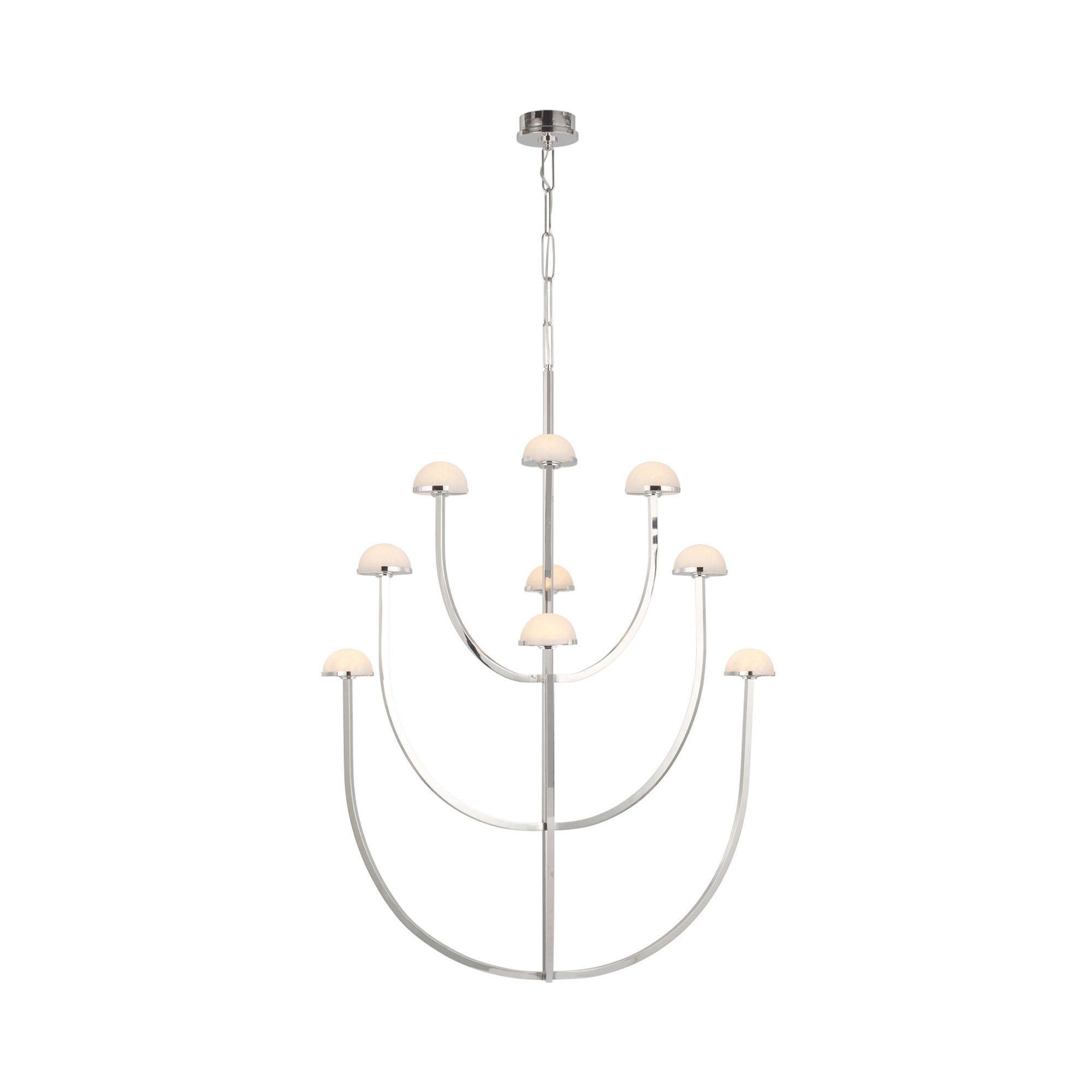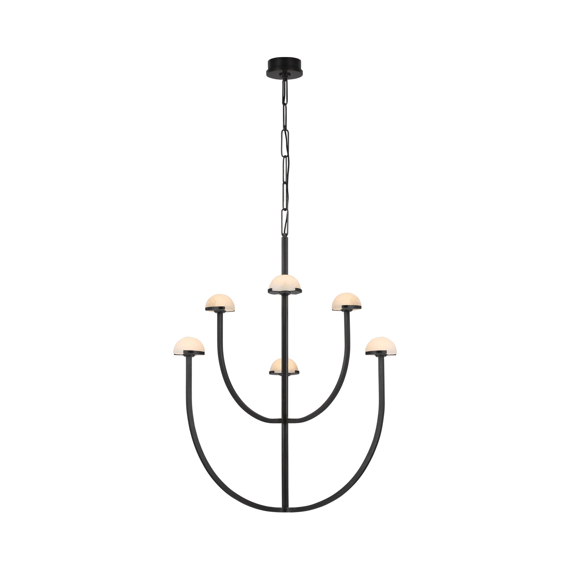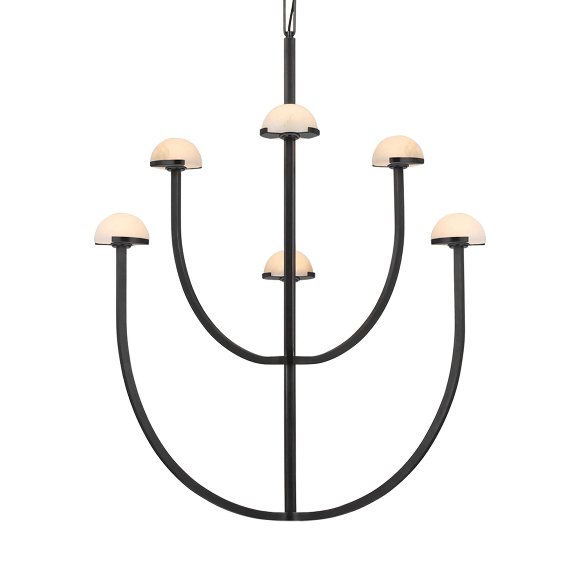Bold U-shaped frames host petite alabaster shades in the engaging Pedra LED Chandelier from Visual Comfort Signature. Gorgeous over a sophisticated entry or dining table, the chandelier draws the eye with an artistic profile as it complements surrounding decor to perfection.