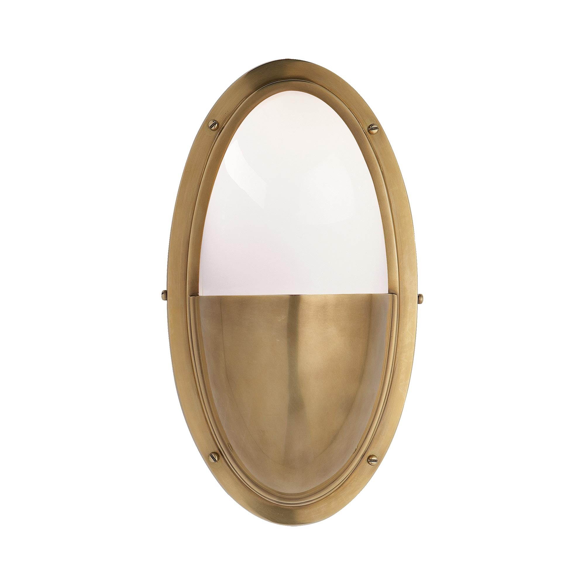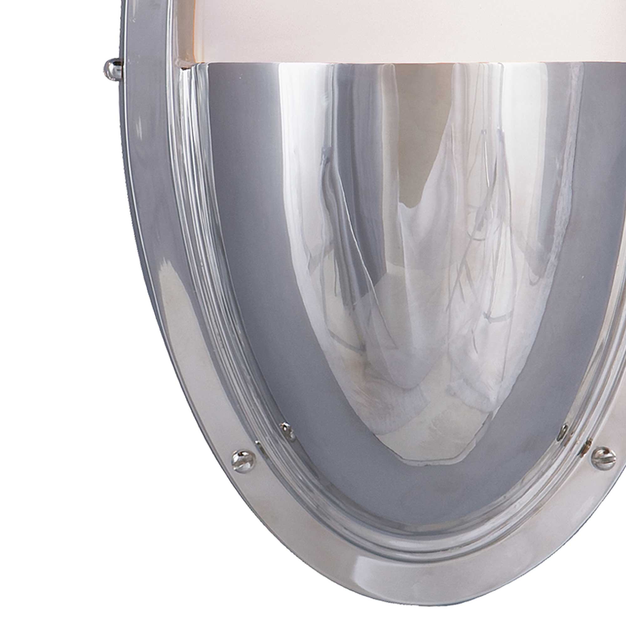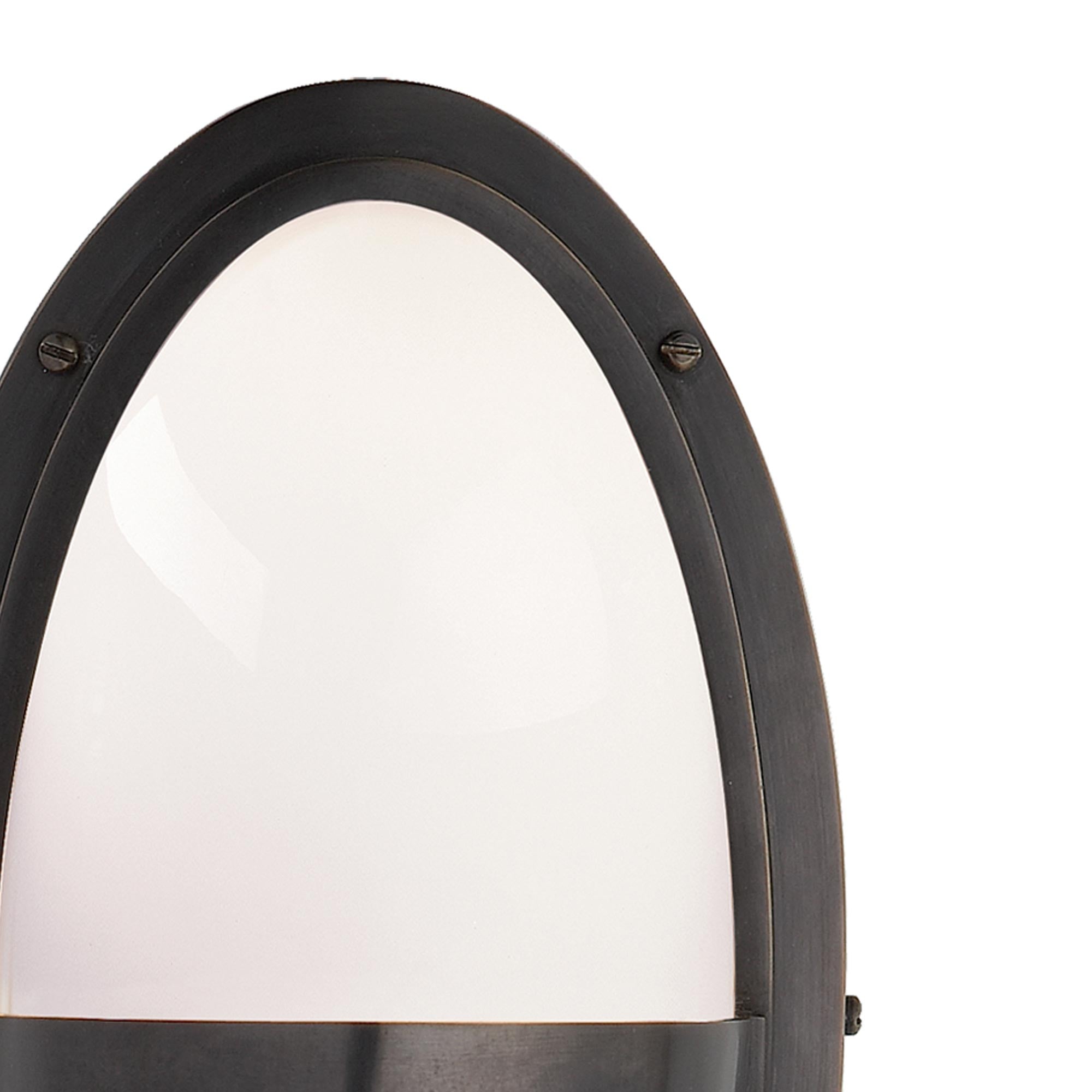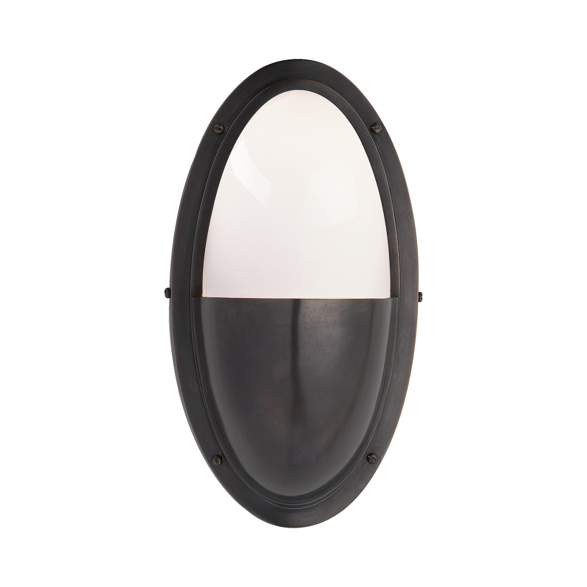 Bold, dramatic styling forms contrasts ranging from stark to subtle in the Pelham Oval Wall Light from Visual Comfort Signature. Sporting a sleek oval silhouette, this casual wall light adopts a hint of industrial attitude and a blend of white glass with a metal frame.