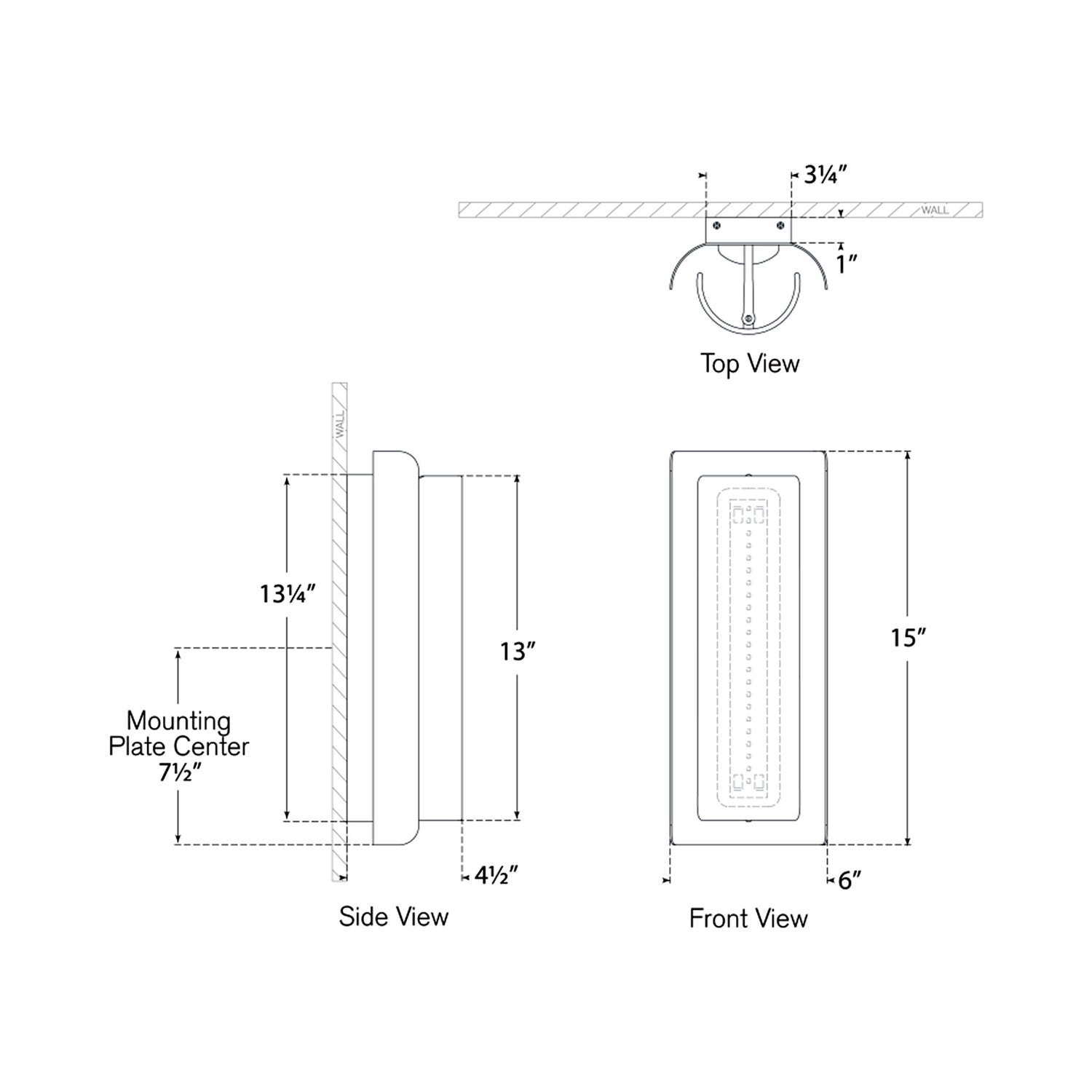 - 15-Inch: 6"W X 15"H; 4.5" Extension