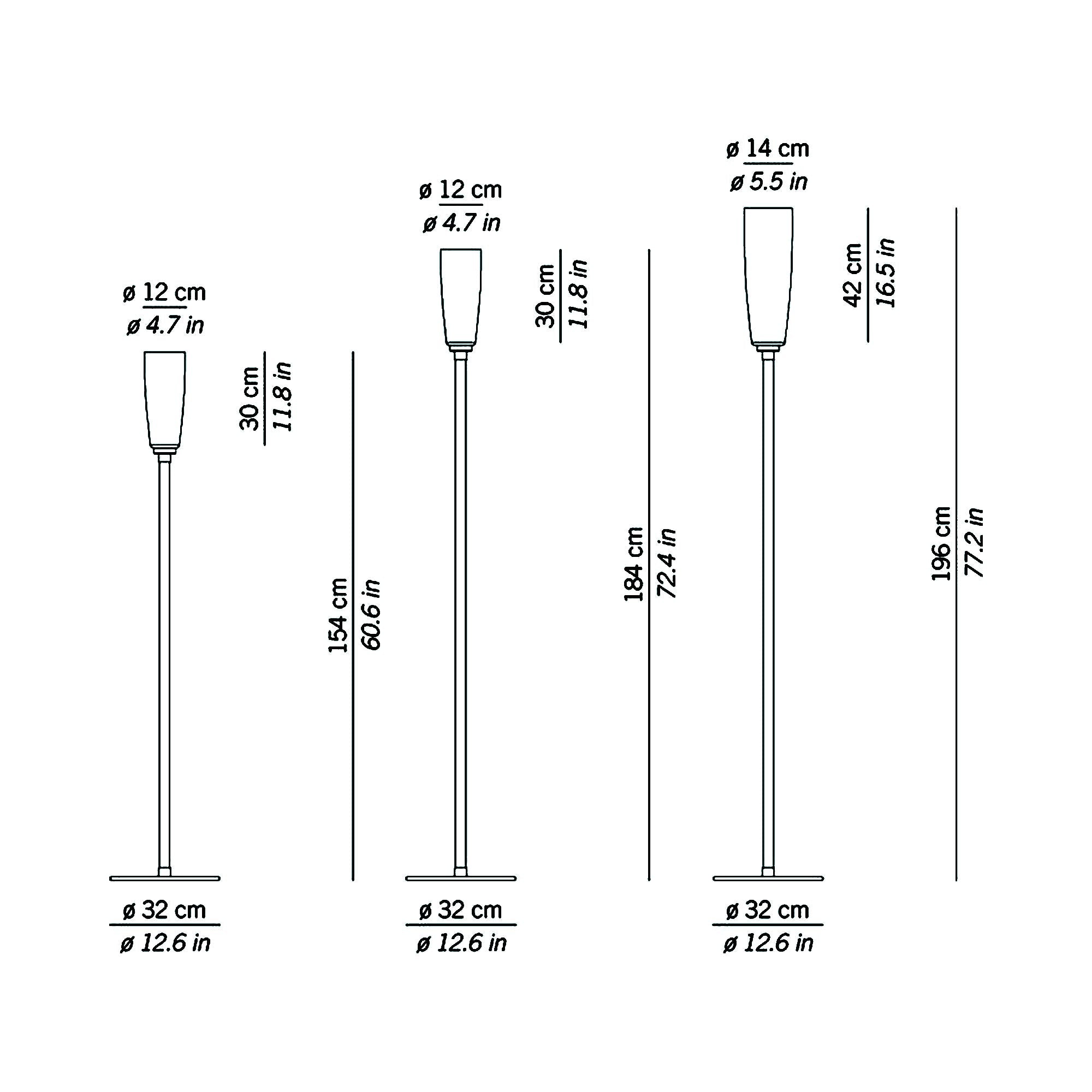 - Large: 12.6"D X 77.2"H