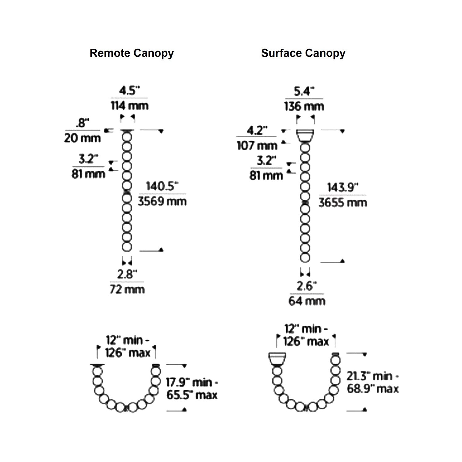 - Fixture Dimensions: 5.4"D X 143.9"H