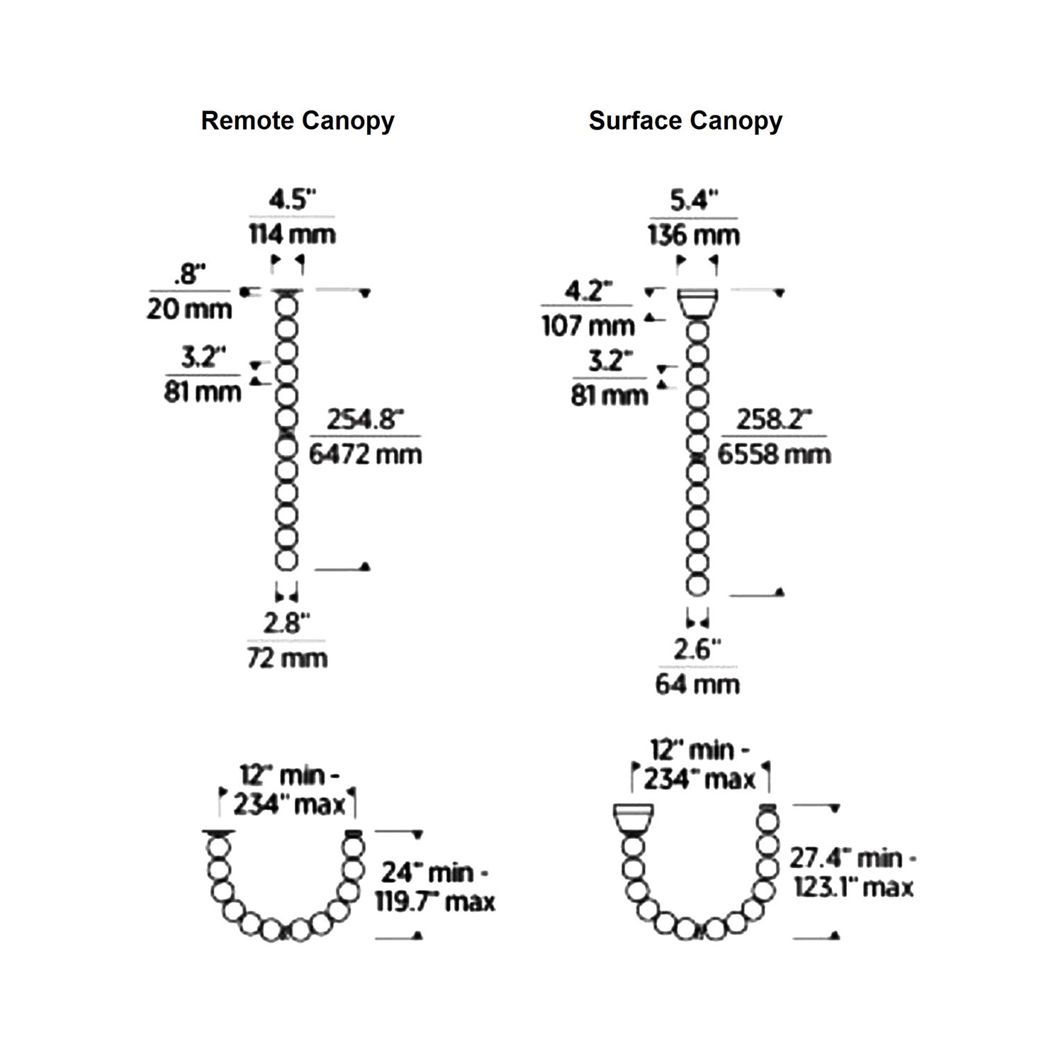 - Fixture Dimensions: 5.4"D X 258.2"H