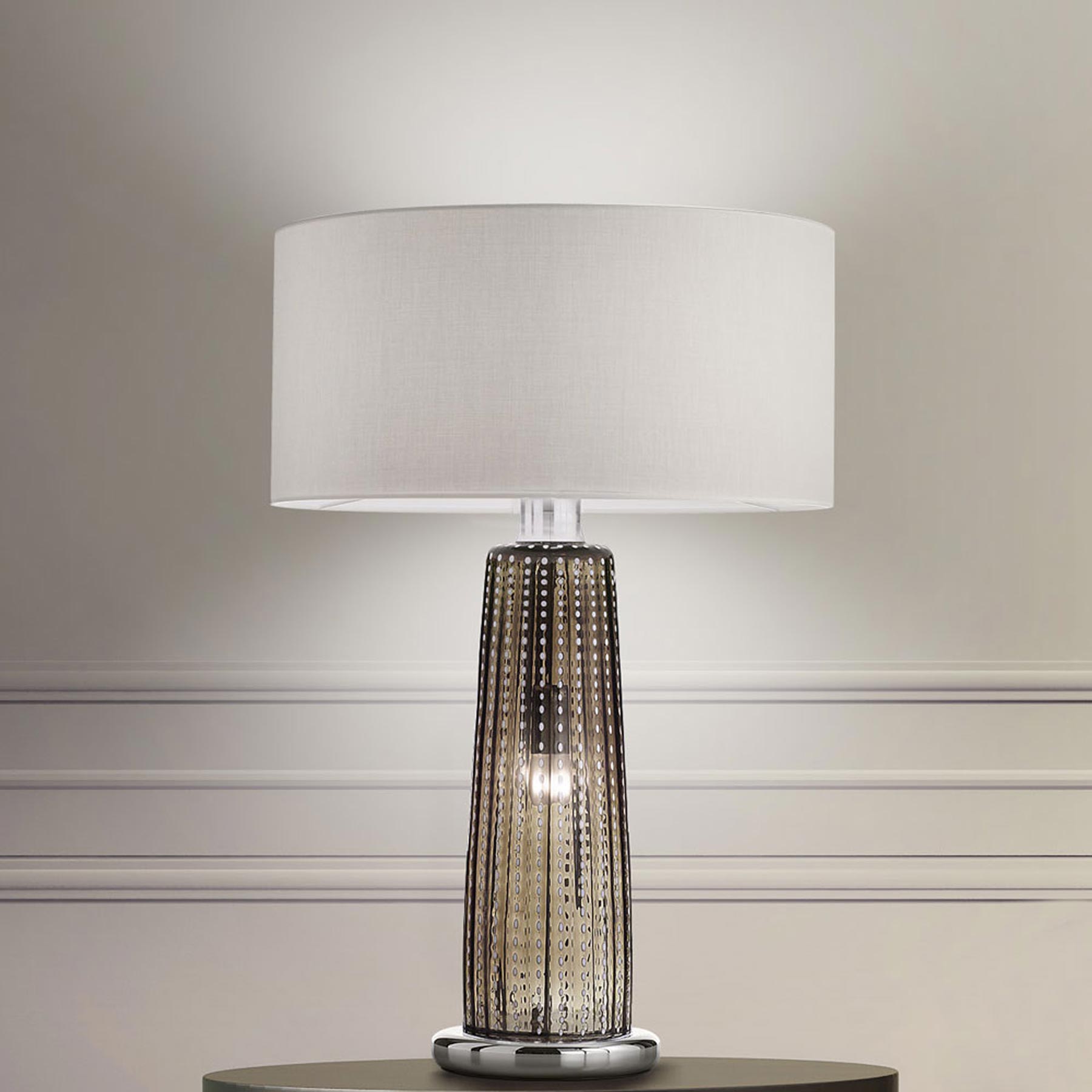 Subtle curves embellish the chic mouth-blown handcrafted glass bases of the Perle Table Lamp from Zafferano America, creating a stunning piece of artistry and a go-to source of soft light. This lamp features a rare design with lamping built into its rounded base and offering extra glowing illumination. Indulge in the textural quality of artisan glass and the chic crowning of each lamp with a linen fabric shade.