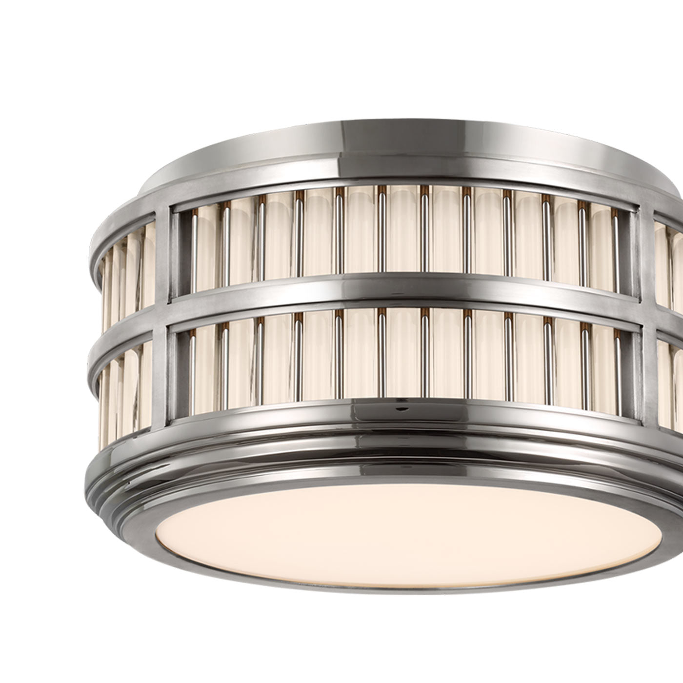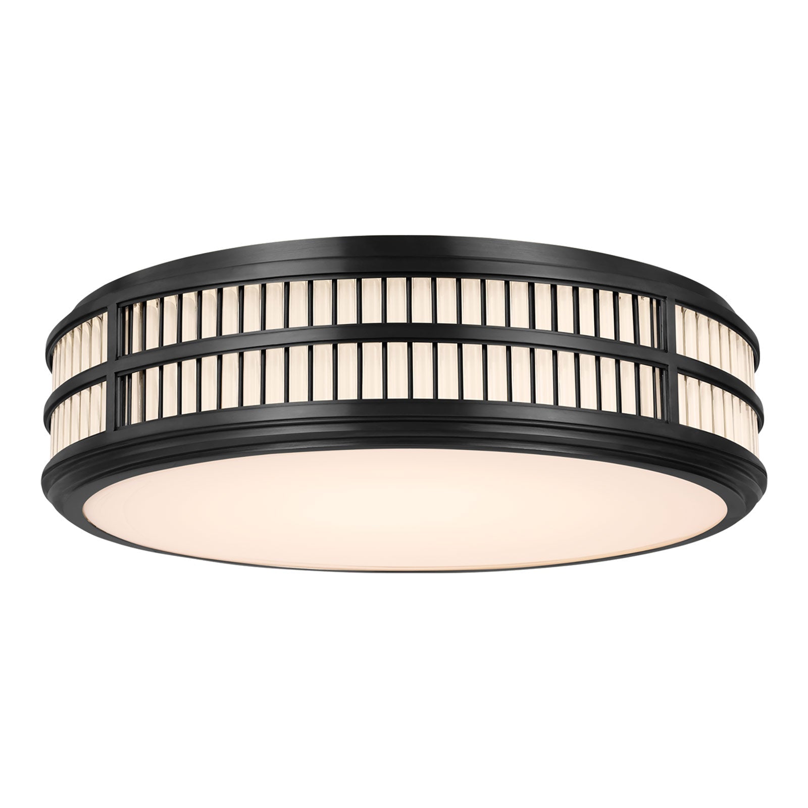 With an updated approach to classic industrial fare, the Perren LED Flush Mount Ceiling Light from Visual Comfort Signature stands out as a formidable source of energy-efficient illumination. Parallel and perpendicular lines create a grid-like design with a robust metal frame giving way to a white glass shade. Introduce a transitional entry to create contemporary pizzazz in a kitchen, living room, or foyer.