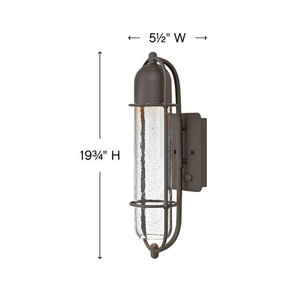 Named for Commodore Oliver Hazard Perry, who led a fleet to victory in one of the most significant naval battles in the War of 1812, this nautical-inspired Perry Outdoor Wall Light offers distinctive longitudinal and latitudinal cage construction. Clear seedy glass and a durable Oil Rubbed Bronze finish reinforce Perry’s transitional style, which effortlessly complements a variety of façades.