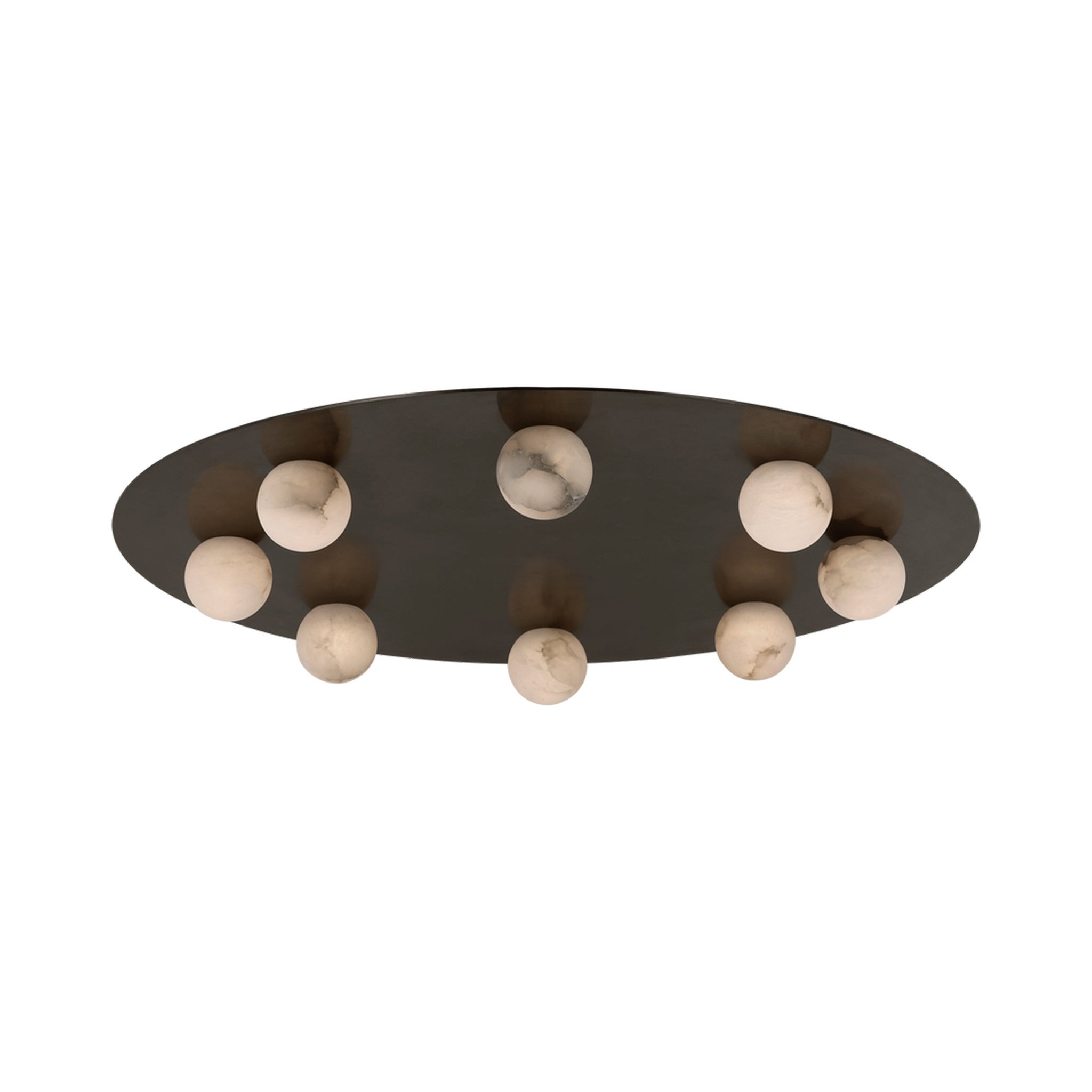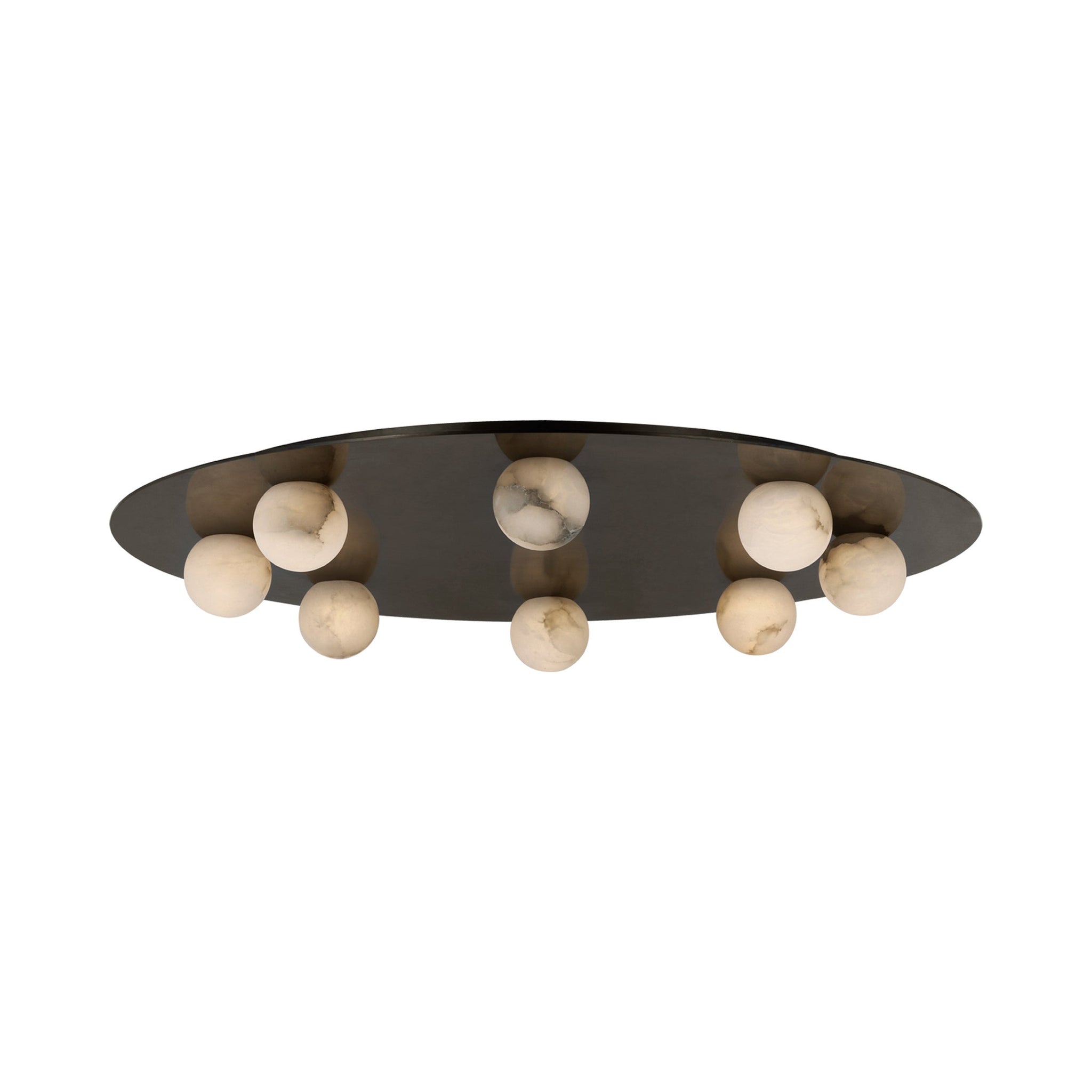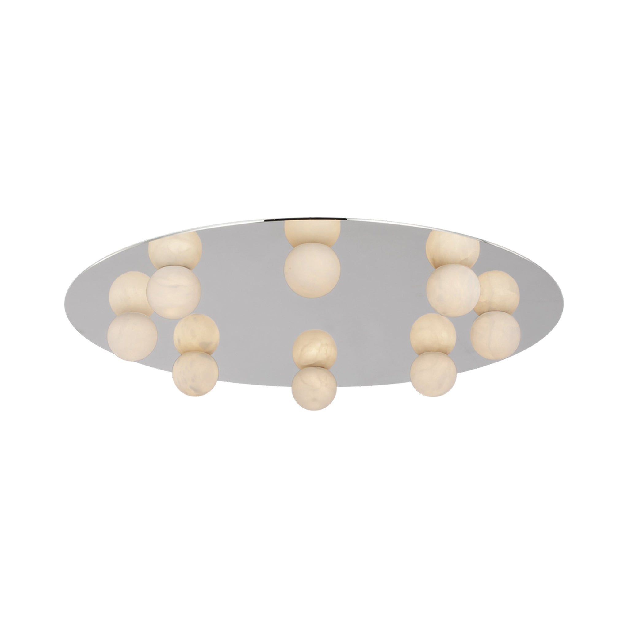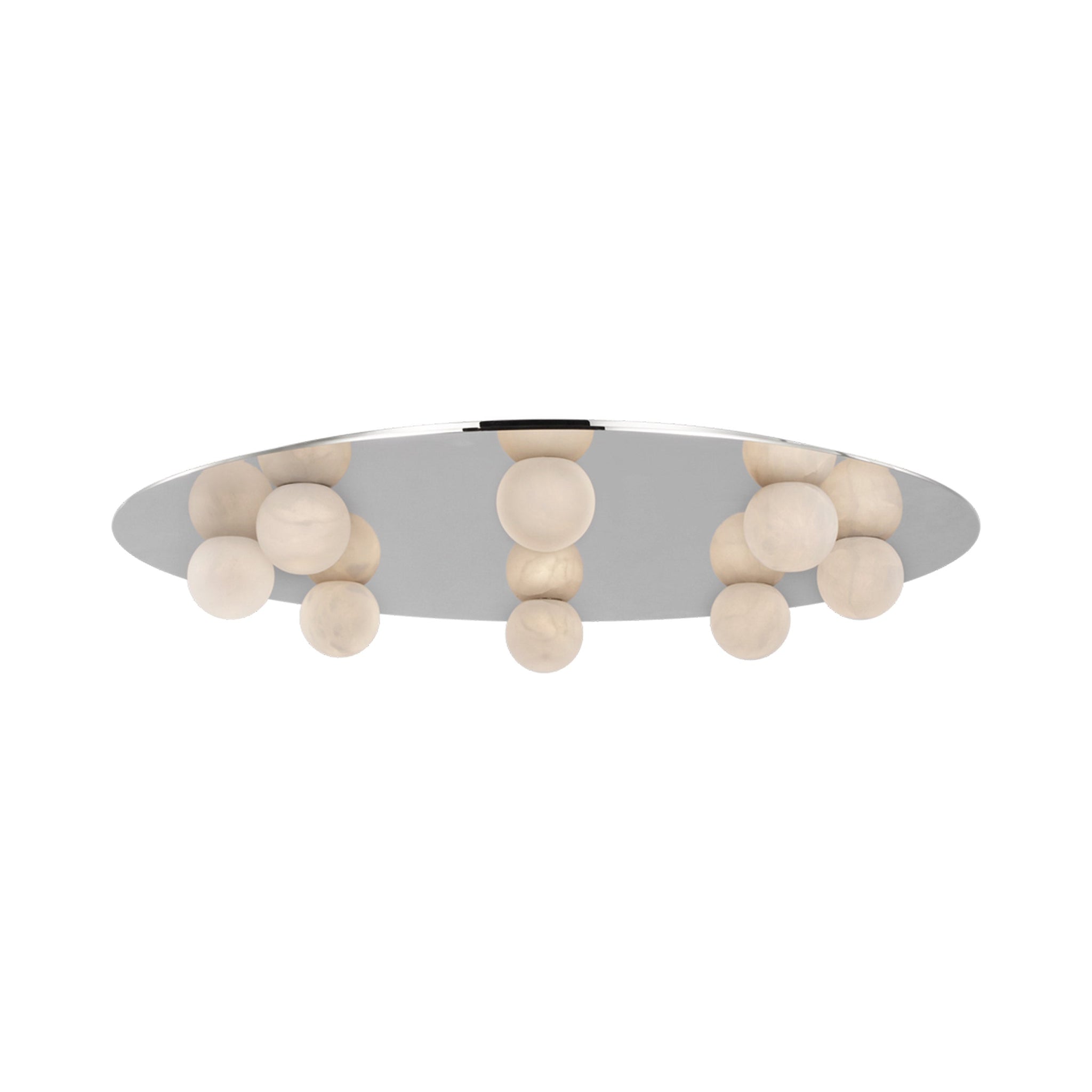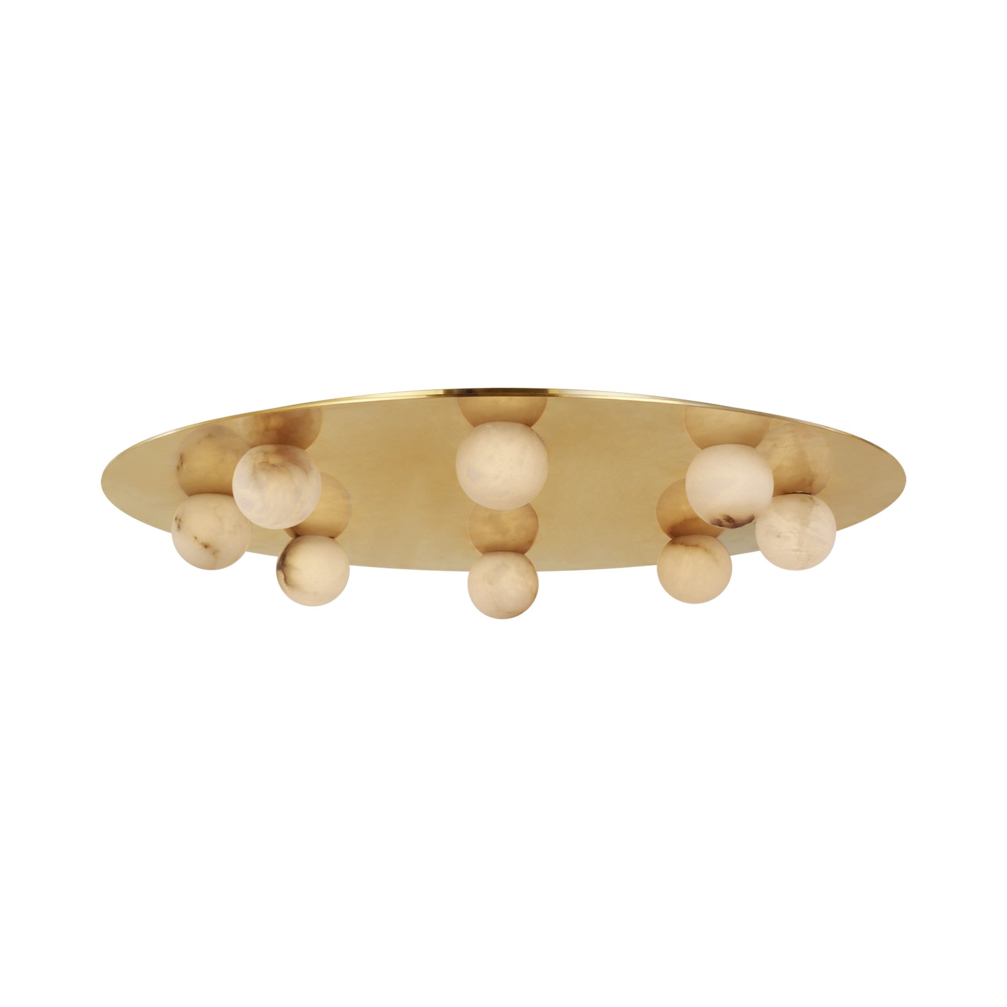 The Pertica LED Flush Mount Ceiling Light from Visual Comfort Signature delivers understated elegance, upended with artisan charm. Metal construction forms an eye-catching disc frame, impressive in its orientation. Alabaster shades dot its surface, sending warm, energy-efficient illumination to lift the mood in any venue.