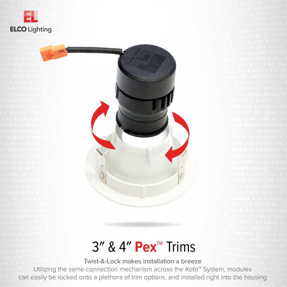 Adjustability is just one feature making the Pex™ 3" Square Adjustable Baffle from Elco Lighting an excellent choice. A twist-lock design is convenient, easing installation. Adjusting 35 degrees, this baffle features an all-white finish and is rated for damp locations.