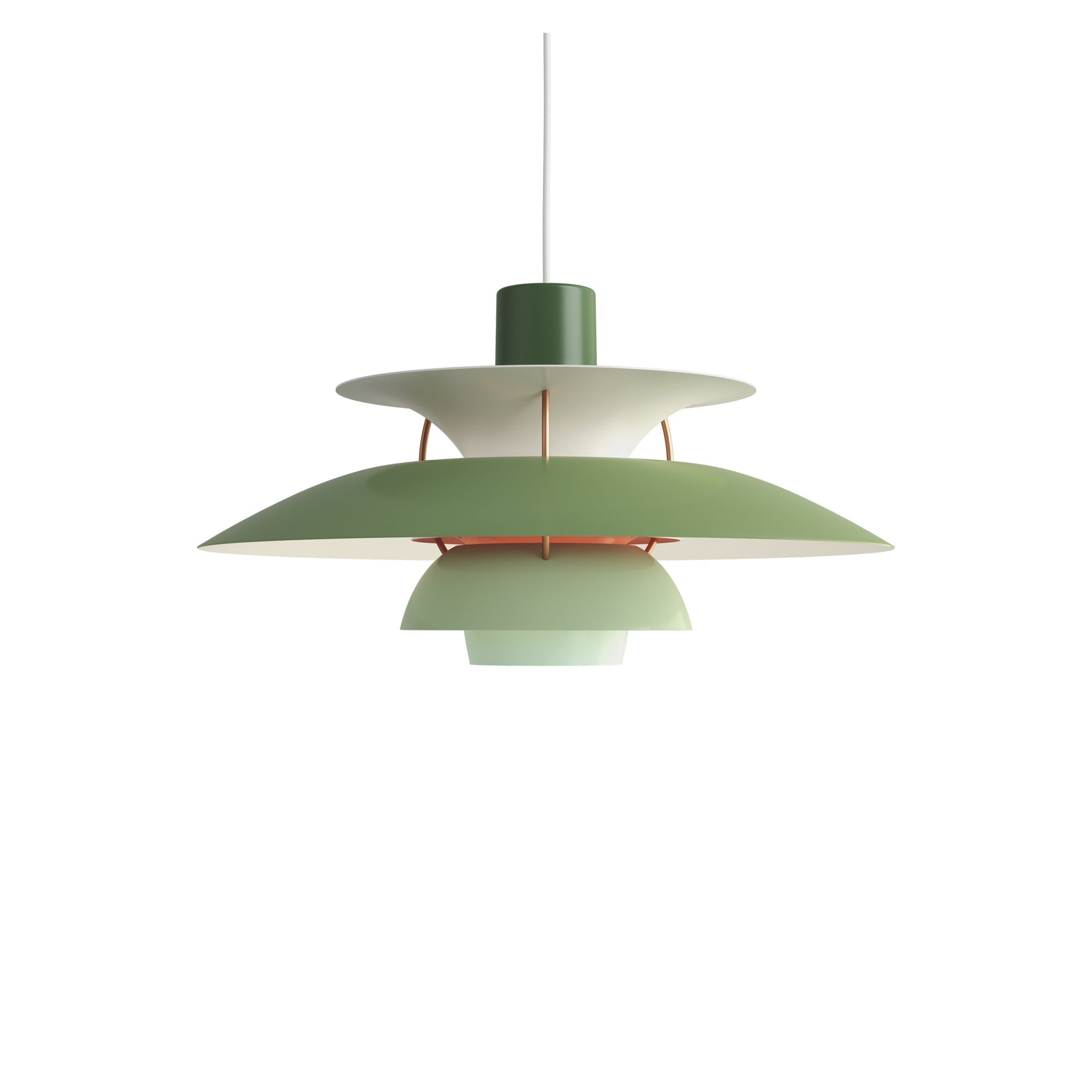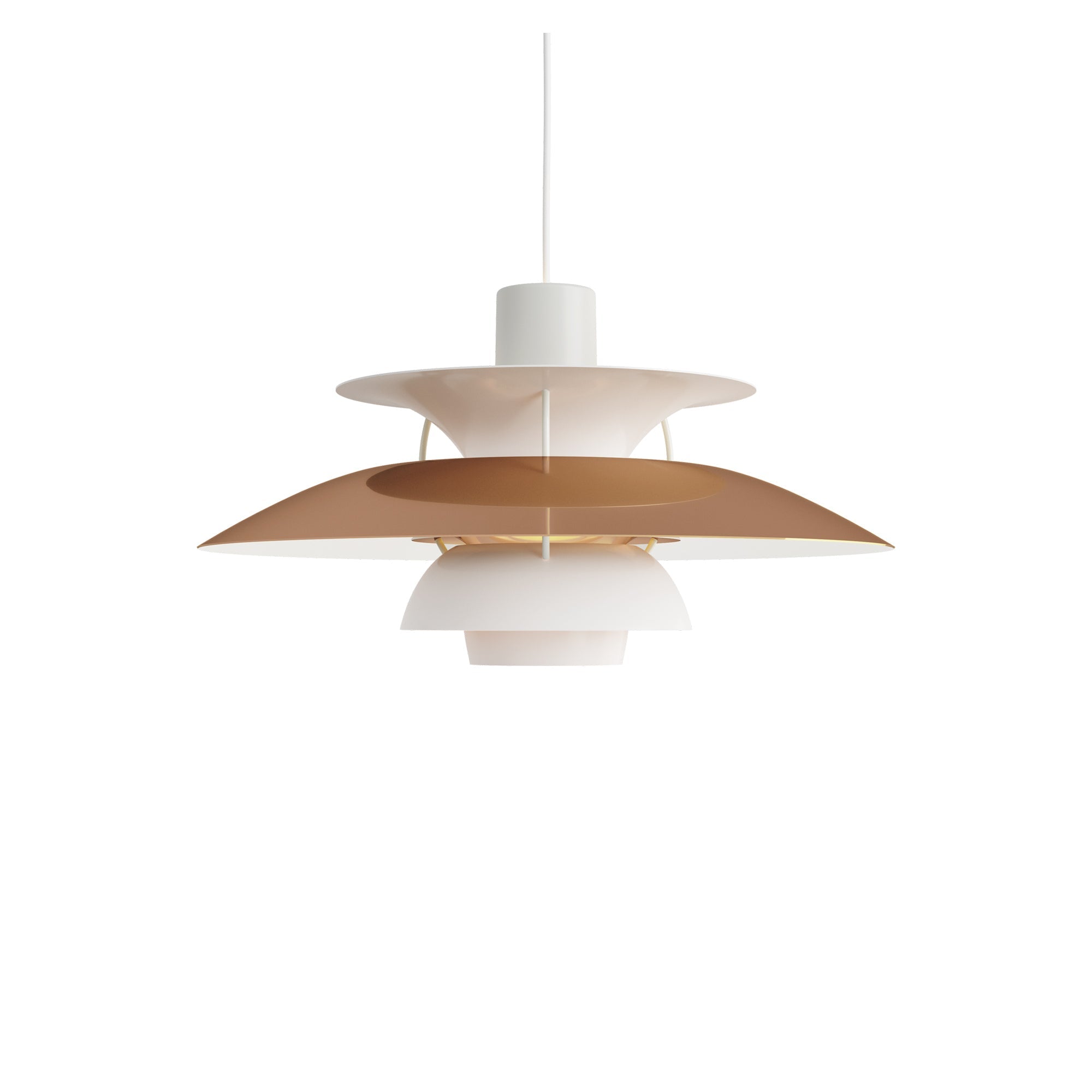 Whether illuminating an intimate dining table or casting a warm glow in a foyer, the PH 5 Pendant Light from Louis Poulsen is a true statement piece. Amenable to residential and professional spaces, the pendant is a decadent design of gentle domed shades that case downward and lateral light that perks up any space. A frosted diffuser underneath assures there won't even be a glare, ensuring soft, inviting illumination.