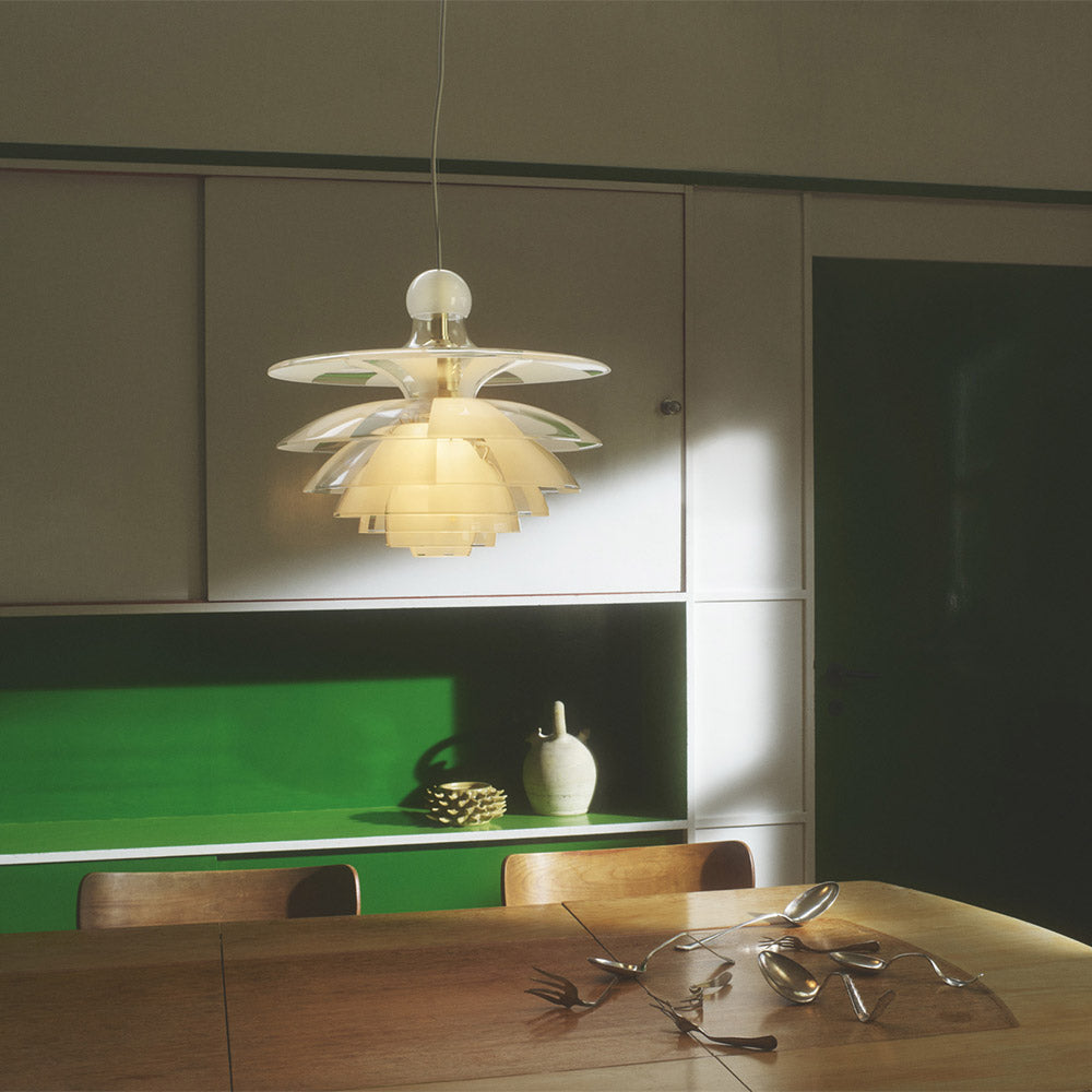 A compelling amalgam of frosted and clear layers ensure a delicate glow of light from the PH Septima Pendant Light from Louis Poulsen. An exquisite silhouette instills texture and dimension in any space, delivering sophisticated artistry with a timelessness that transcends decor style and trends.