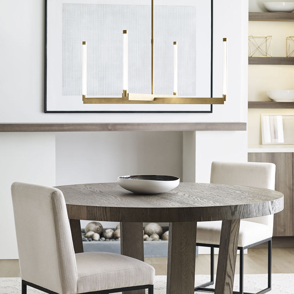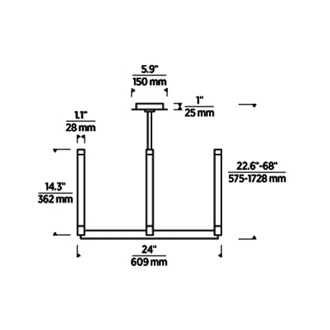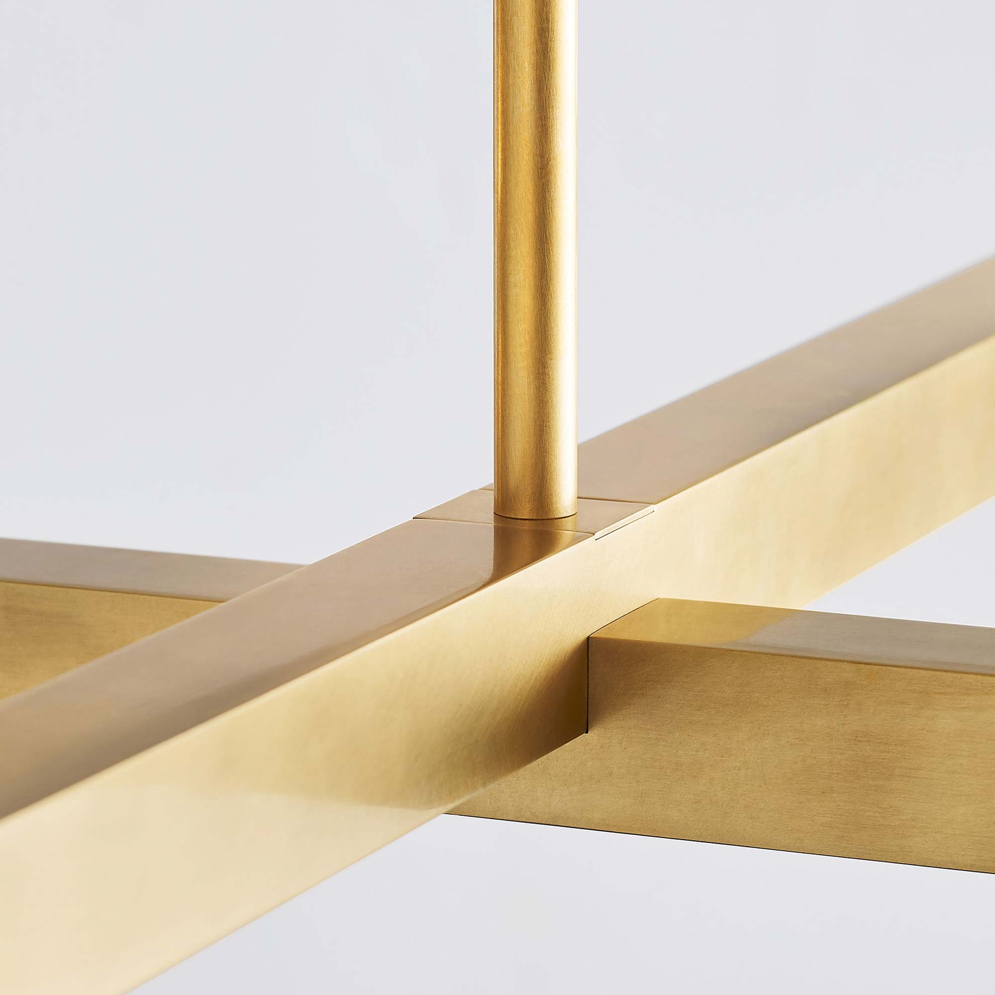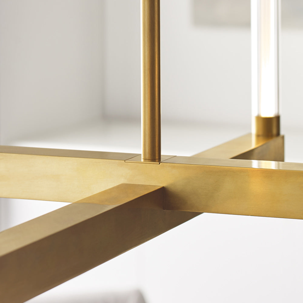 The Phobos LED Chandelier by Kelly Wearstler for Visual Comfort Modern exceptionally contemplates clean intersecting forms and the purity of tubular light in a modern dialogue of geometries. Radial and rectilinear landscapes create a sculptural world for customized LED lamping that features a a central light-guide for a fully diffused glow.