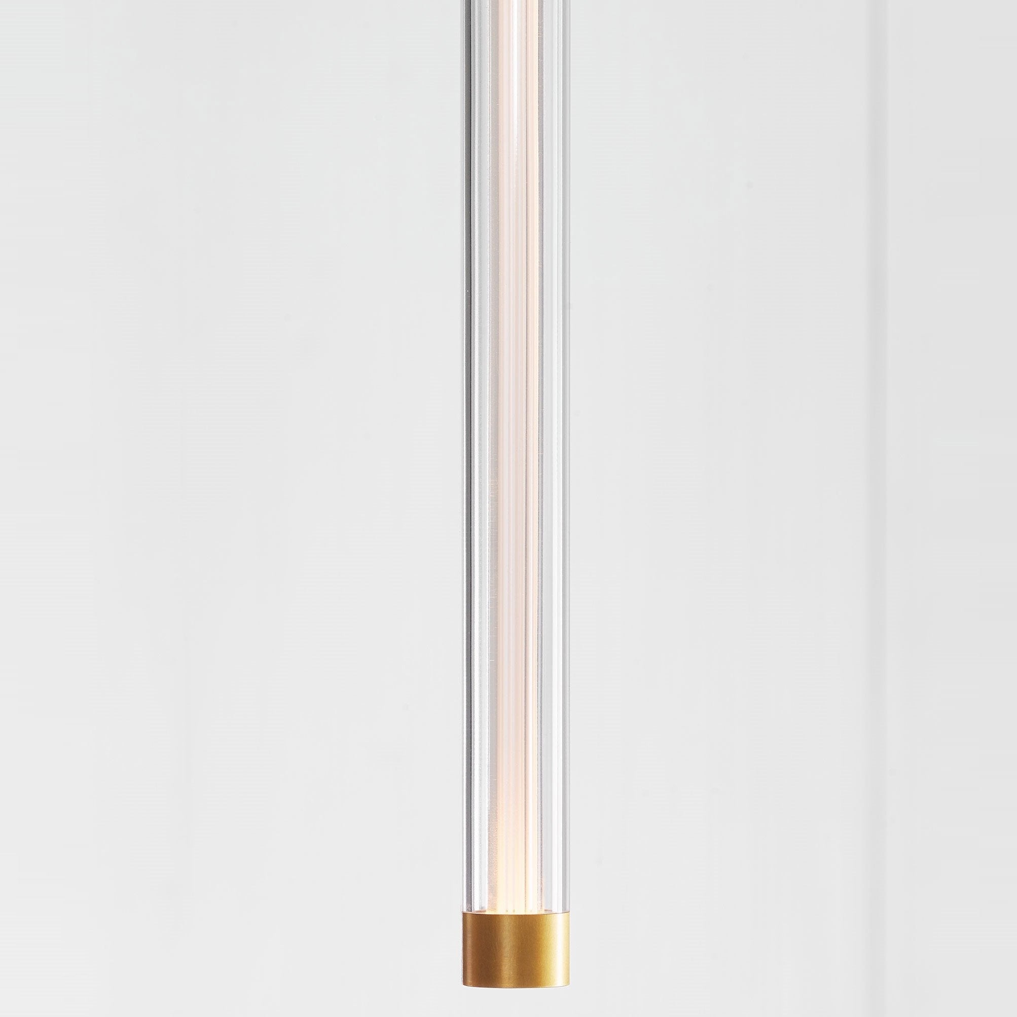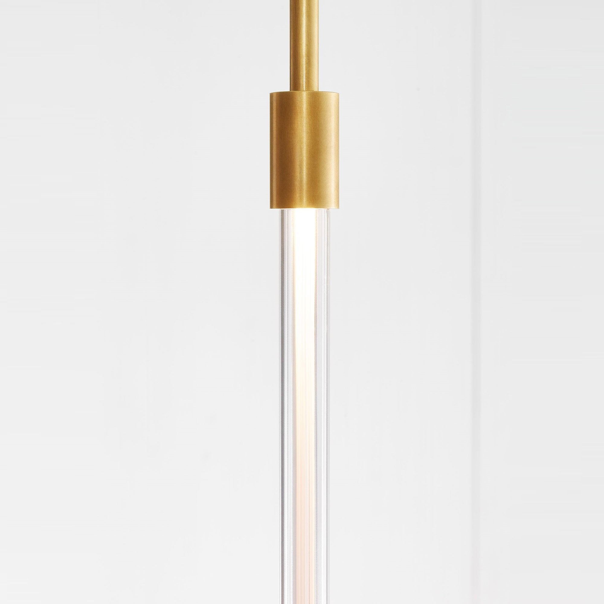 The Phobos LED Pendant Light by Kelly Wearstler for Visual Comfort Modern exceptionally contemplates clean intersecting forms and the purity of tubular light in a modern dialogue of geometries. Radial and rectilinear landscapes create a sculptural world for customized LED lamping that features a central light-guide channeling for a fully diffused glow.