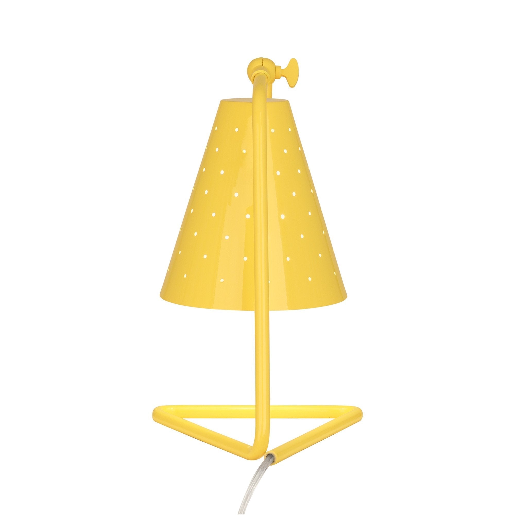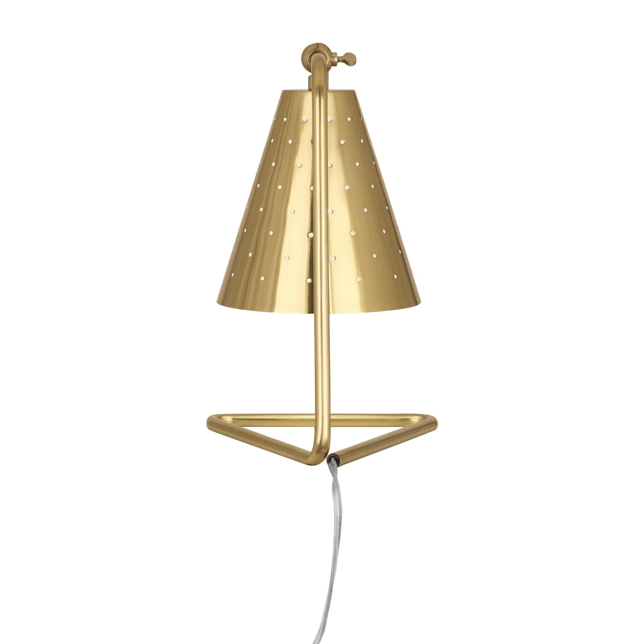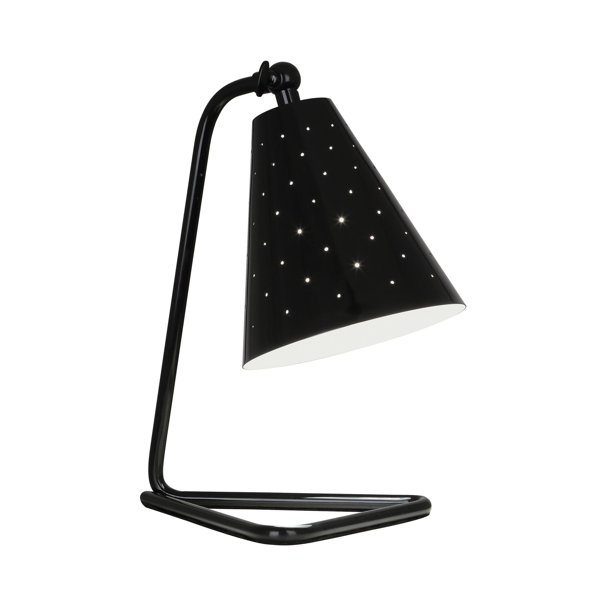 Perforations dot the charming cone shade of the Pierce Table Lamp from Robert Abbey, creating intriguing lighting effects and adding a feel of industrial-inspired personality with a number of finish options.