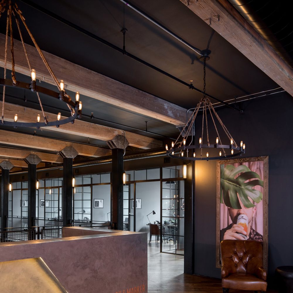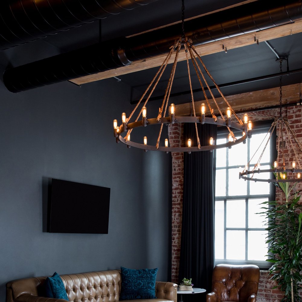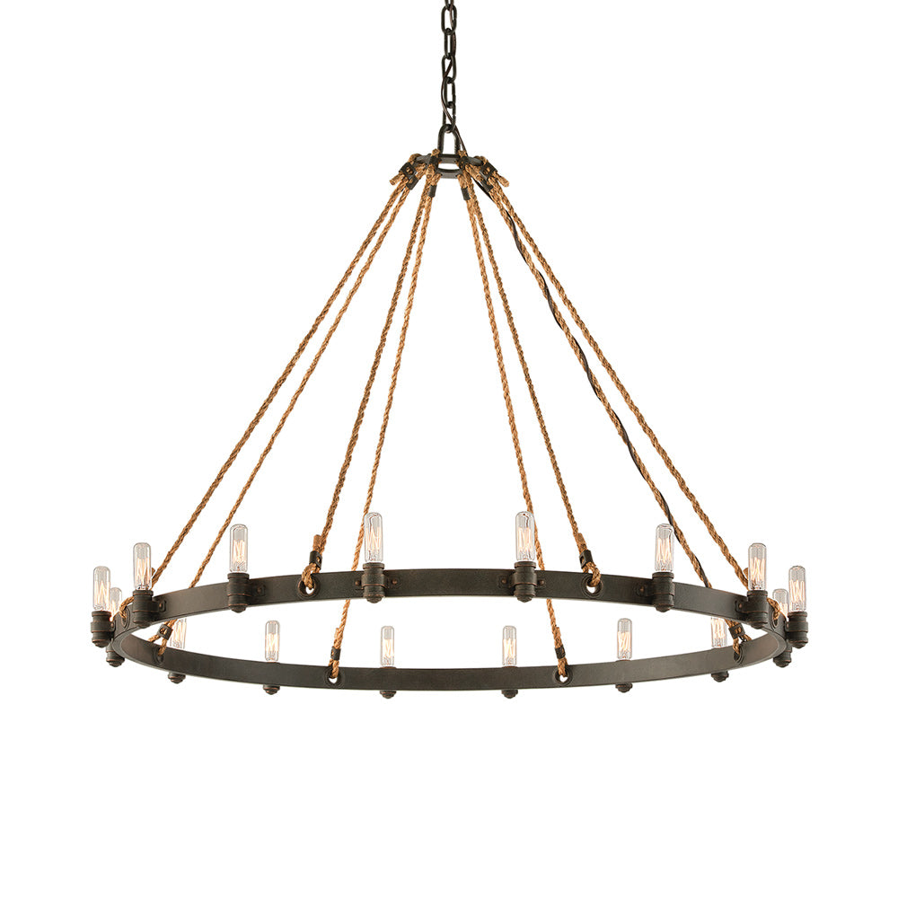 Castle vibes deliver a delightful design in a celebrated light fixture with vintage appeal. The Pike Place Chandelier from Troy Lighting adopts a beloved ring silhouette with metal framing featuring a bold shipyard bronze finish. Petite lights circle its circumference to create dancing illumination effects, calling attention to foyers, living areas, and dining spaces.