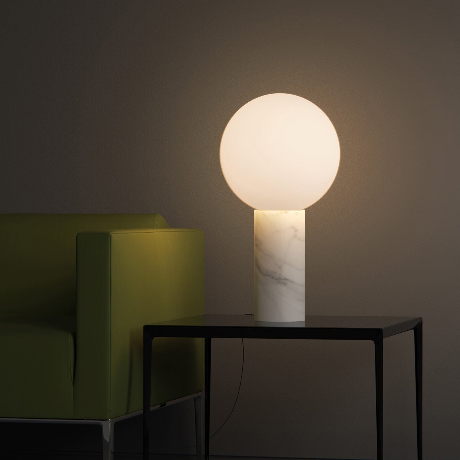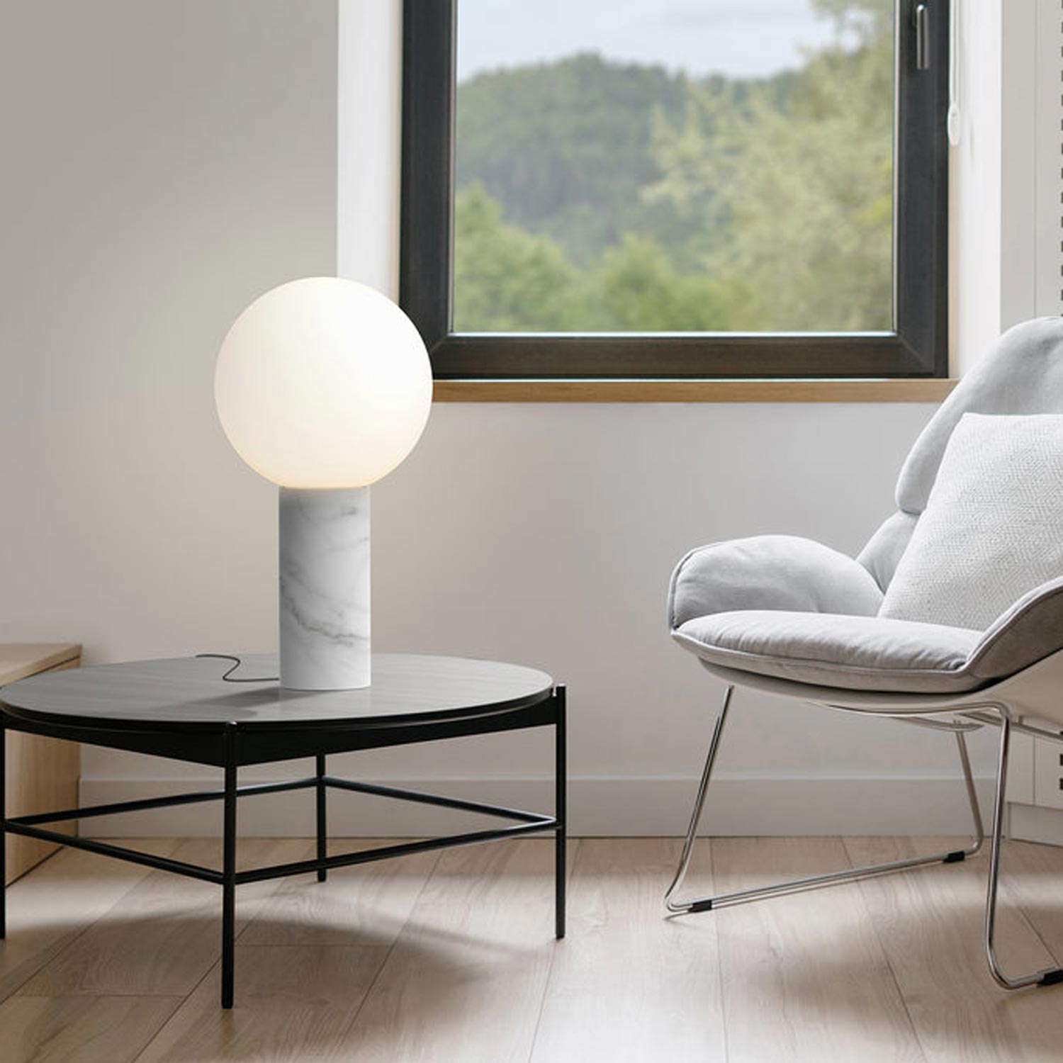 A marble monolith and glowing orb of light pair per perfection in the simple but sophisticated Pilar Table Lamp from Pablo. Gorgeous in a modern sitting area, it delivers gentle glow perfect for everything from conversation to a relaxing evening home alone. Always impressive, this lamp delivers distinctive personality to your space.
