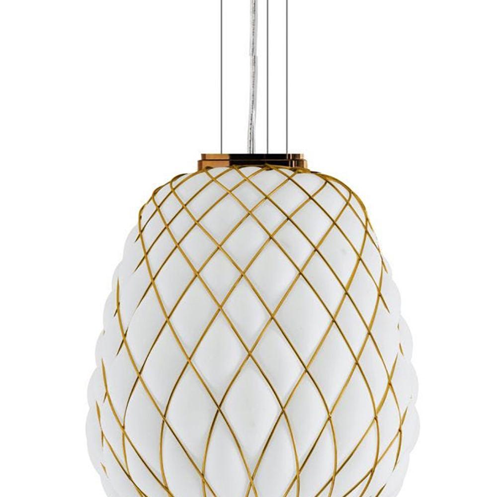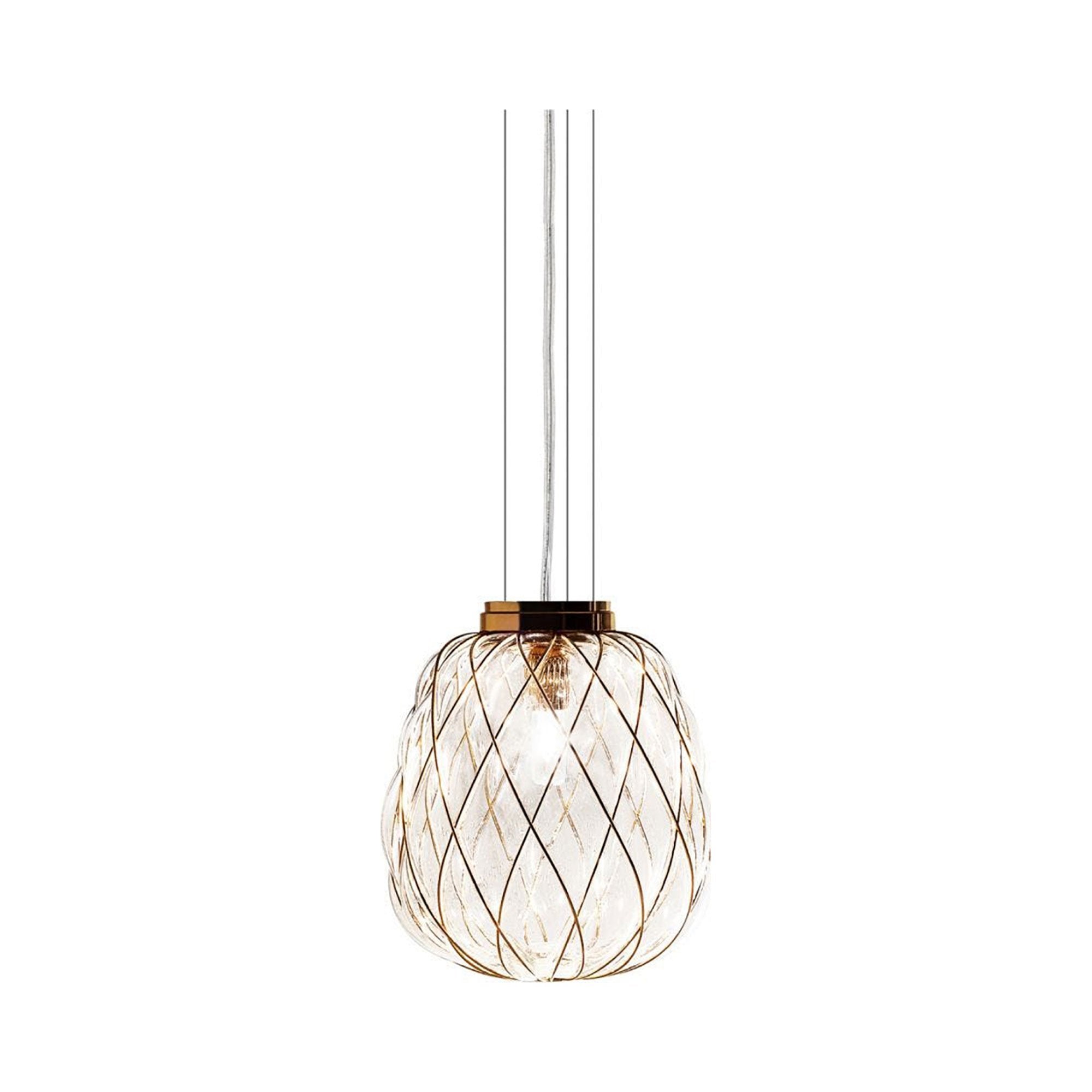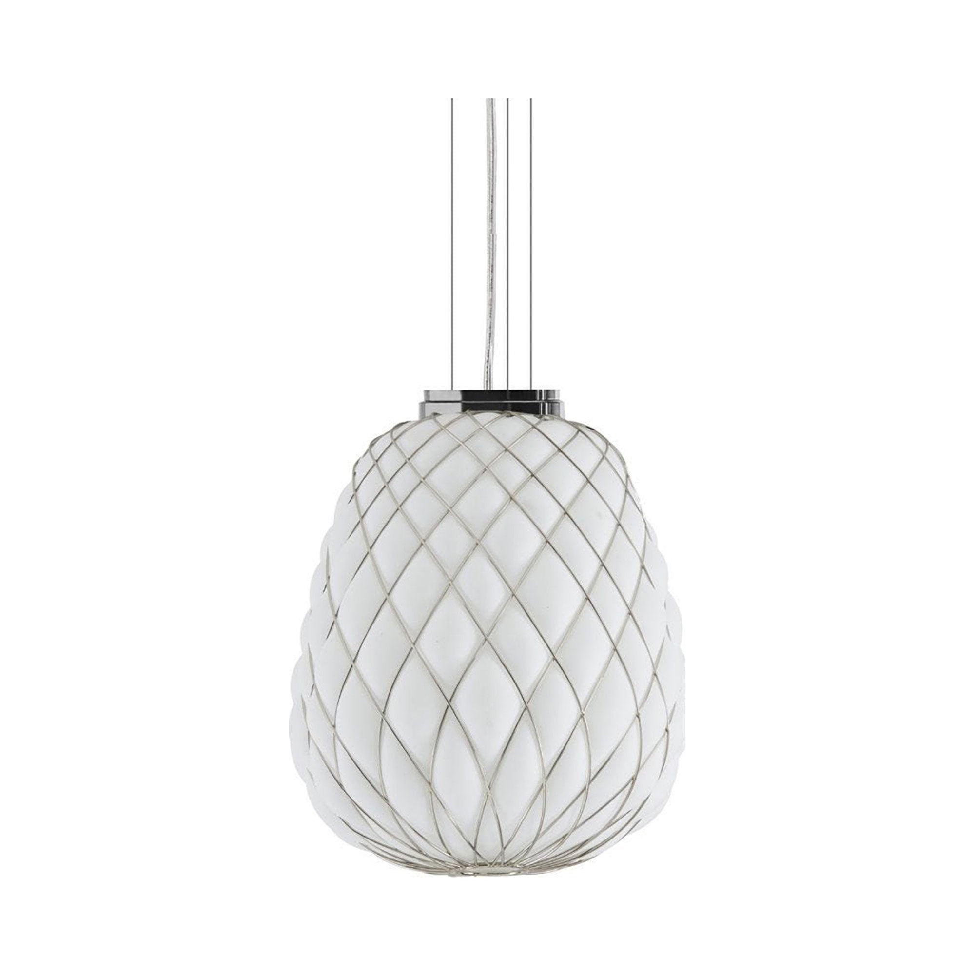 Glass blown into a metal cage creates the stunning effect of the Pinecone Pendant Light from FontanaArte. A truly artistic addition over an entry or breakfast nook, this pendant creates beautiful texture and dimensionality.