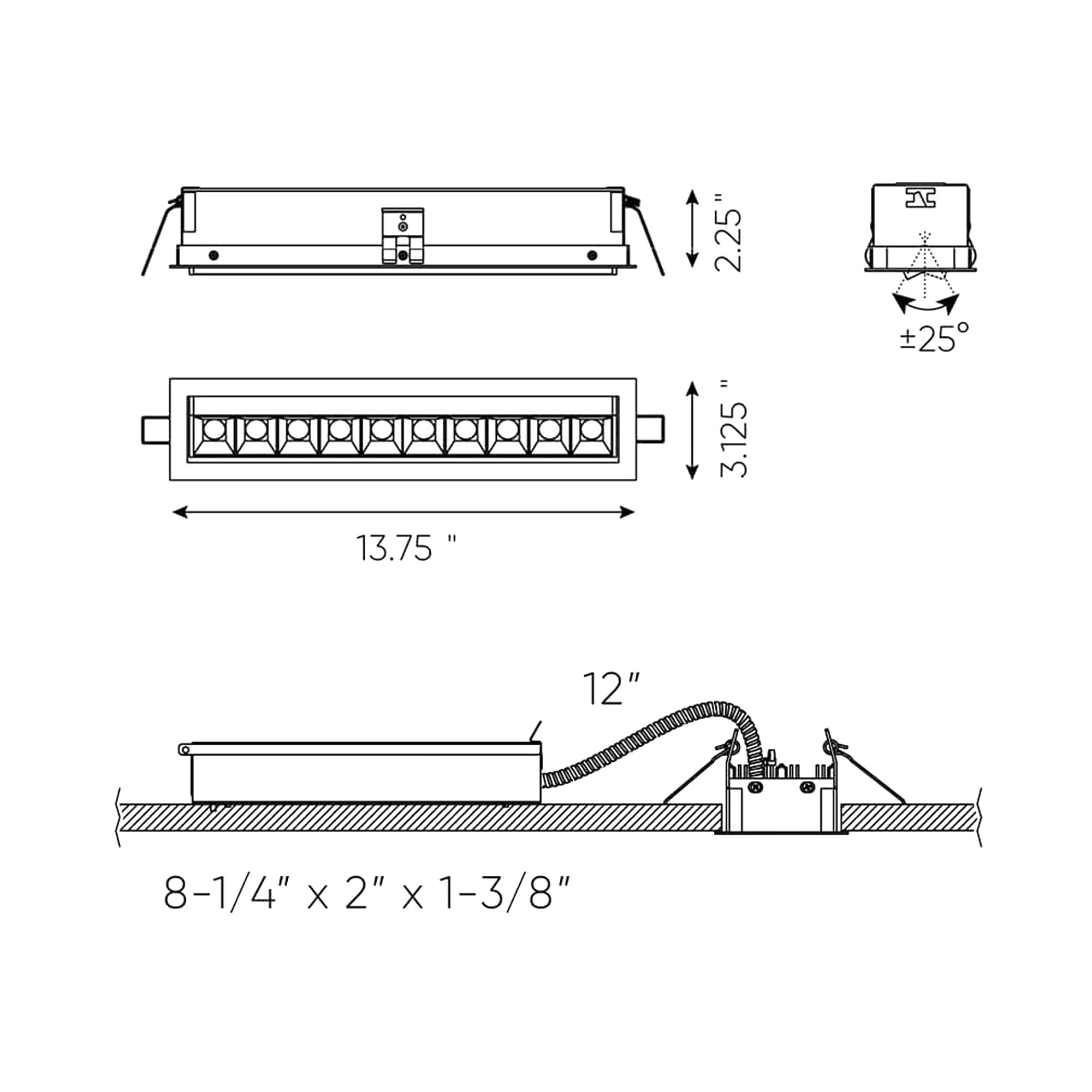 - 10-Light/30-Degree Swivel: 12"W X 4.25"H