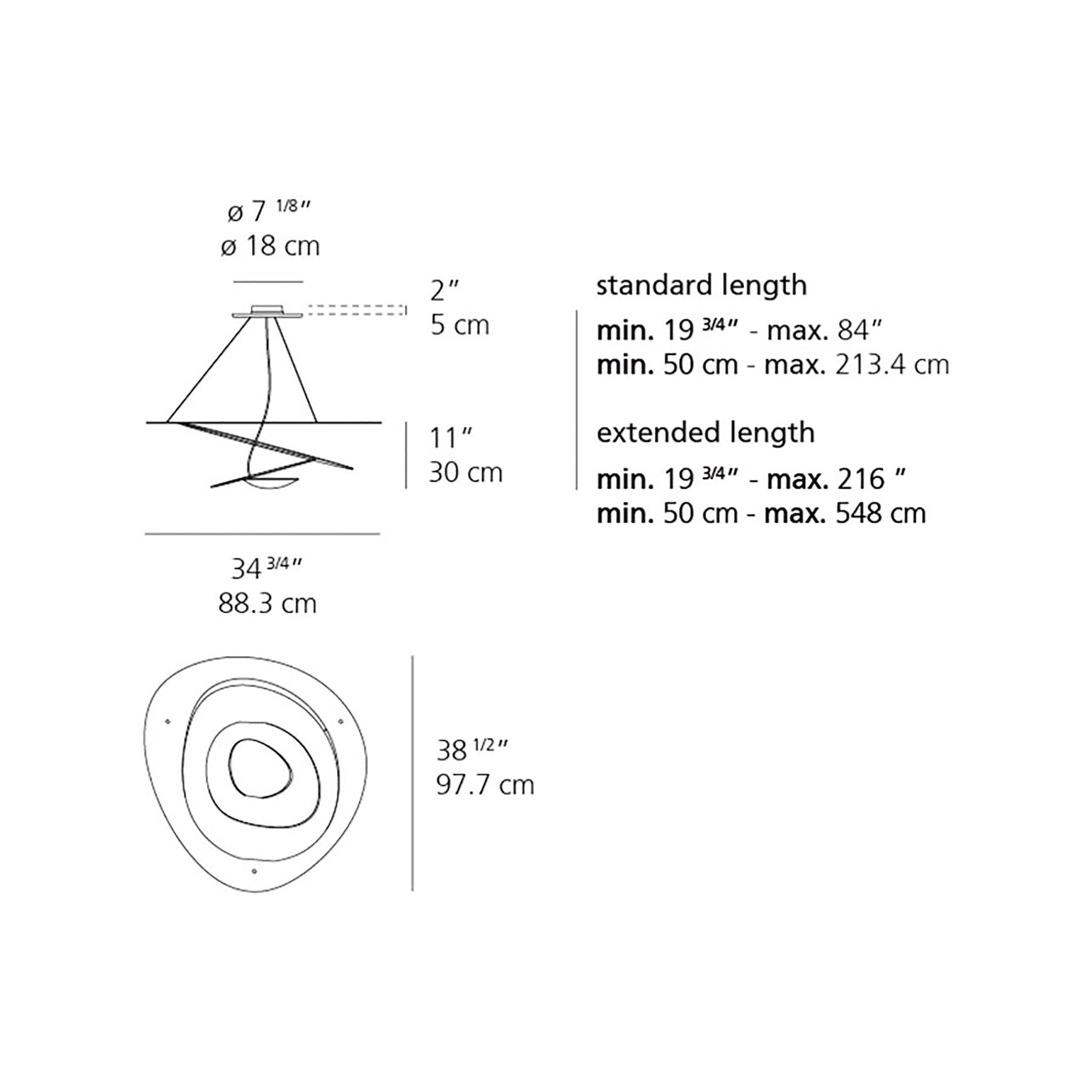 - Micro: 18.94"W X 19.75"H; 84" max height (216" max extended length)