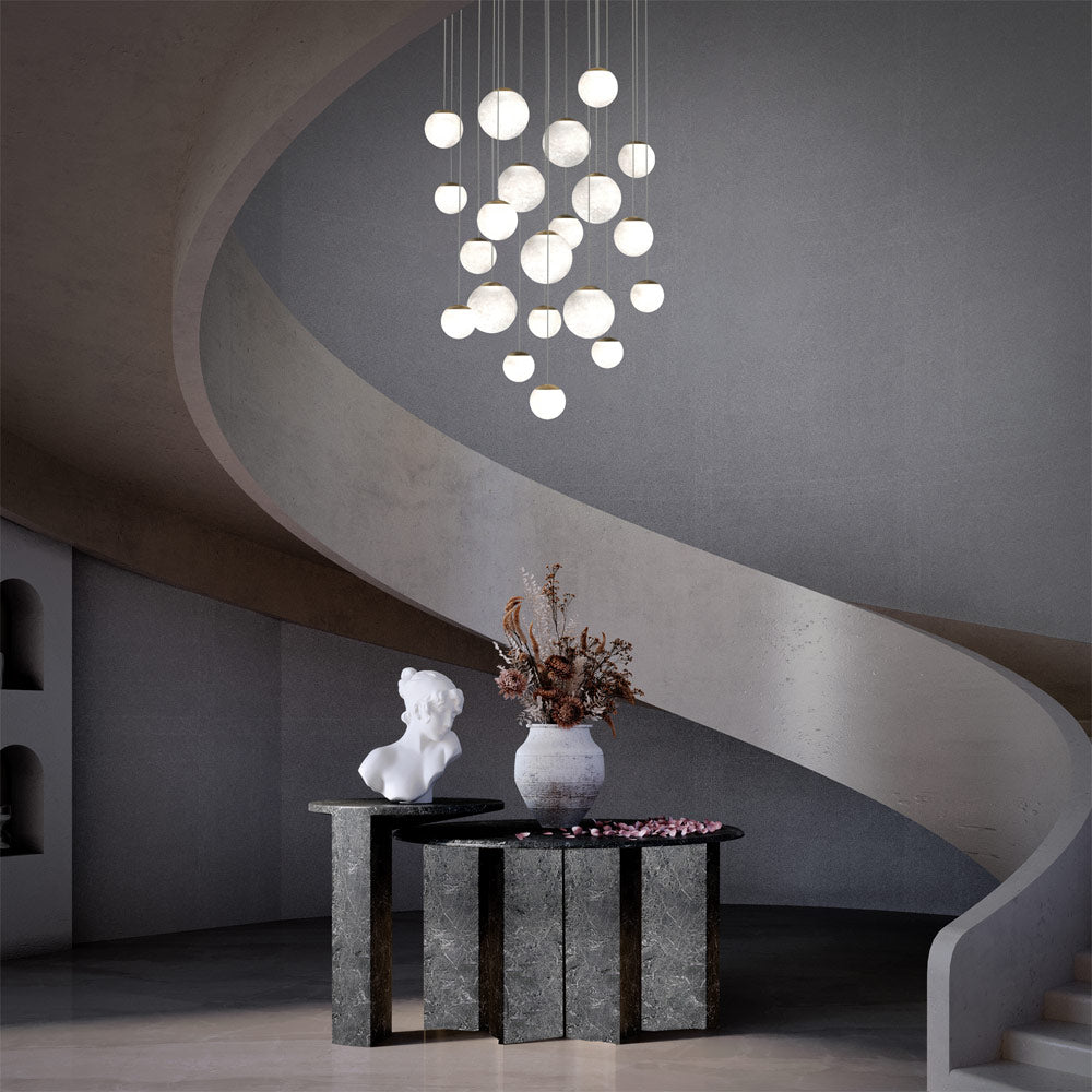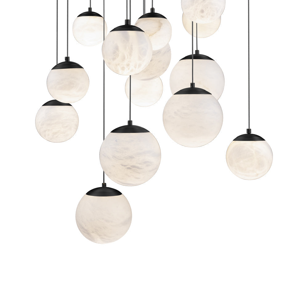 Glowing orbs of Spanish alabaster create a celestial display for the Pisces LED Chandelier from Modern Forms. Suspended at varying heights, its scattered design enchants with shimmering glow that creates a rich, sophisticated ambiance in any space. Natural patterns, veins and variation bring exquisite dimensionality and depth.