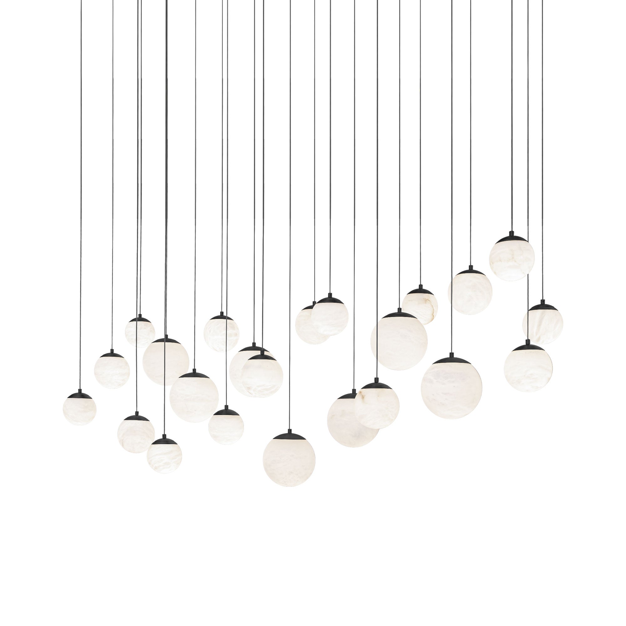 Celestial elegance infuses the Pisces LED Linear Pendant Light from Modern Forms. Petite orbs of natural Spanish alabaster shine and glow, with natural veining and metal caps that bring dimension and depth. The multi-point pendant is a stunning centerpiece, create fresh elegance over your living or dining room.