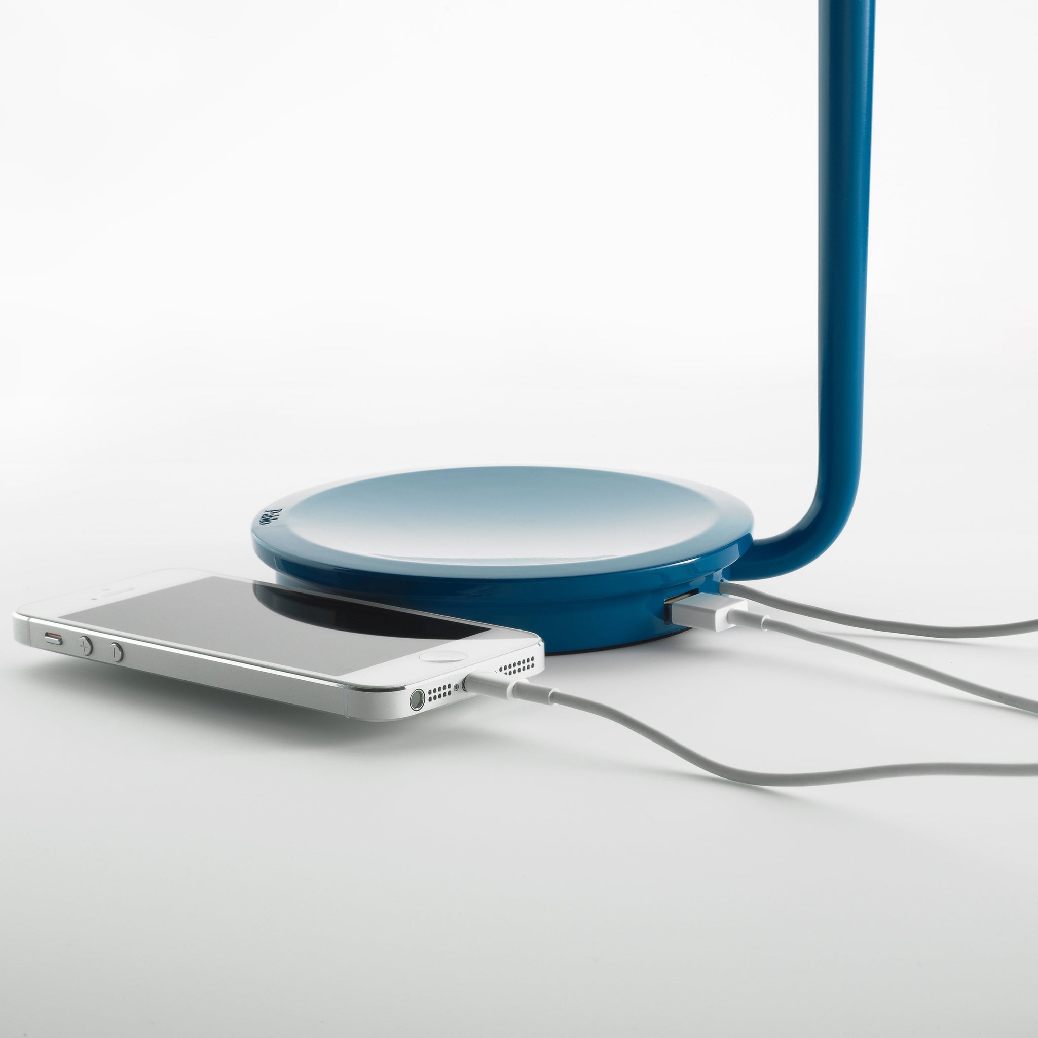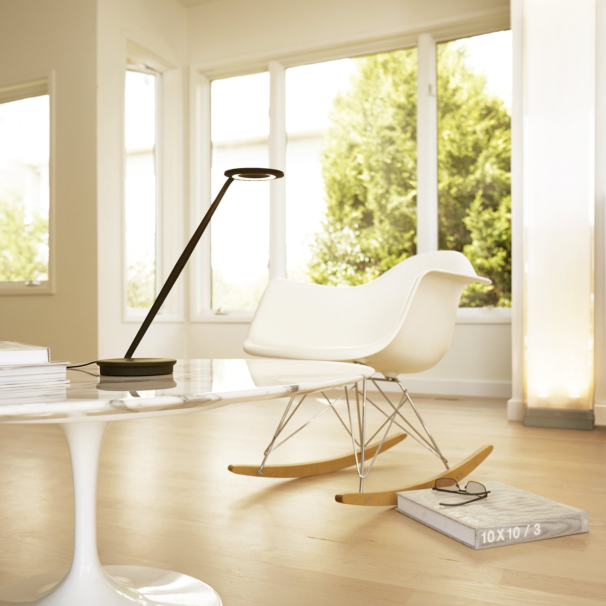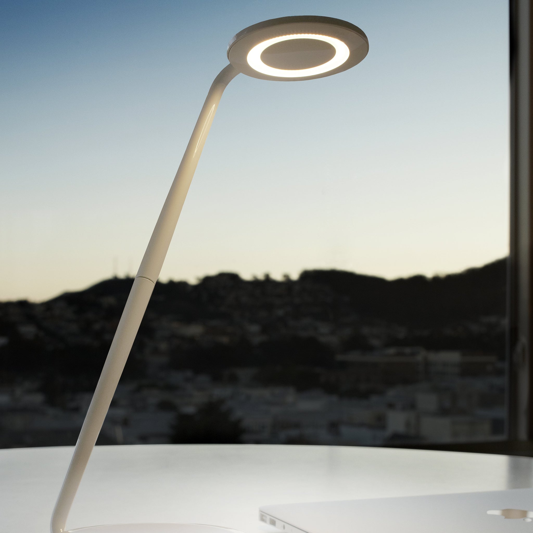 Starkly modern and architectural, the design of the Pixo Plus LED Table Lamp from Pablo infuses a sassy tone. Embrace a contemporary aesthetic with all the bells and whistles of tech-savvy modern style and energy-saving LED lighting. Adjust its disc shade a complete rotation and take advantage of a built-in USB port.