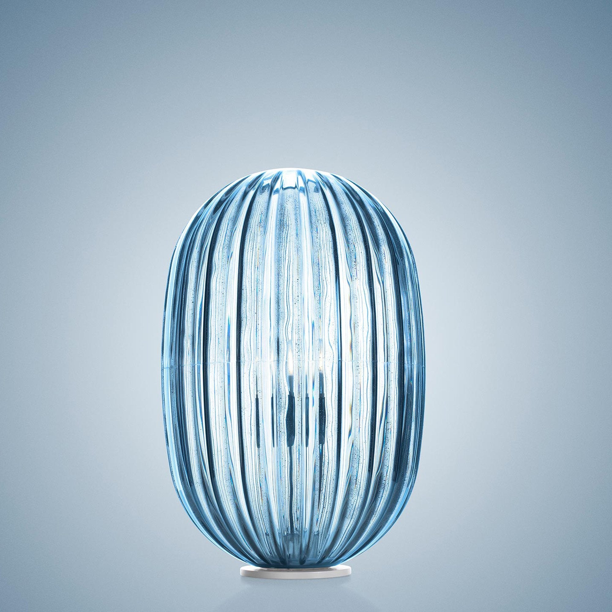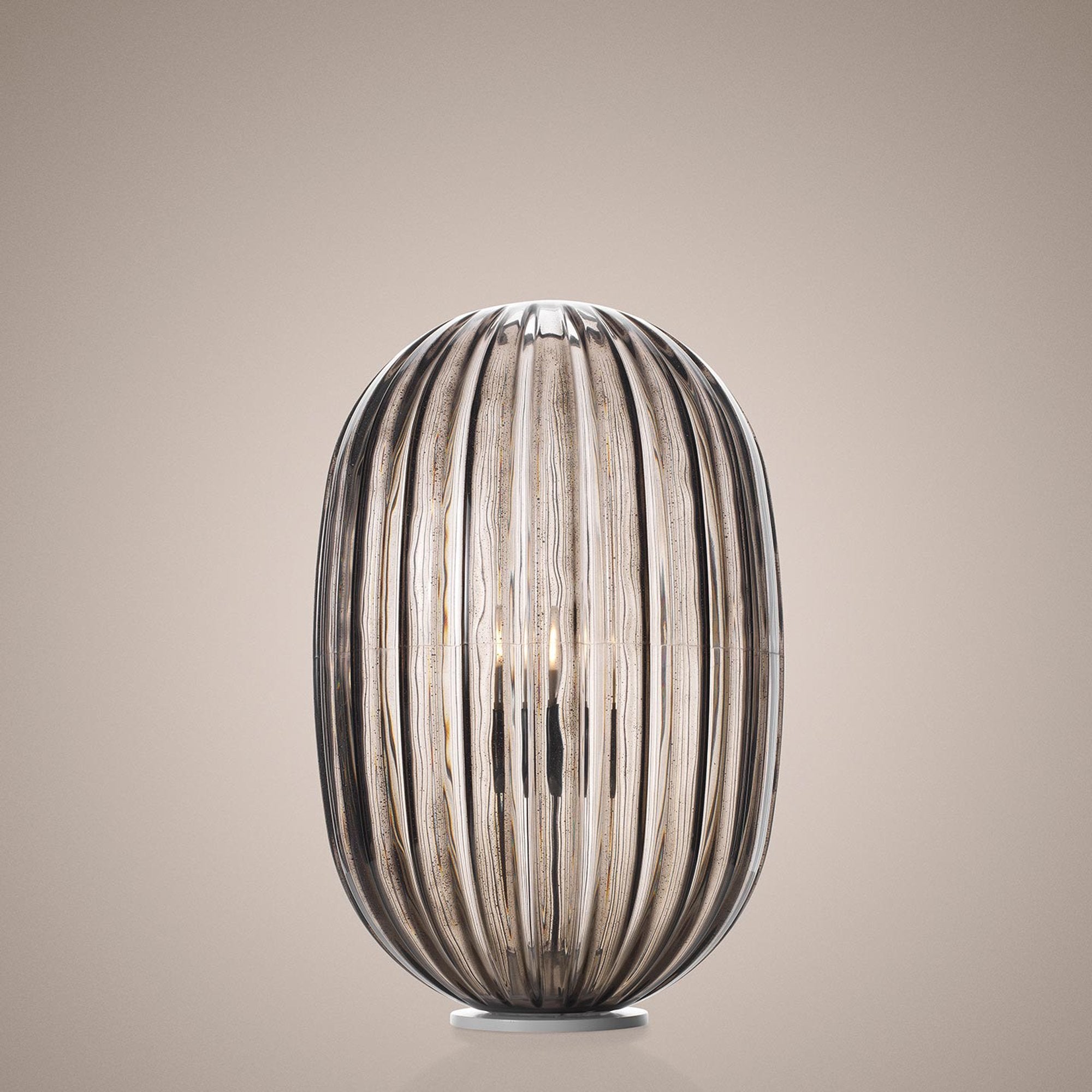 The look of an art museum is achievable by choosing the Plass Media Table Lamp from Foscarini. With an exceptional textured shade on this lamp, bursts of light radiate in a kaleidoscope pattern throughout the room.
