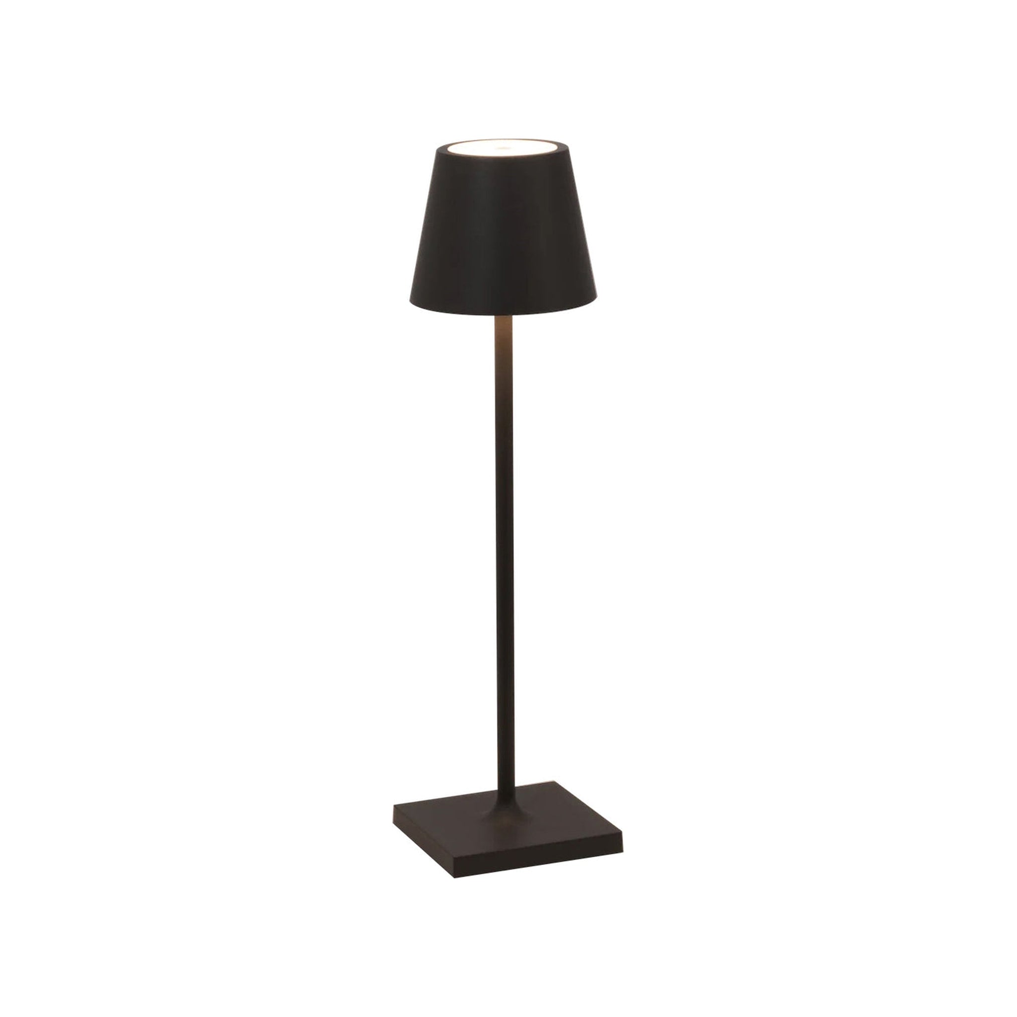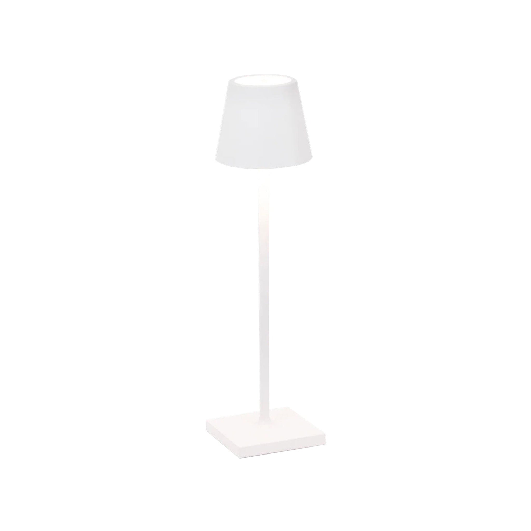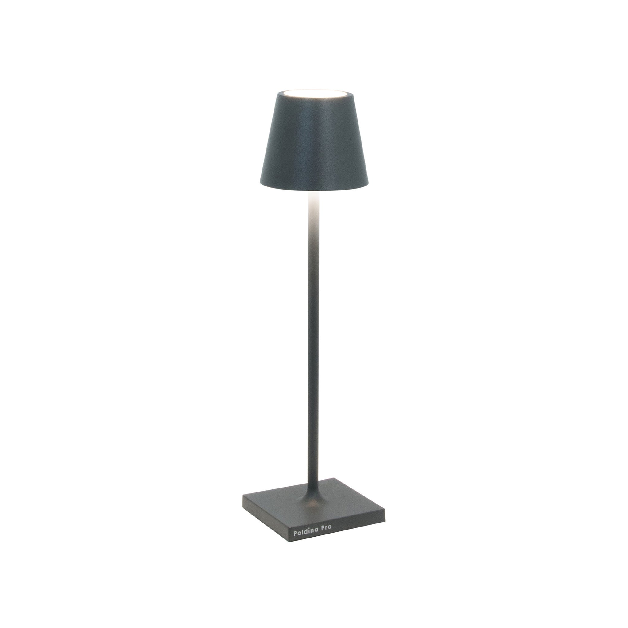 A robust set of features weaves convenience and power into the Poldina Pro LED Table Lamp from Zafferano America. A conventional lamp design sticks to tradition with a pleasing minimalist aesthetic, perfect for a casual indoor or outdoor space. This lamp powers up and operates through contact charging on its base with efficient battery packs and full range dimming to vary lighting levels.