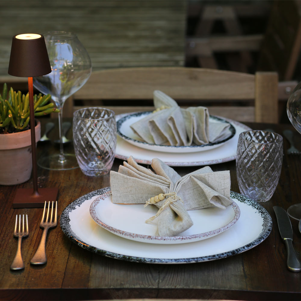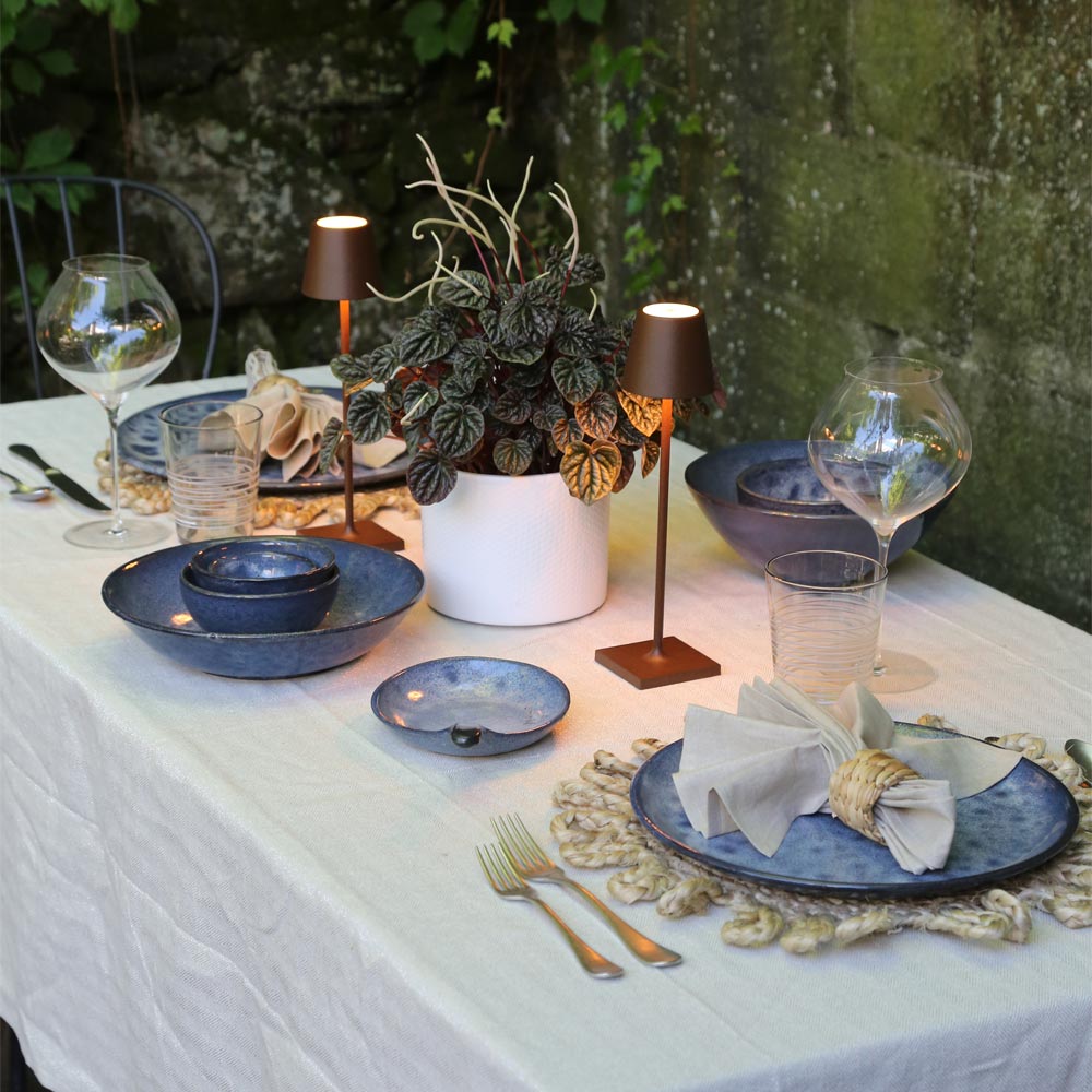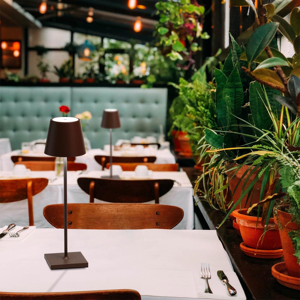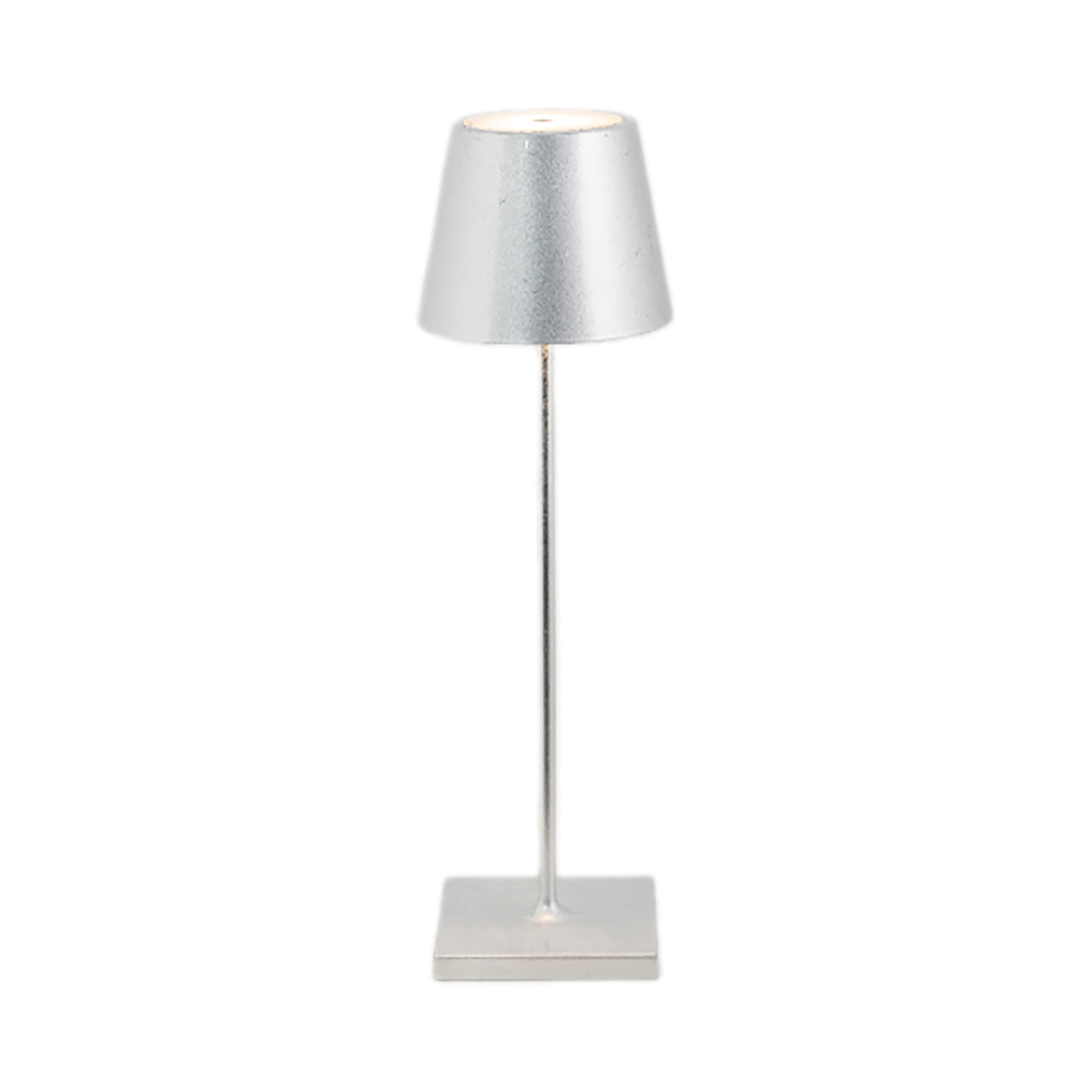 A robust set of features weaves convenience and power into the Poldina Pro LED Table Lamp from Zafferano America. A conventional lamp design sticks to tradition with a pleasing minimalist aesthetic, perfect for a casual indoor or outdoor space. This lamp powers up and operates through contact charging on its base with efficient battery packs and full range dimming to vary lighting levels.