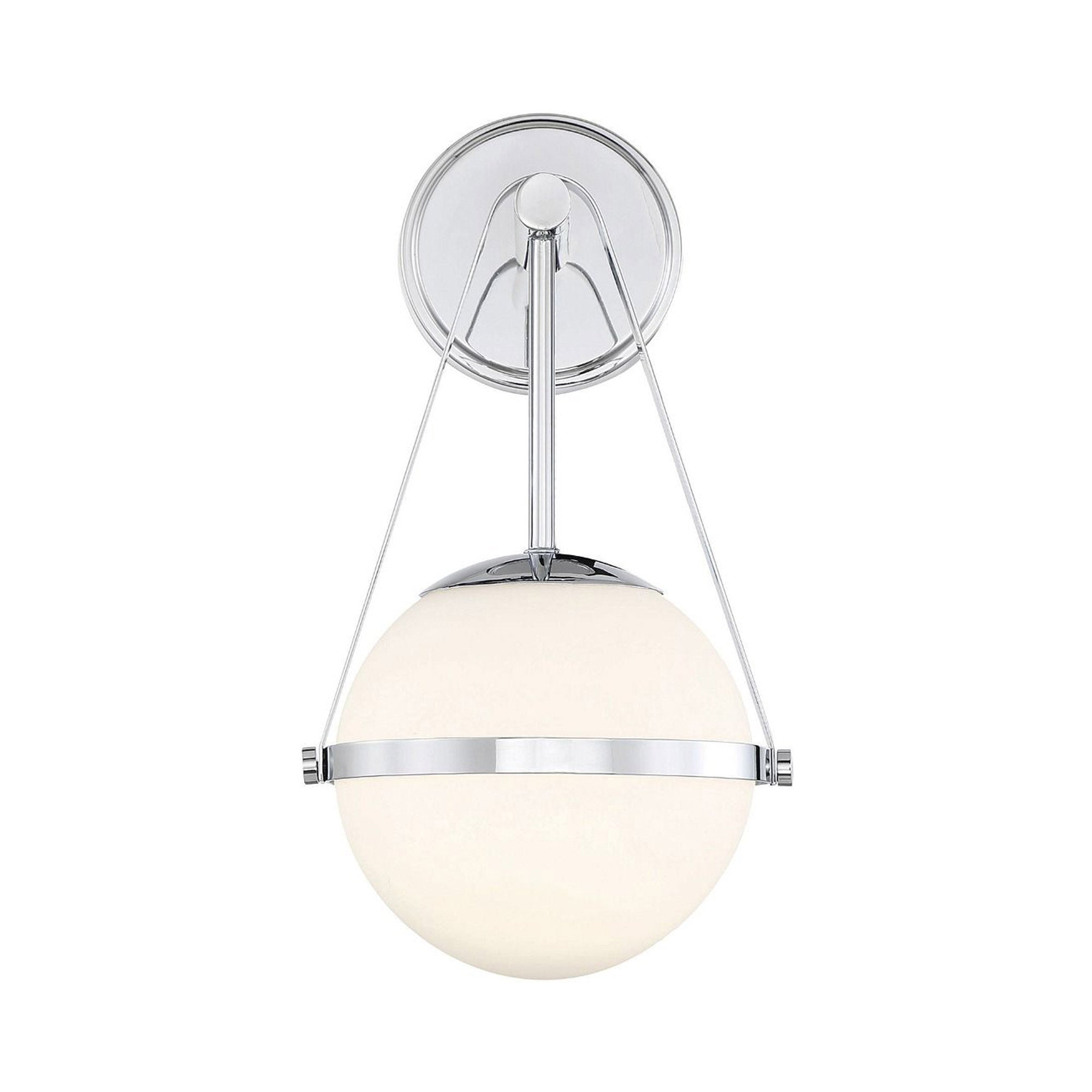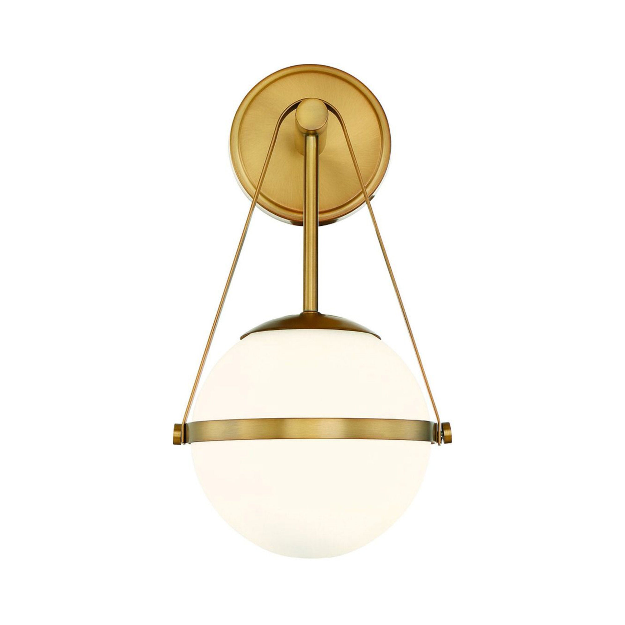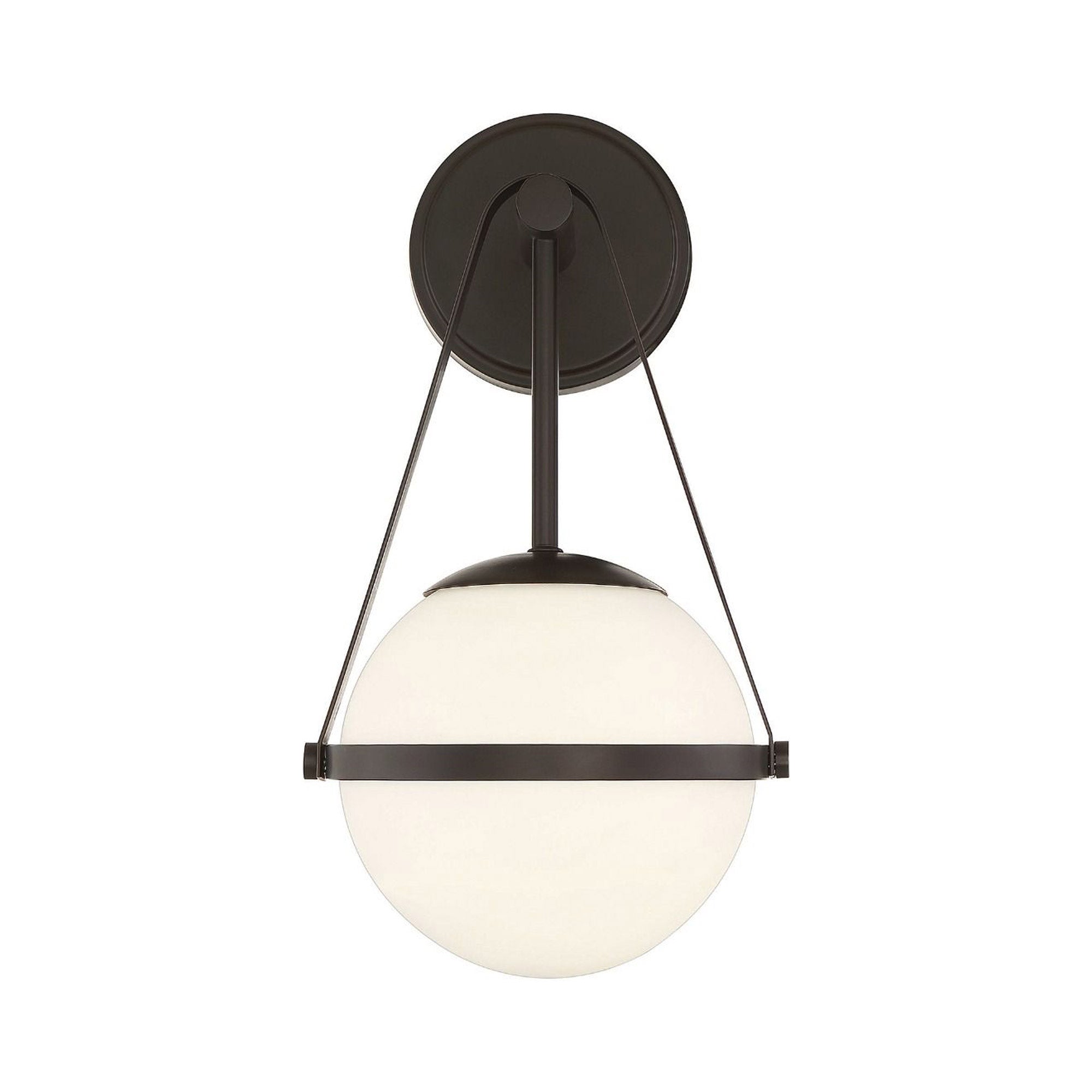 Contrast is the secret of design success in a classic retro-inspired light with versatility. The Polson Wall Light from Savoy House invokes a mix of basic shaping and refined spatial separation to make its case. A Mid-Century Modern vibe shows through in a fixture with a festive opal etched glass orb stealing the show.