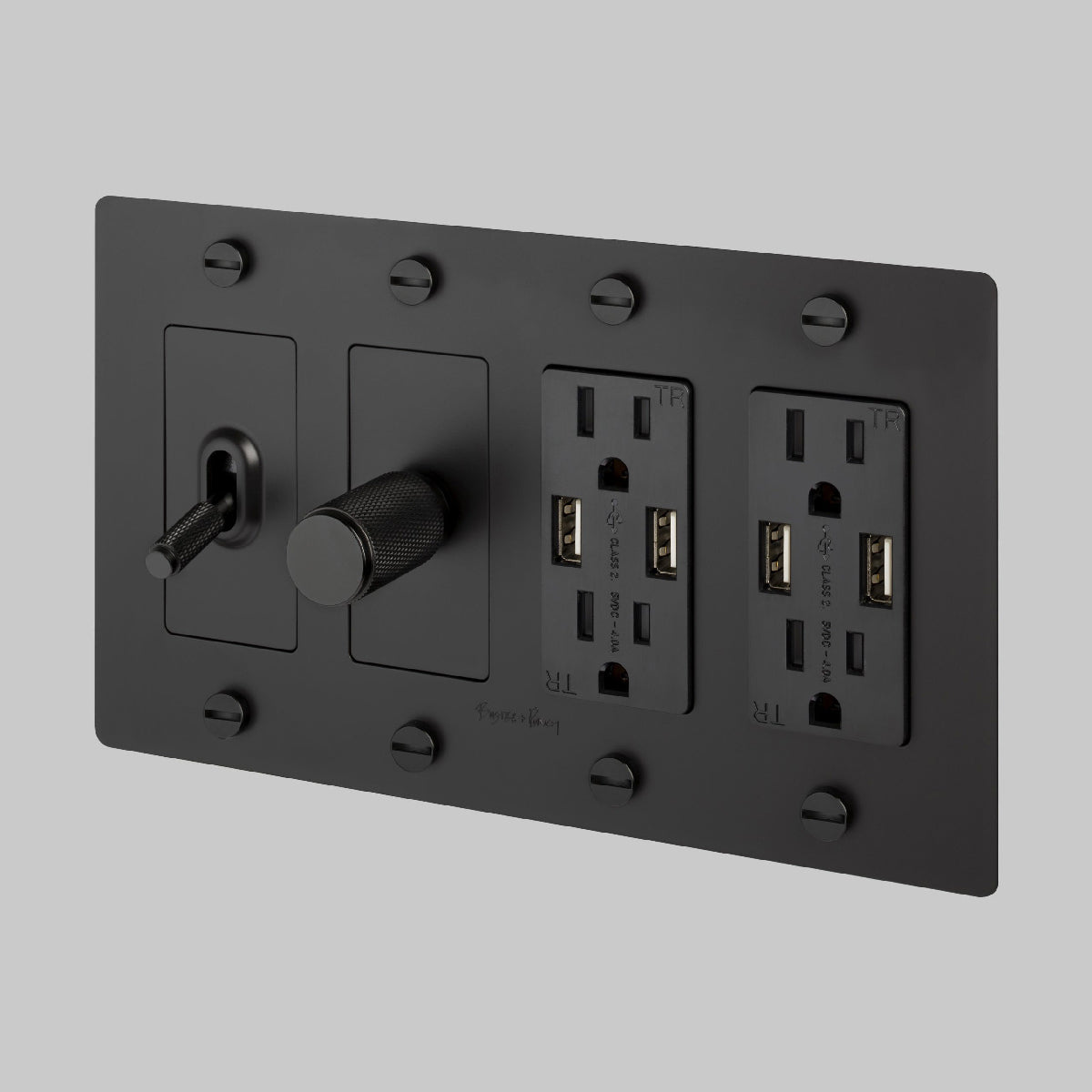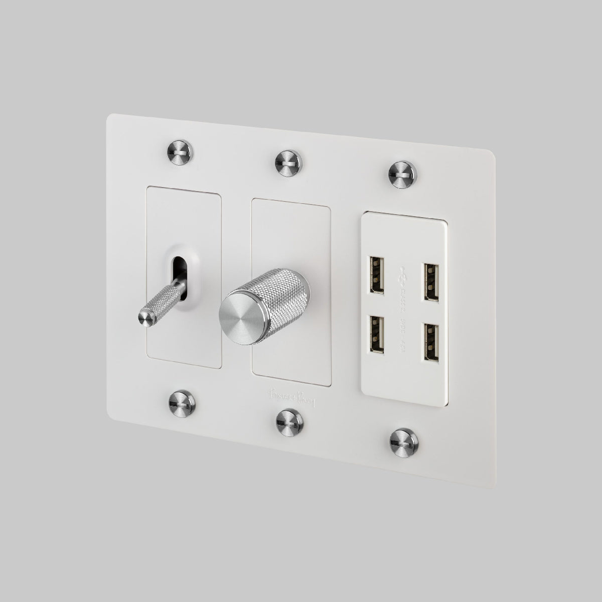 Clean lines and lightweight anodized metal construction updates electrical power access with the Polycarbonate Wall Plate from Buster and Punch. Accommodating a variety of pre-purchased switches, outlets, knobs, and USB ports, this wall plate maintains a clean look with long-lasting usage.
