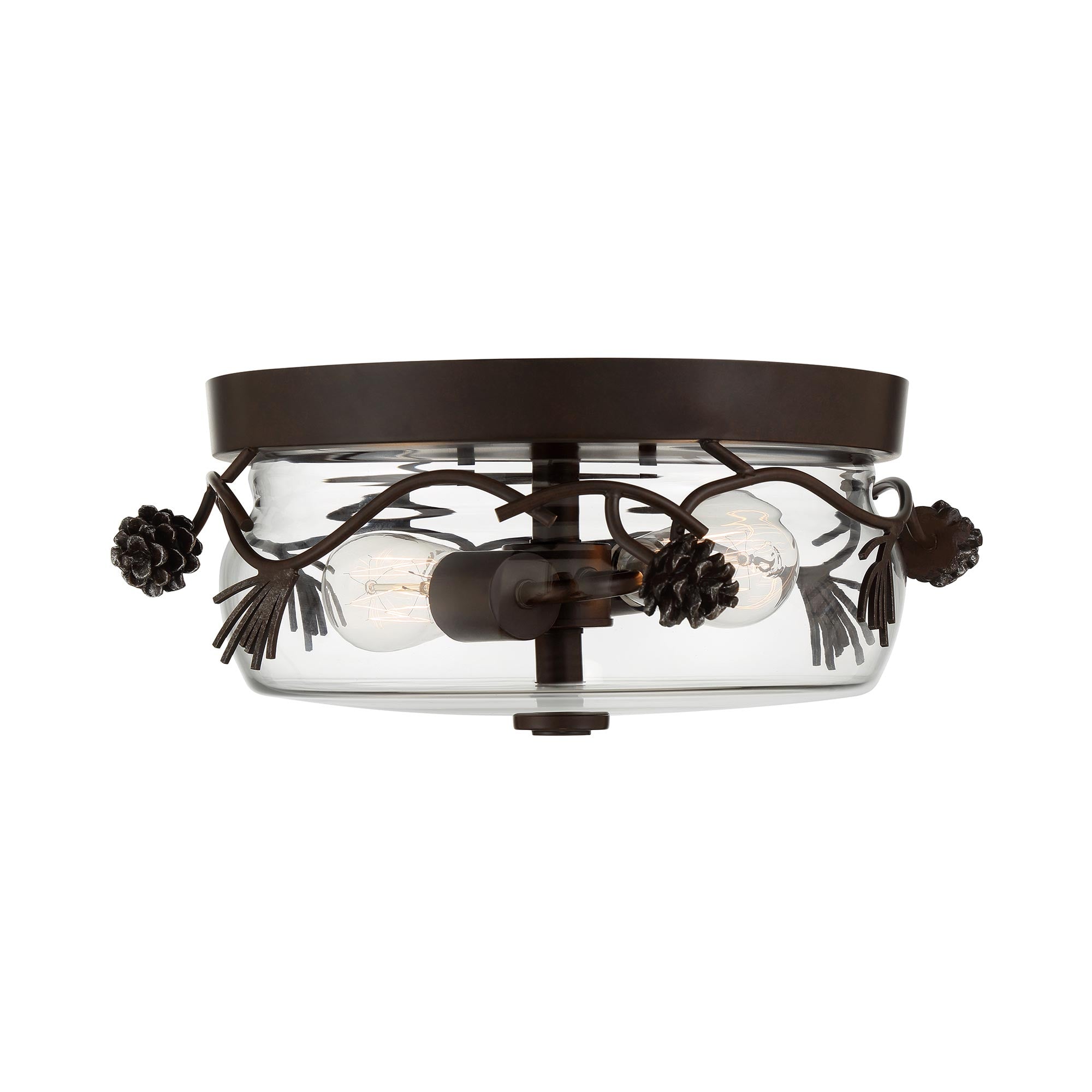A dramatic nature vibe permeates the statement-making look of a classic exterior light, ideal for updated modern sun porches, pool houses, and gazebos. The Ponderosa Ridge Outdoor Flush Mount Ceiling Light from Minka Lavery contributes a botanical motif with charming accents attached to its dramatic weathered spruce finish frame. A delightfully shaped clear glass shade offsets the rustic attitude of this brilliant fixture with subtle delicacy.