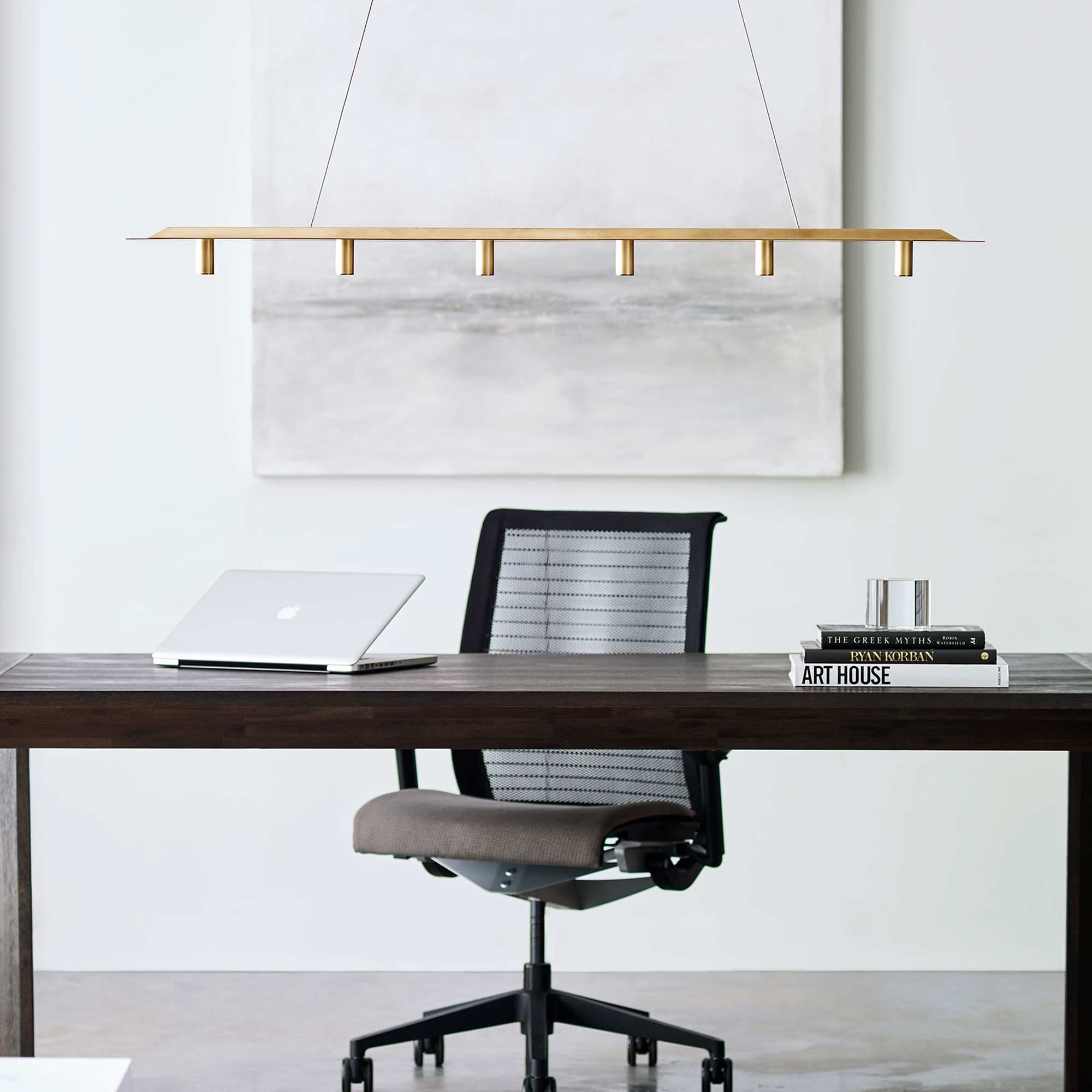 Light up a linear space with the slim, sleek design of the Ponte LED Linear Pendant Light from Visual Comfort Modern. Architectural inspirations pair with energy efficient LED lighting, offering warm illumination over a dining table or even in a professional conference room. Minimalism in design, this pendant adds six light modules for even lighting in your space.