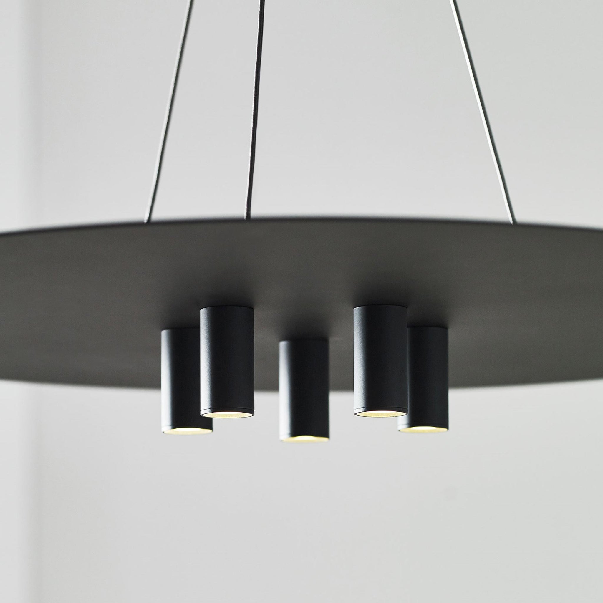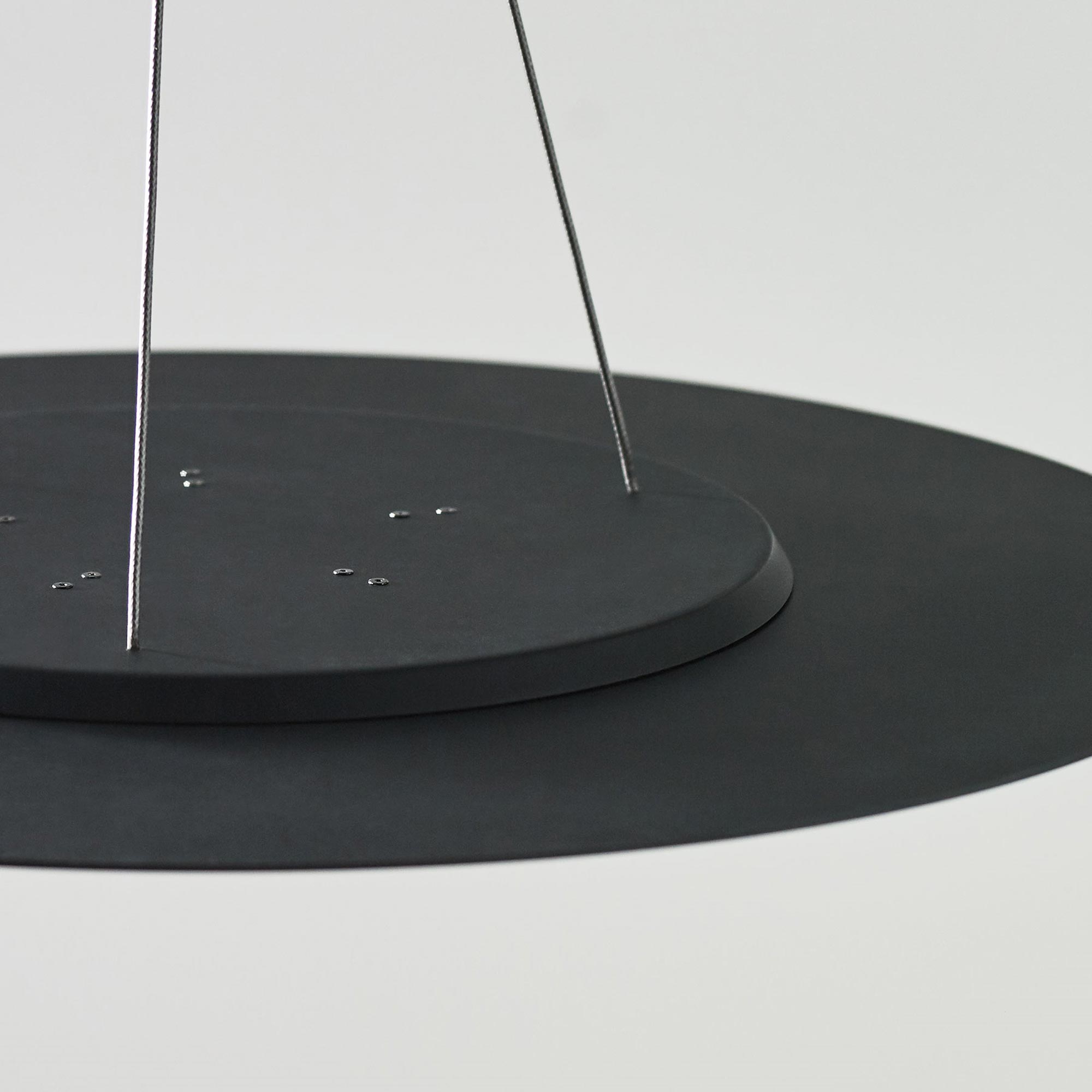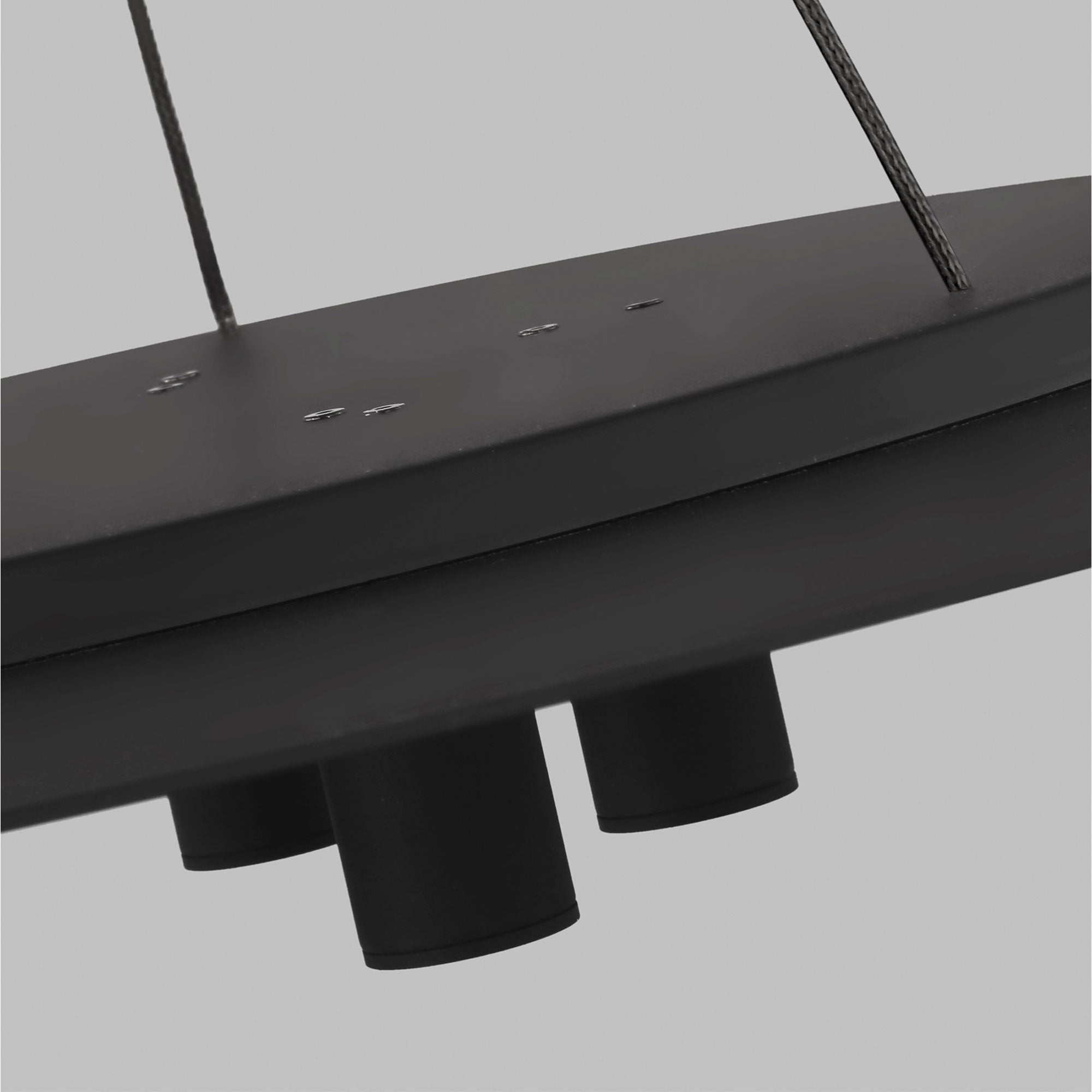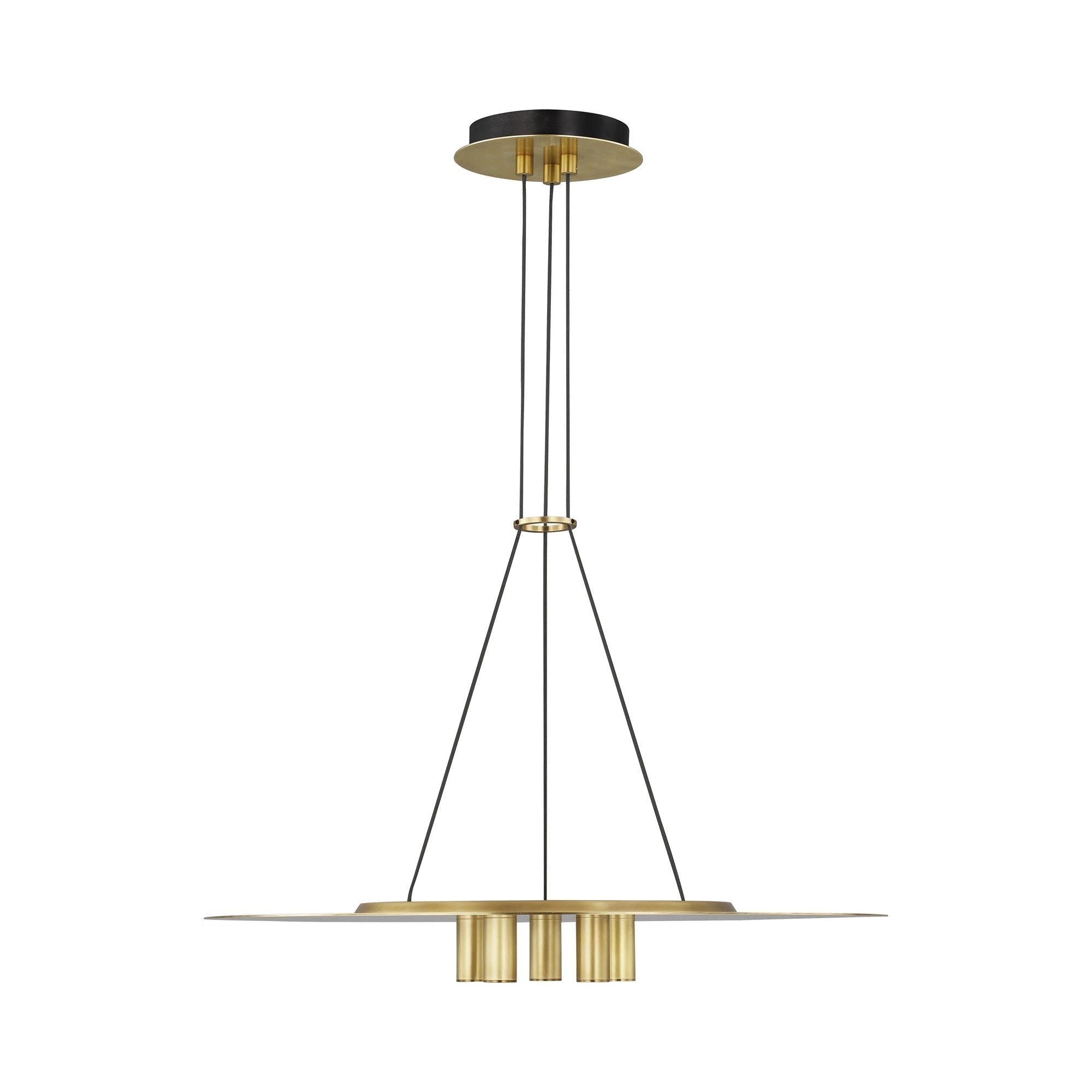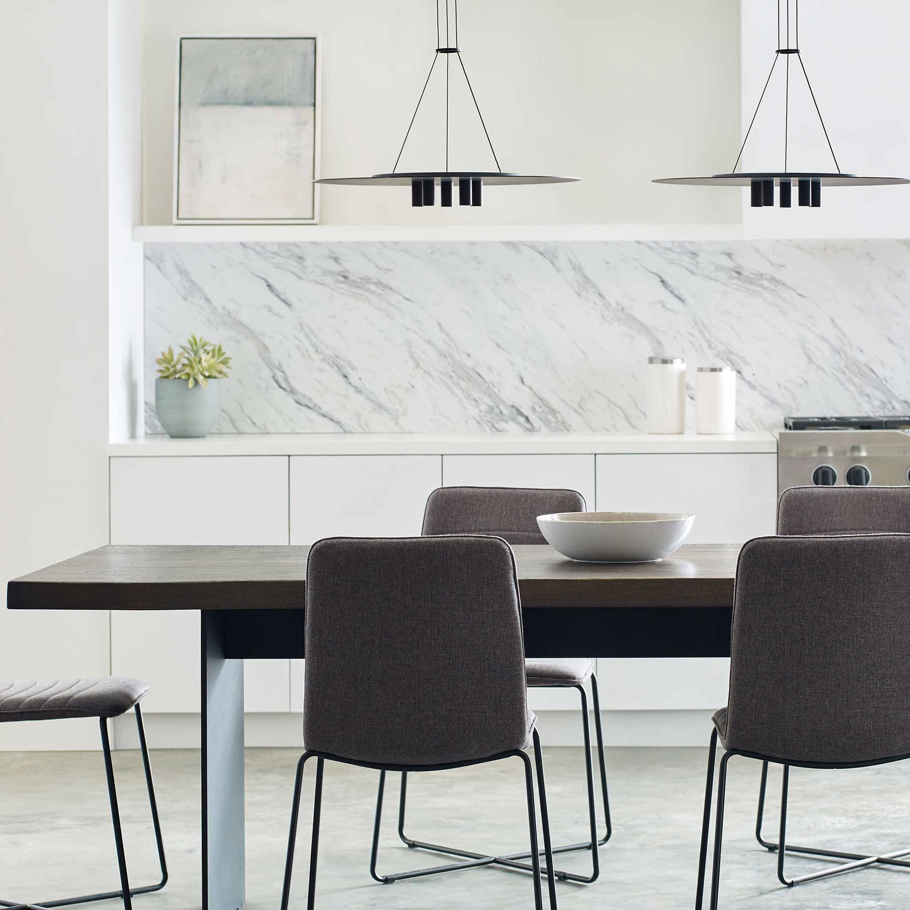 Evoking a horizon of skyscrapers, the Ponte LED Pendant Light from Visual Comfort Modern pairs minimalism with architectural precision. A trio of cables are gathered with a modern collar and paired with a wide disc shade, offering a clean, sleek look and feel. Pinpoint lights deliver downlighting perfect for a wide range of spaces.