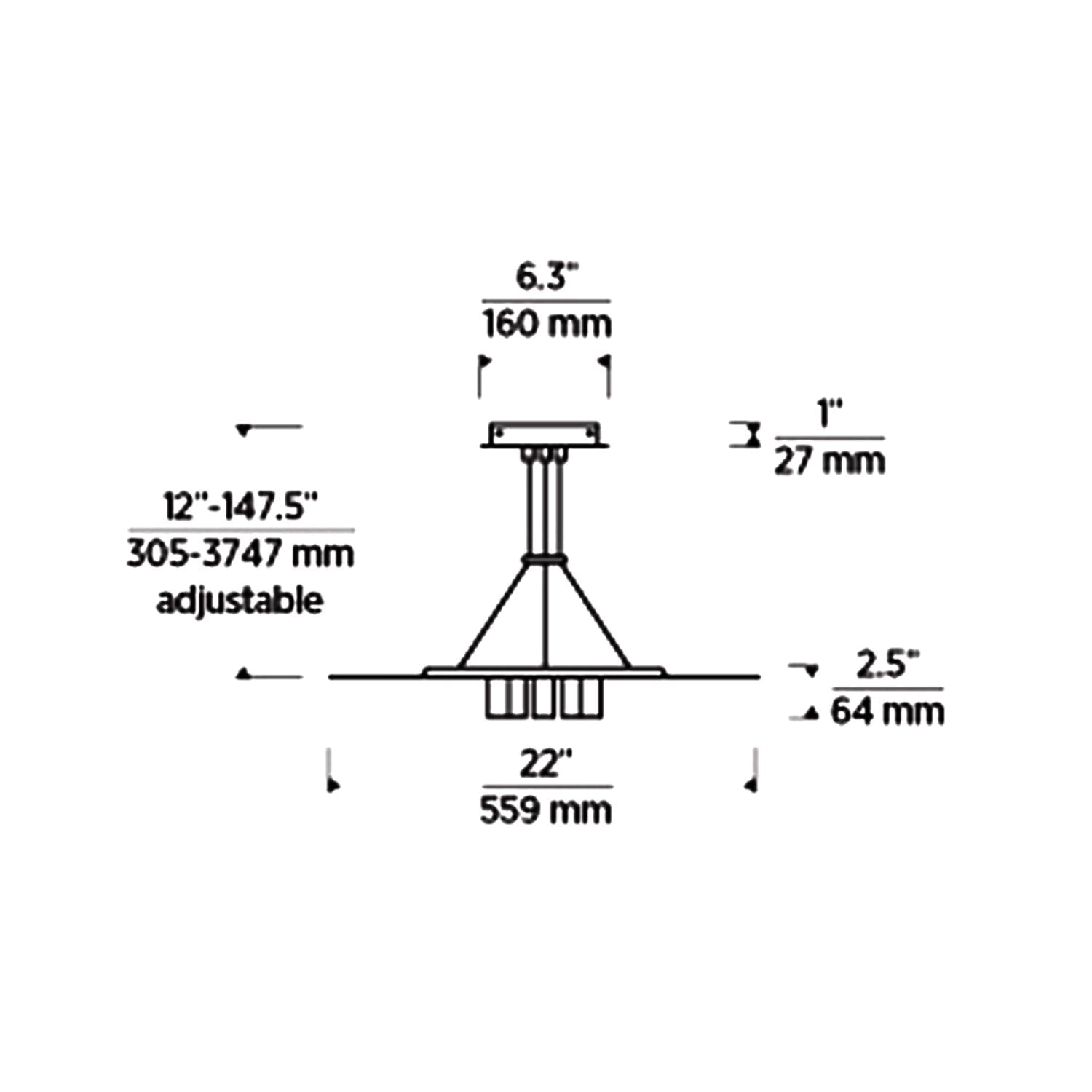 - Dimensions: 22"D X 12"H; 147.5" max height