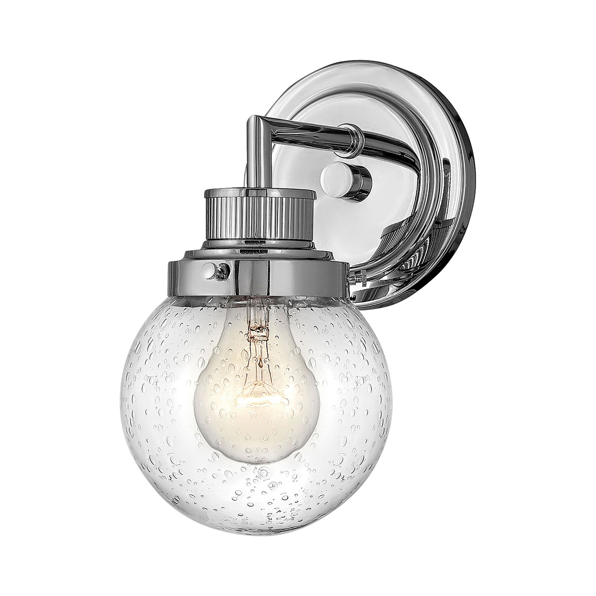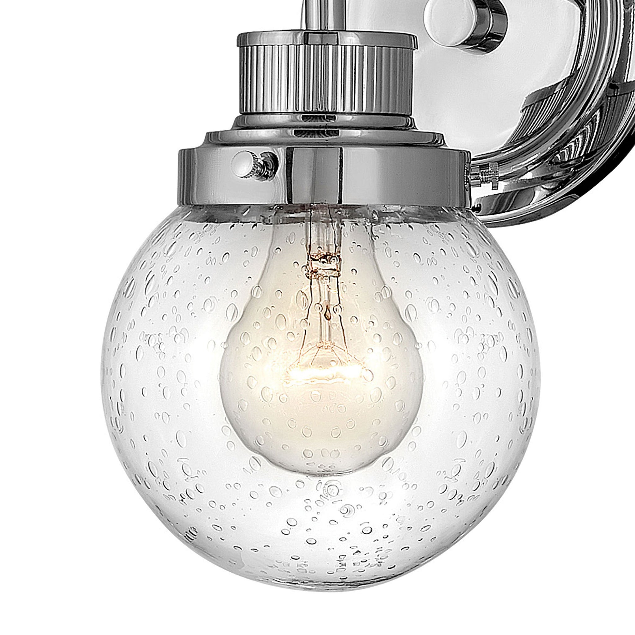 Poppy Bath Wall Light features clear glass spheres that bubble out of the refined, ribbed Chrome or Heritage Brass fitters to create a simple, yet sophisticated silhouette. An elegant, stepped backplate and crisp crossbar anchor this airy design. Poppy Bath Wall Light showcases mid-century style with a spectacular spin.