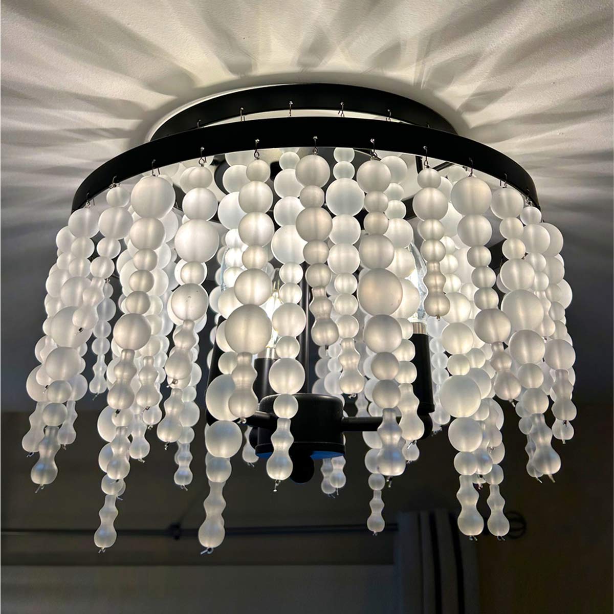 Texture makes its mark as a central focus in a light fixture created for versatility and style. The Poppy Semi Flush Mount Ceiling Light from Crystorama offers a two-ring metal frame with slender bands supporting graduated bead strands, exotic and captivating. With an approachable motif fitting farmhouse, traditional, and boho-inspired design schemes, this fixture becomes a fast favorite.