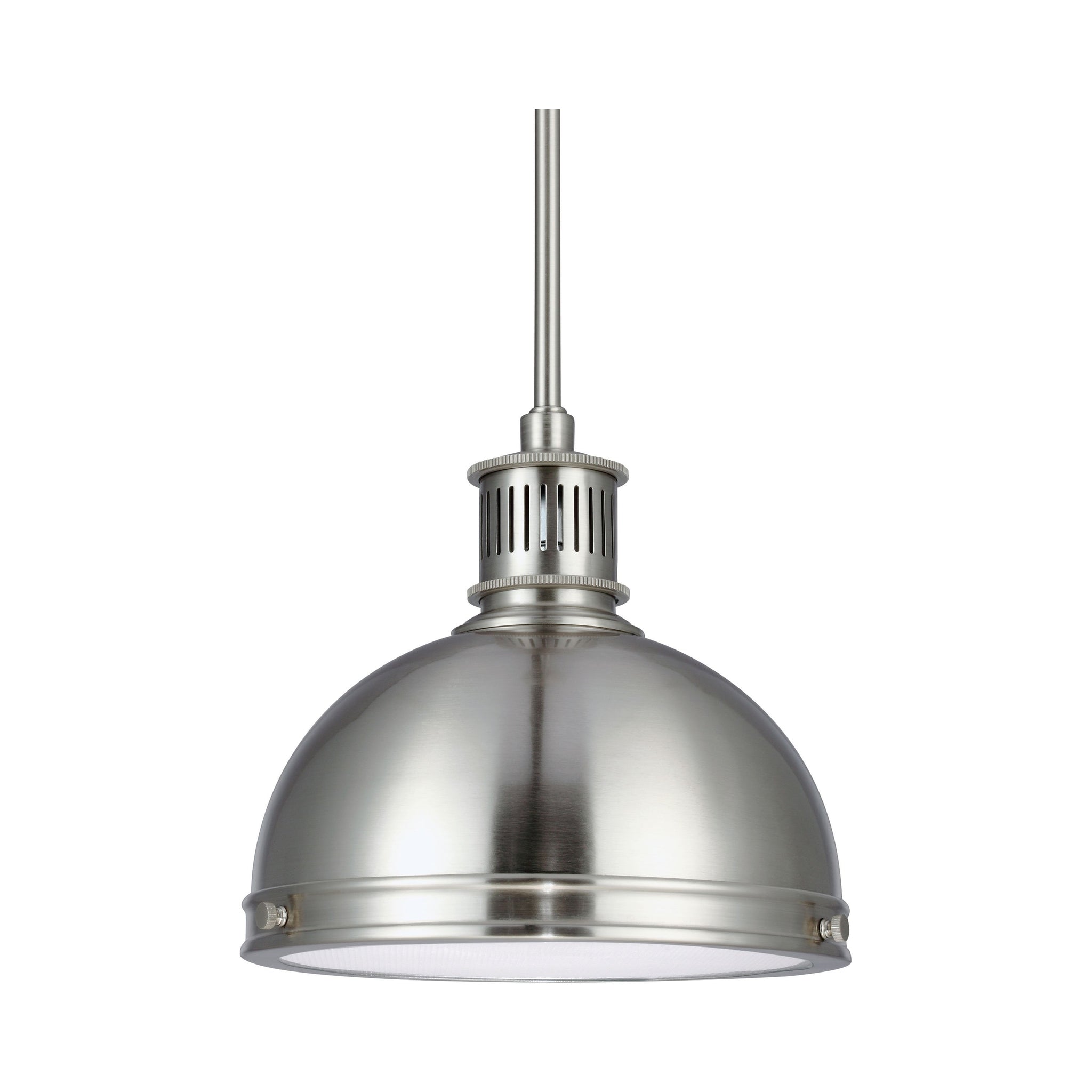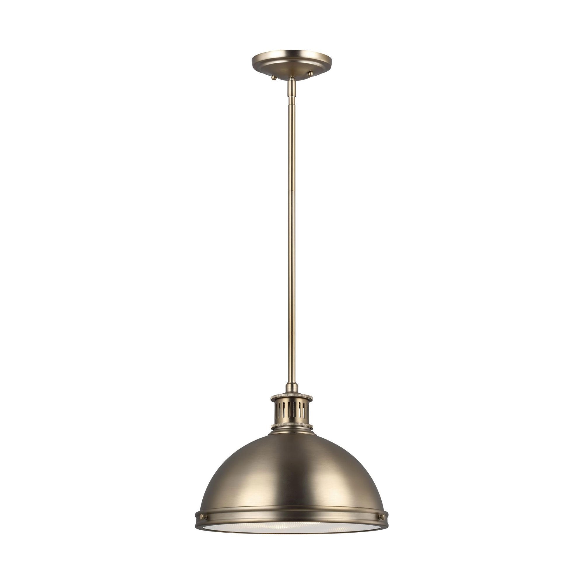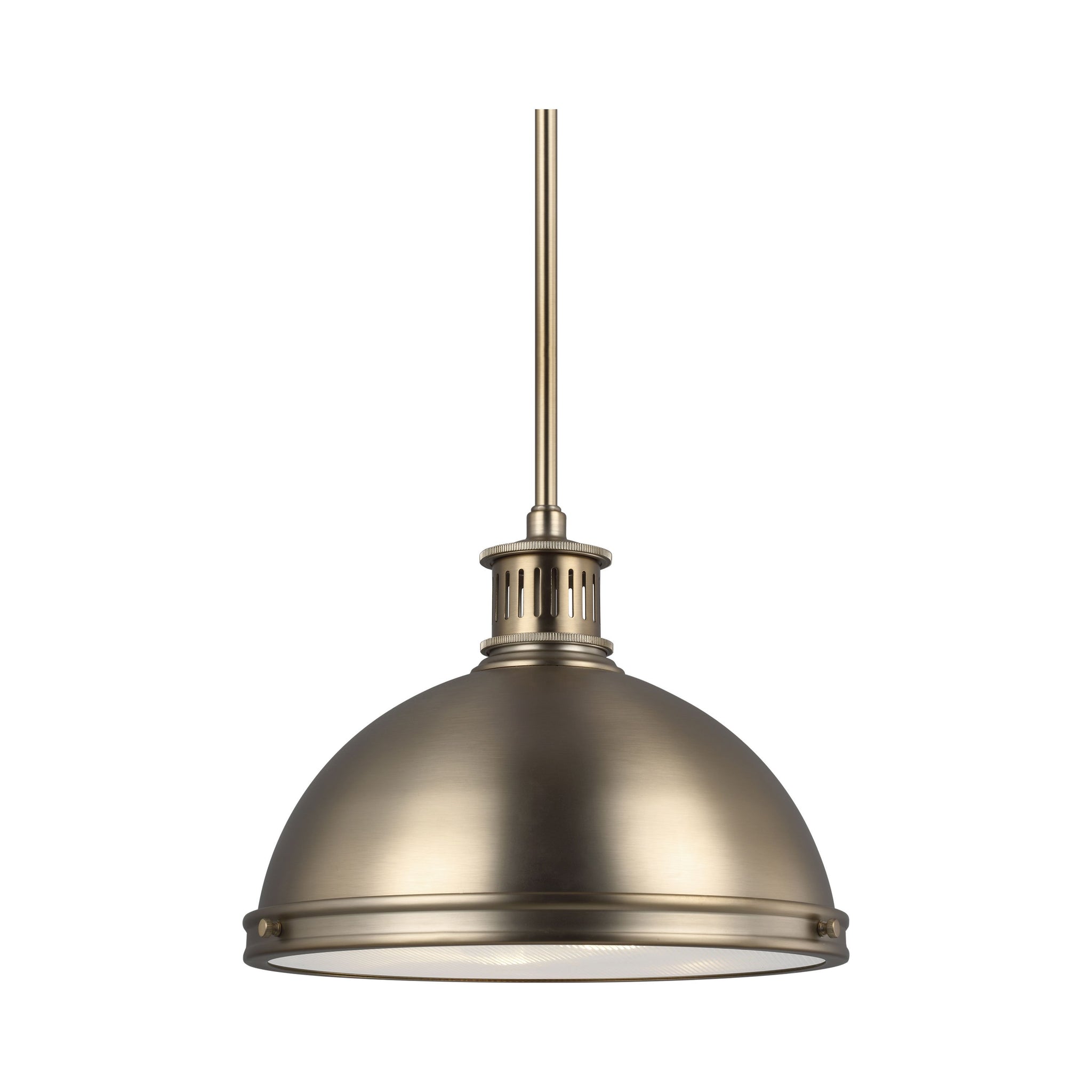 Inspired by industrial lighting, the hard-working, large-scale Pratt Street metal pendants by Sea Gull Lighting put light where you need it, while making a significant design statement. Offered in a choice of Brushed Nickel, Satin Bronze or Autumn Bronze finishes, the one-light, two-light and three-light pendants are all fully enclosed with a prismatic diffusor at the bottom to spread light output evenly and alleviate glare. The pendants are available in incandescent and ENERGY STAR-qualified LED versions, and all can easily convert to LED by purchasing LED replacement lamps sold separately.