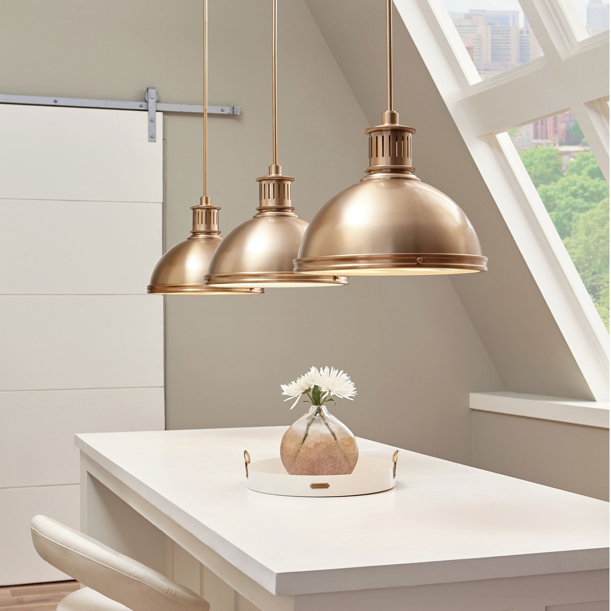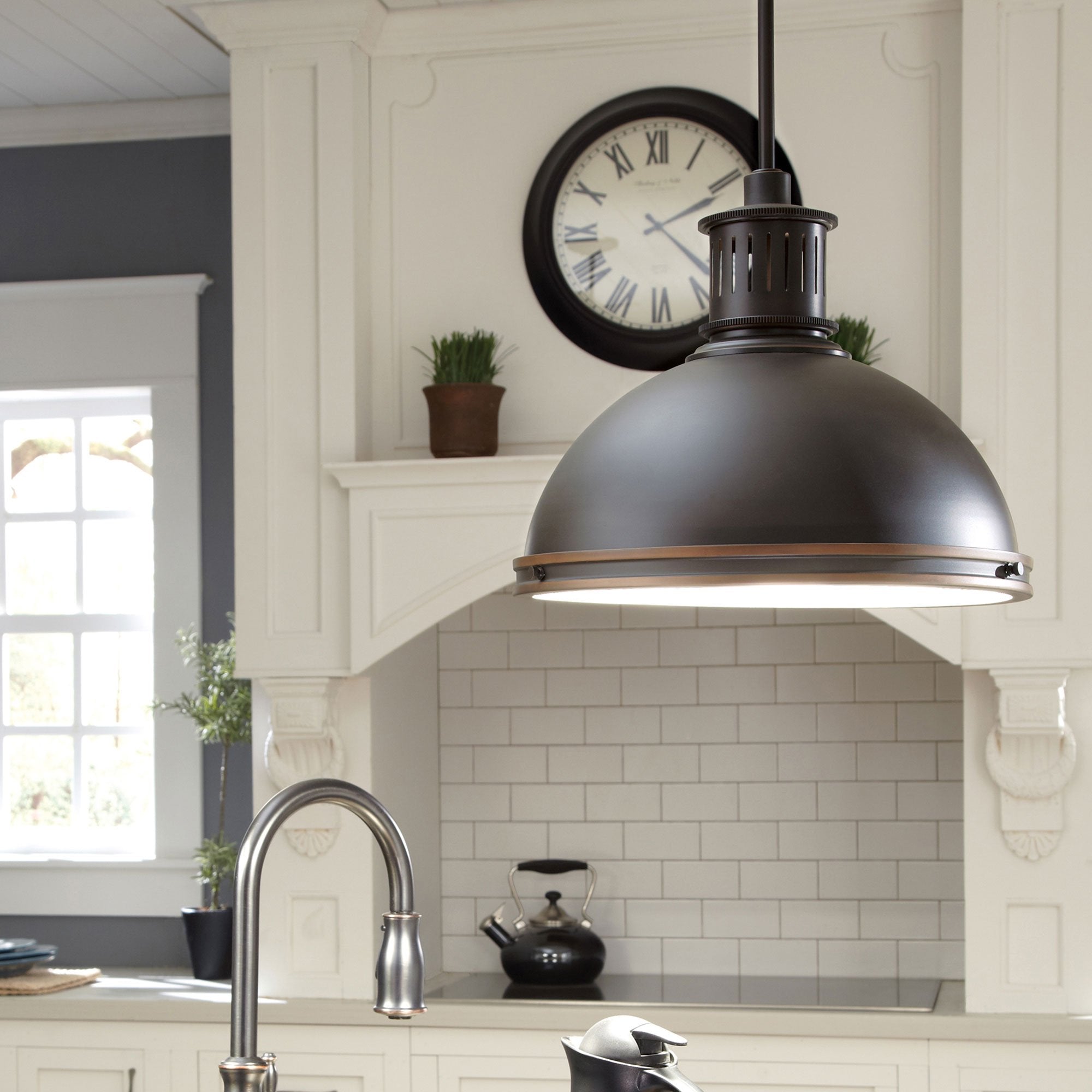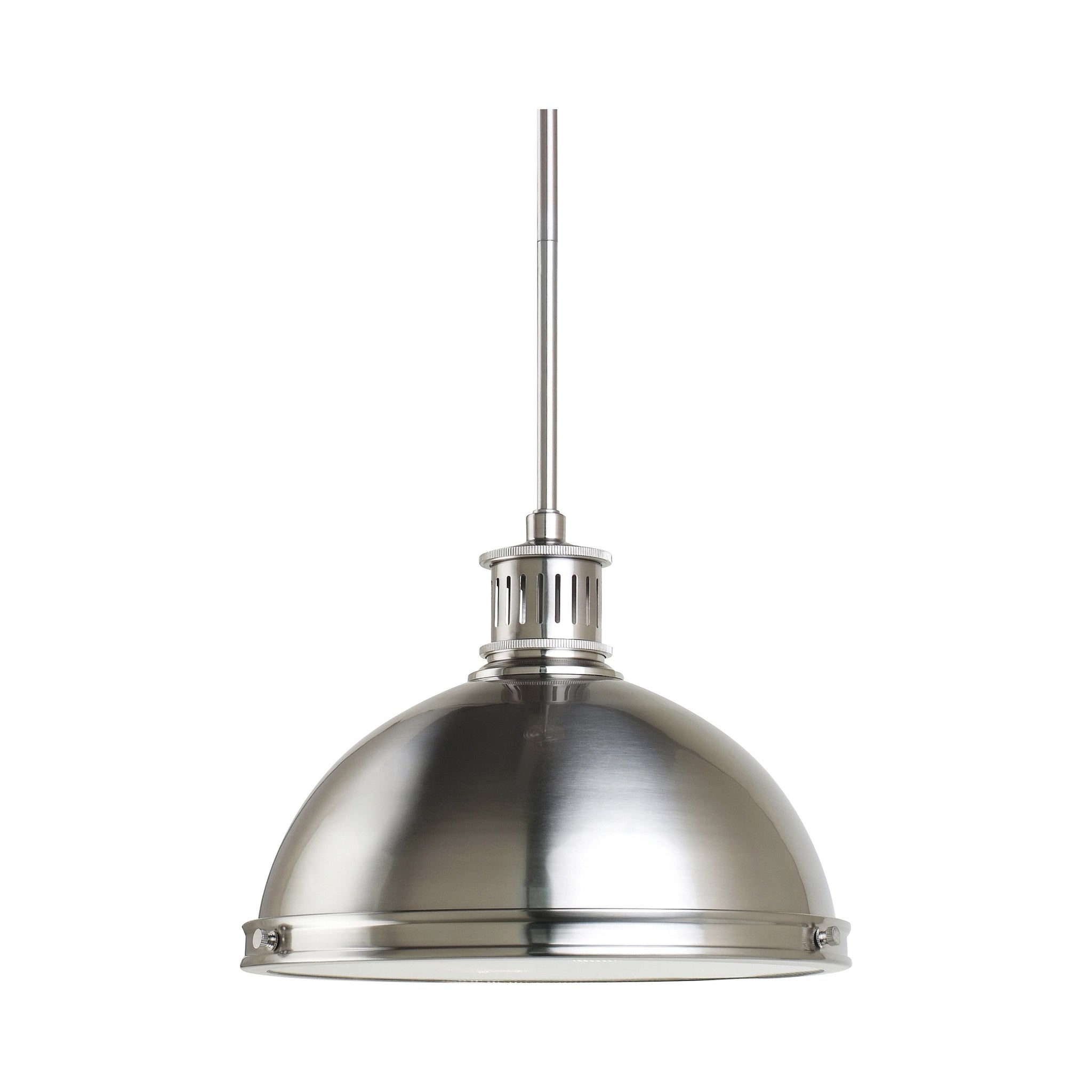Inspired by industrial lighting, the hard-working, large-scale Pratt Street metal pendants by Sea Gull Lighting put light where you need it, while making a significant design statement. Offered in a choice of Brushed Nickel, Satin Bronze or Autumn Bronze finishes, the one-light, two-light and three-light pendants are all fully enclosed with a prismatic diffusor at the bottom to spread light output evenly and alleviate glare. The pendants are available in incandescent and ENERGY STAR-qualified LED versions, and all can easily convert to LED by purchasing LED replacement lamps sold separately.