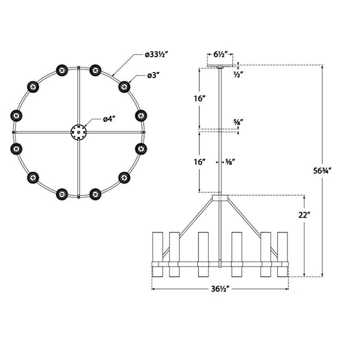 - Dimensions: 36"D X 22"H; 56.75" max height