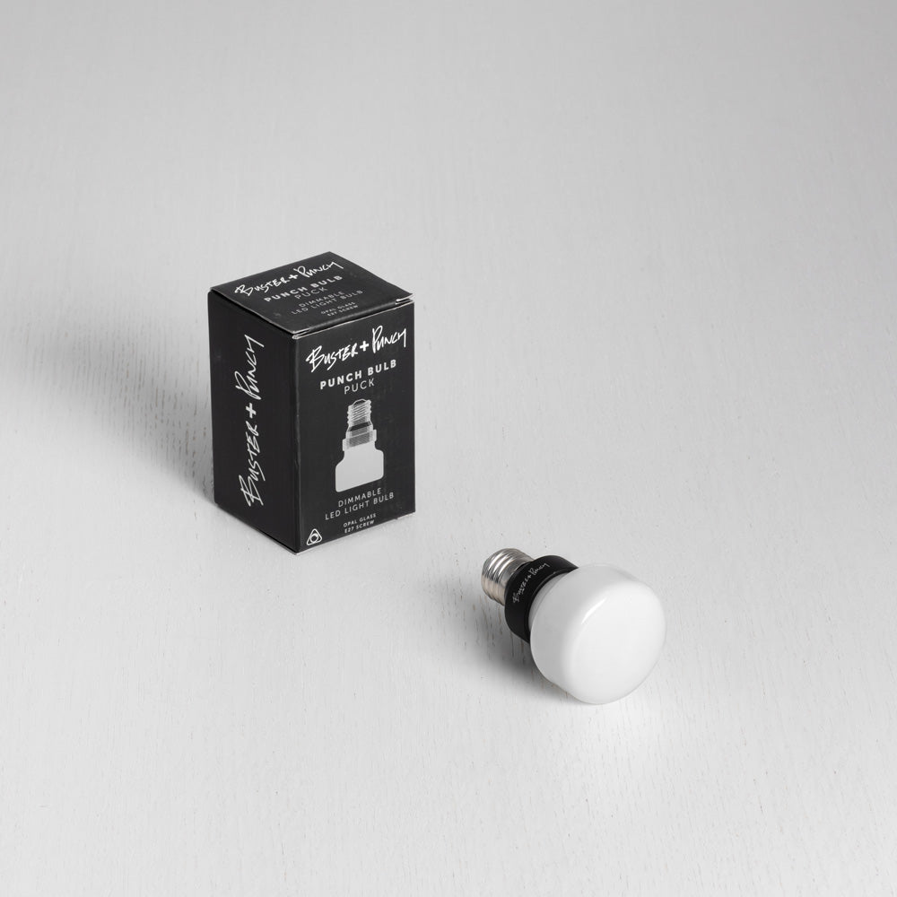 Work with lighting to perfect a designer vibe and create sophistication. The Punch Puck Medium Base 110V-120V LED Bulb from Buster + Punch arrives finished with an opal polycarbonate shell that yields alluring, uniform illumination. Energy efficiency is one benefit of a stylish bulb designed for modern fixtures.