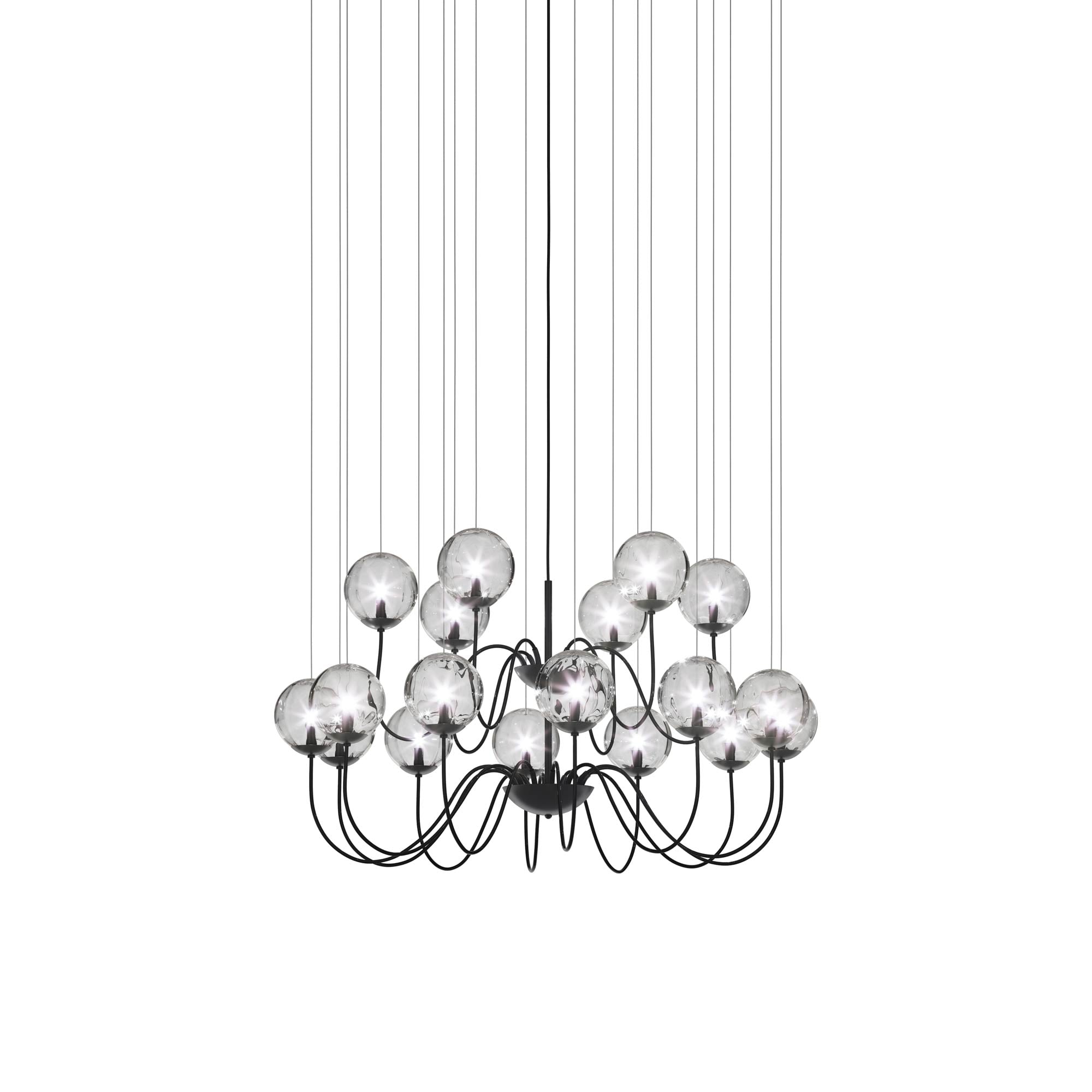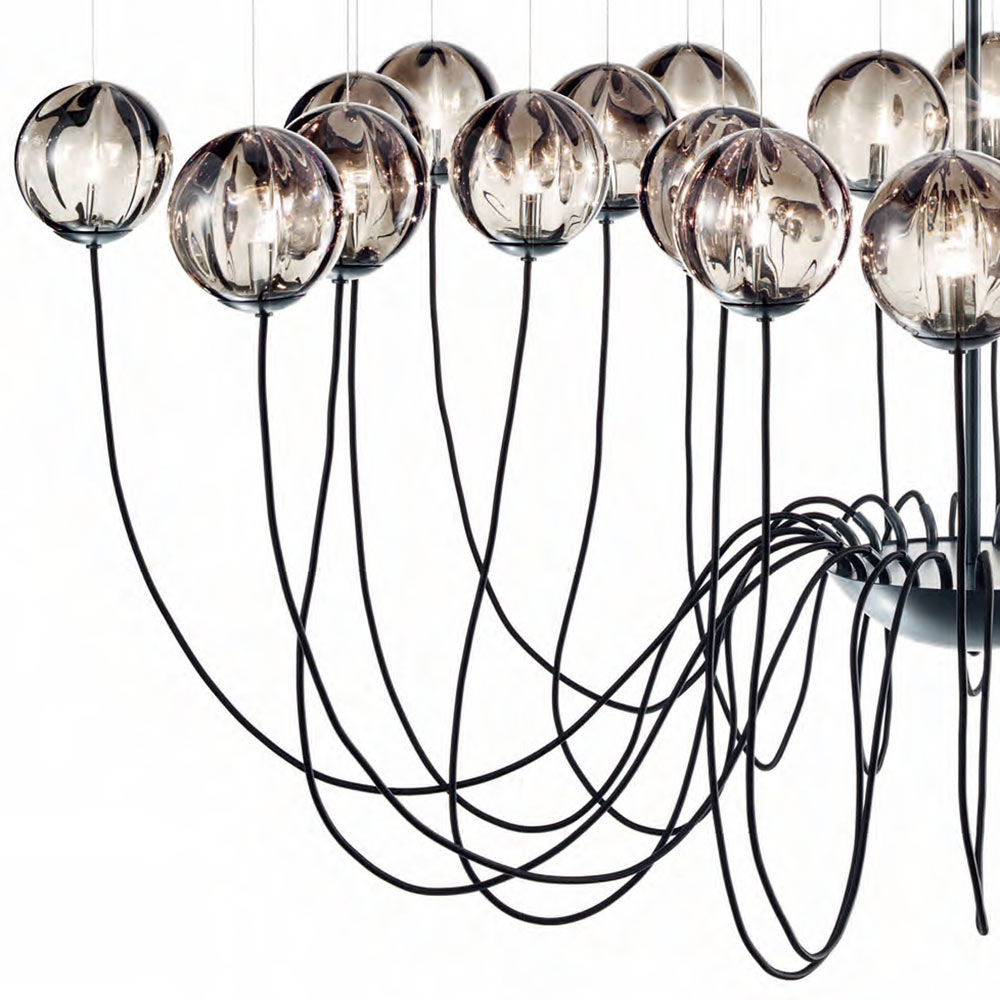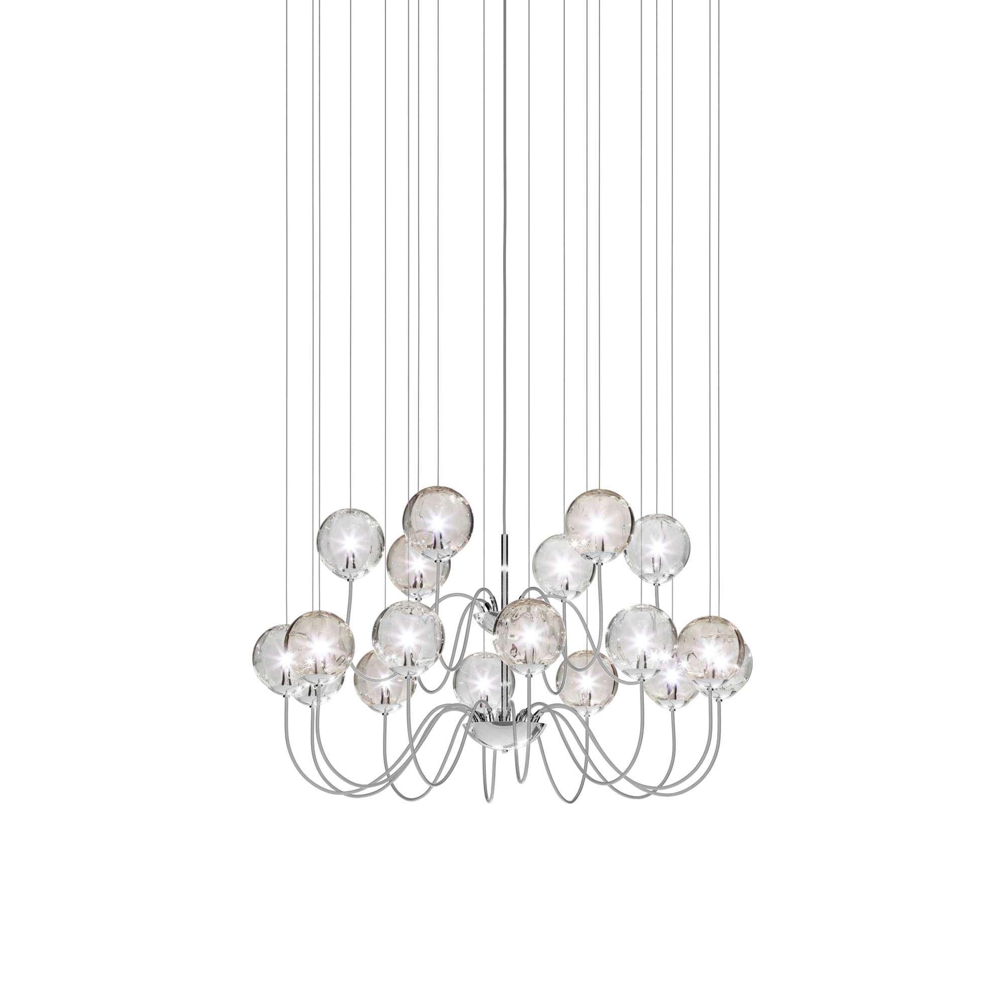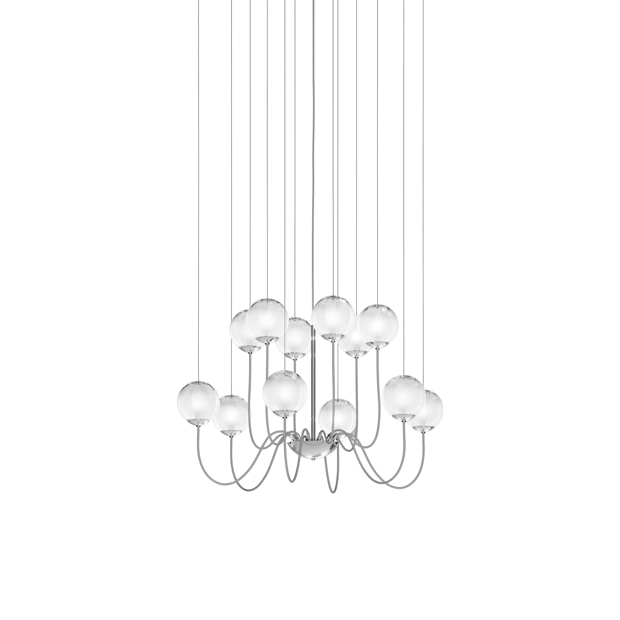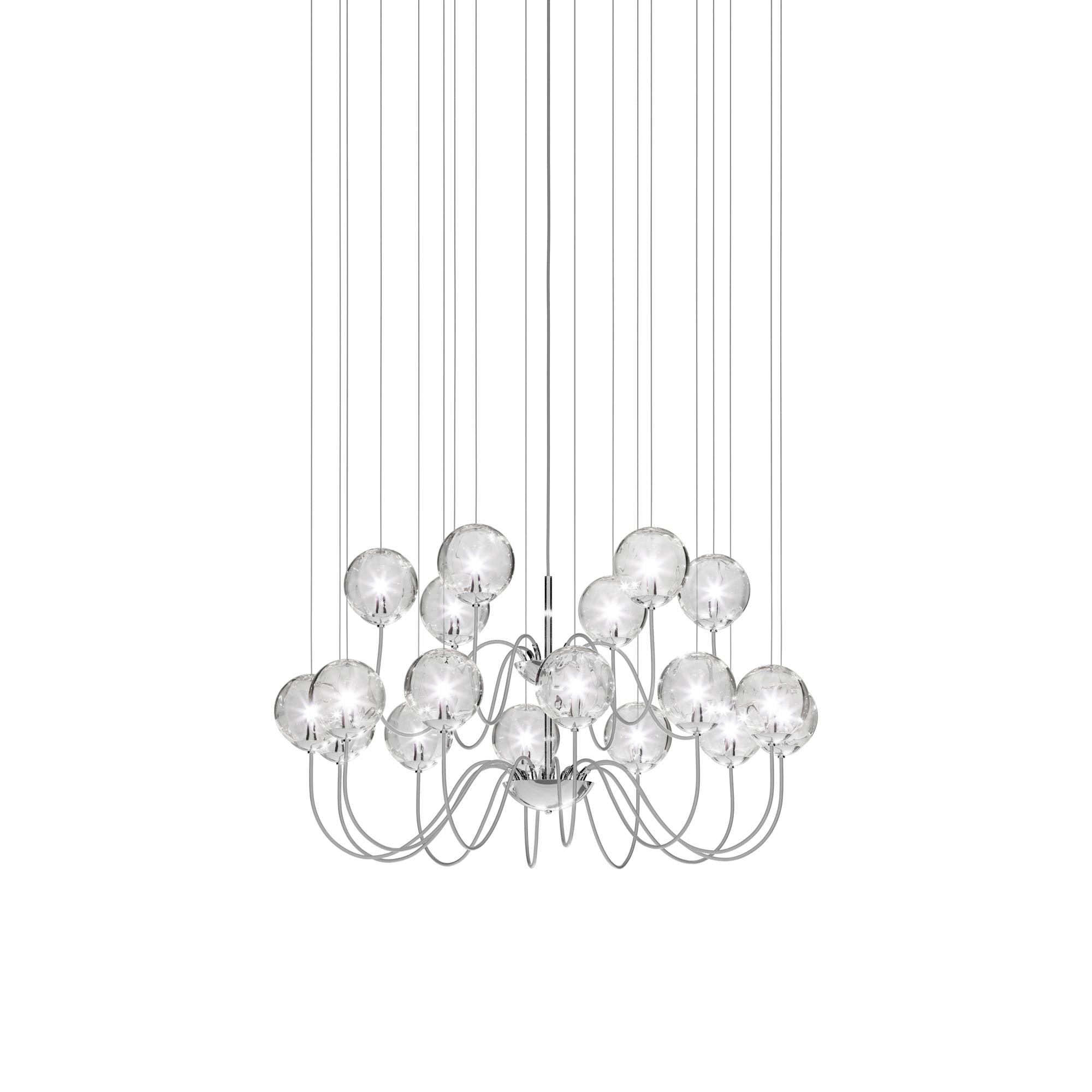 Find the balance between decadence and simplicity with the Puppet Chandelier from Vistosi, perfecting the art of transforming lighting into gallery-style artistry. The sheer delicacy of glass spheres become instrumental in radiating soft light and delivering a captivating aesthetic. Subtle metal holders and suspension cords embellish the contemporary feel of this stylish fixture.