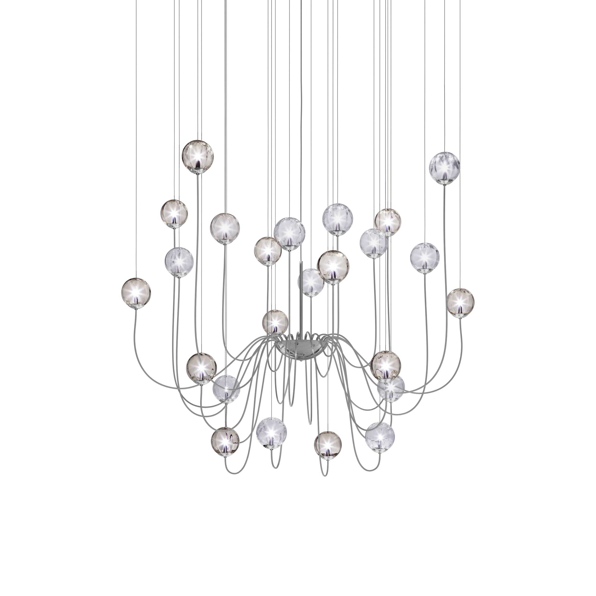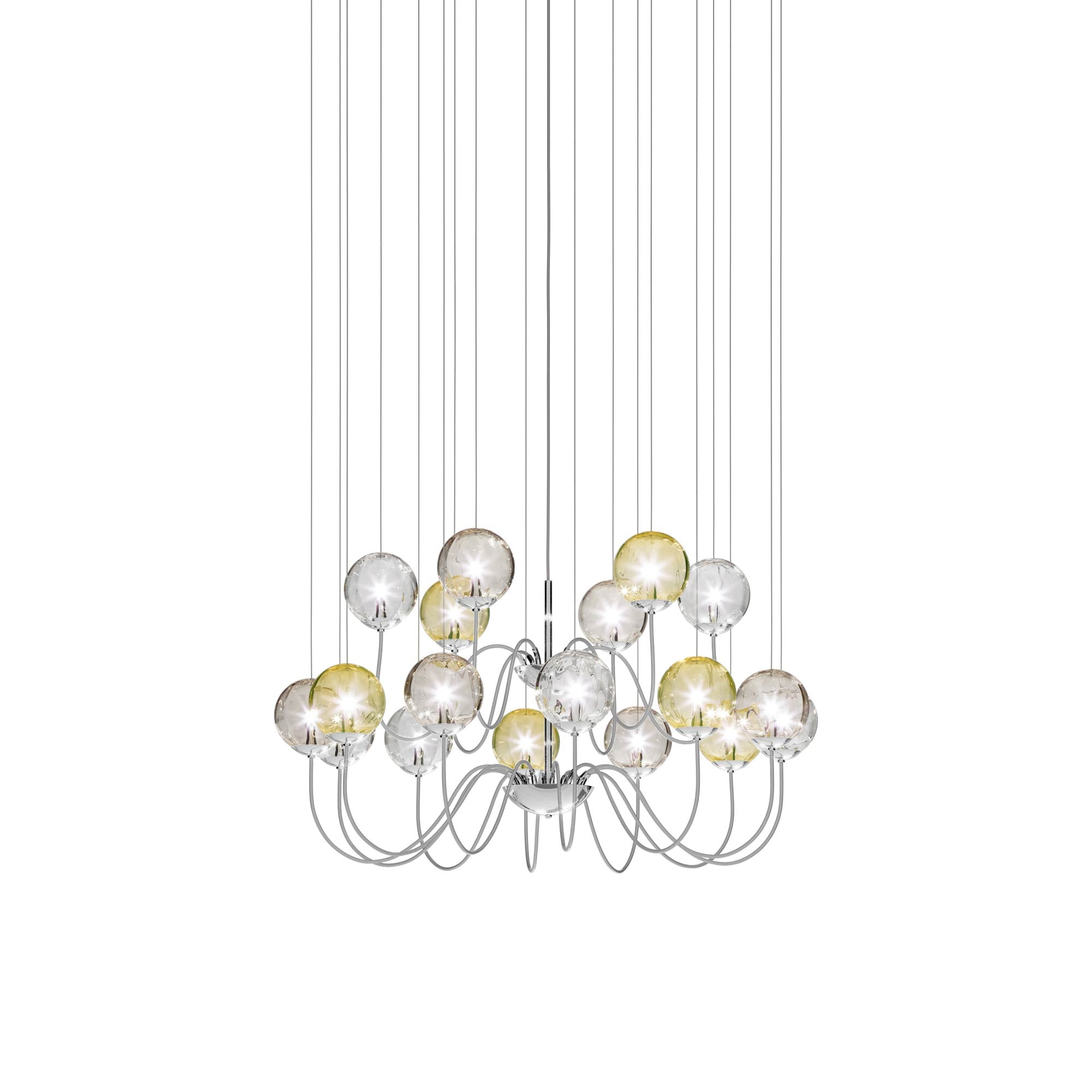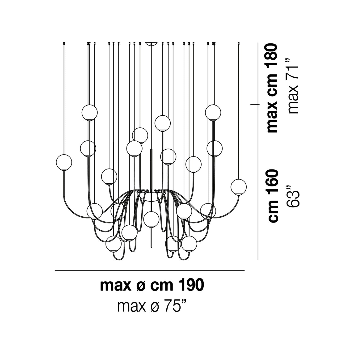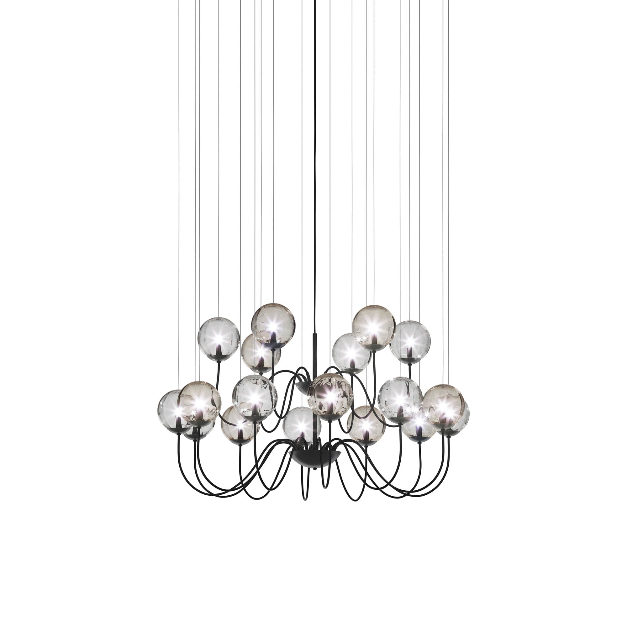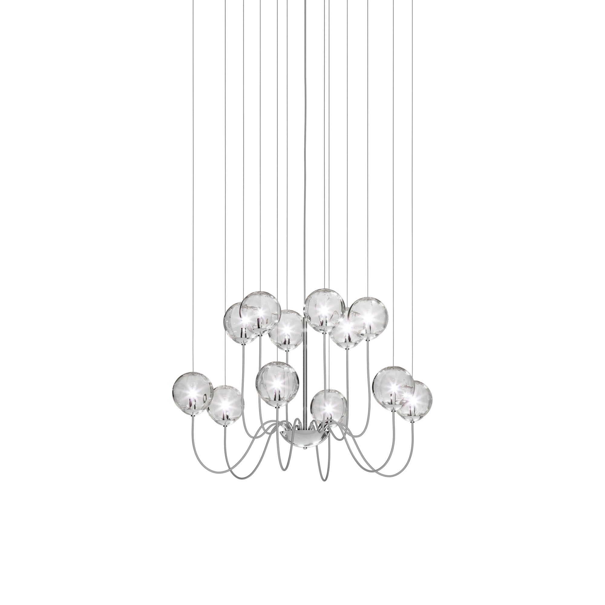 Find the balance between decadence and simplicity with the Puppet Chandelier from Vistosi, perfecting the art of transforming lighting into gallery-style artistry. The sheer delicacy of glass spheres become instrumental in radiating soft light and delivering a captivating aesthetic. Subtle metal holders and suspension cords embellish the contemporary feel of this stylish fixture.
