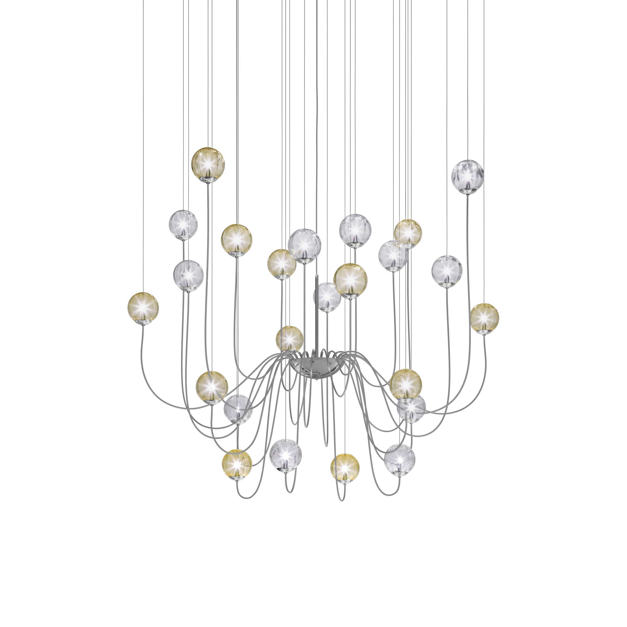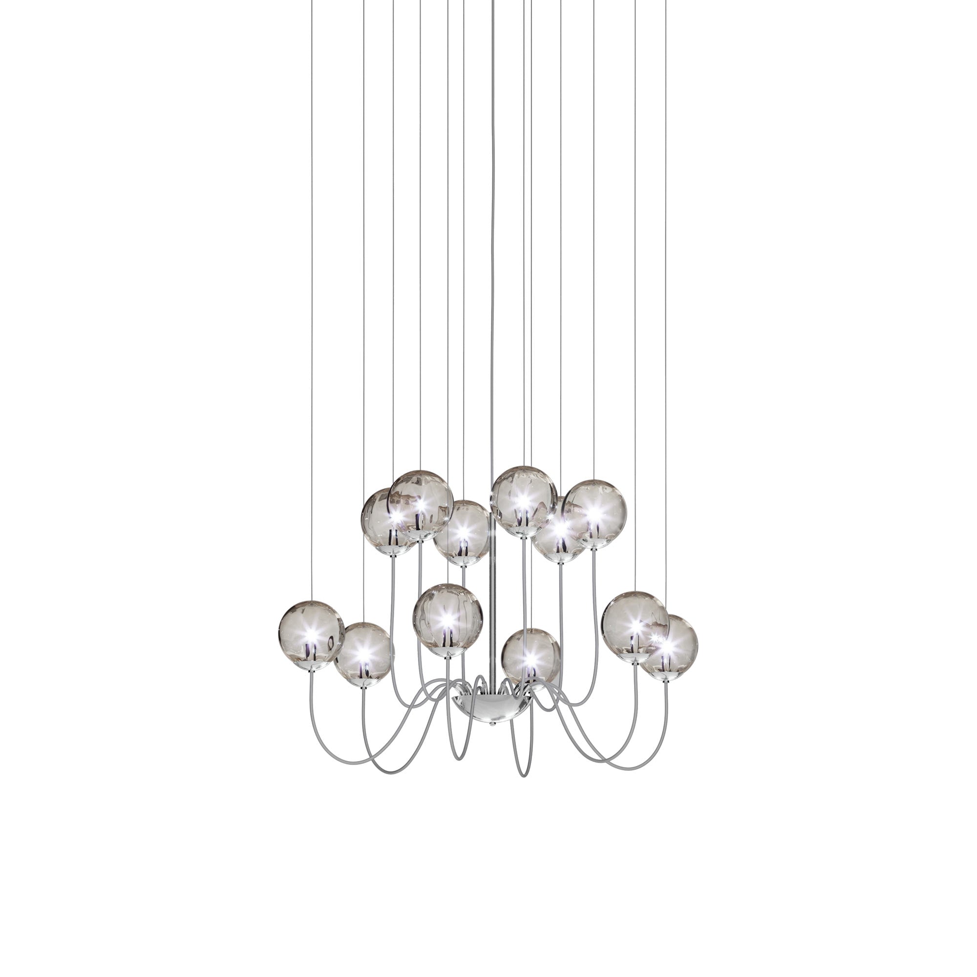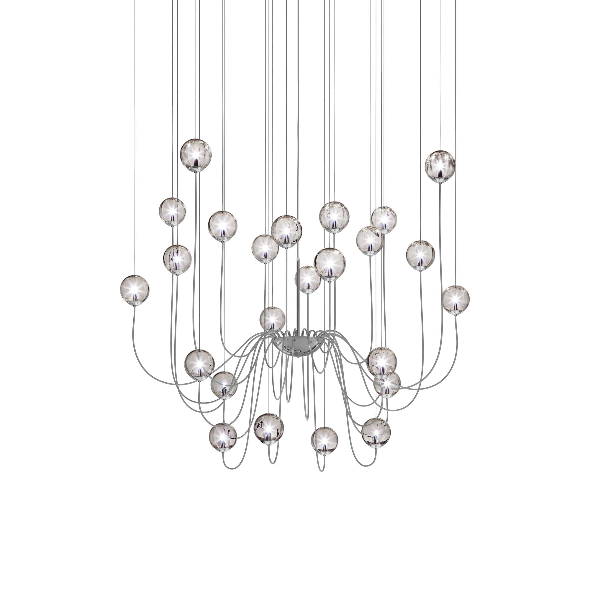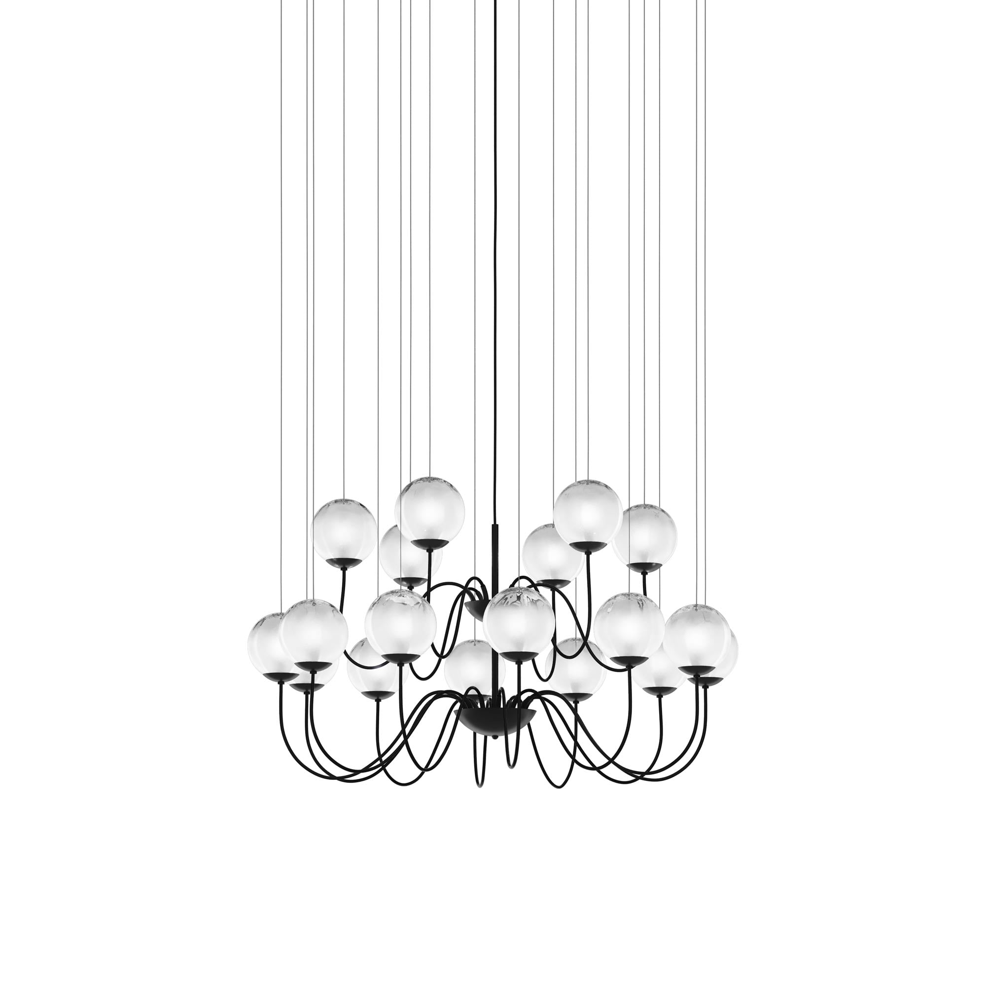 Find the balance between decadence and simplicity with the Puppet Chandelier from Vistosi, perfecting the art of transforming lighting into gallery-style artistry. The sheer delicacy of glass spheres become instrumental in radiating soft light and delivering a captivating aesthetic. Subtle metal holders and suspension cords embellish the contemporary feel of this stylish fixture.