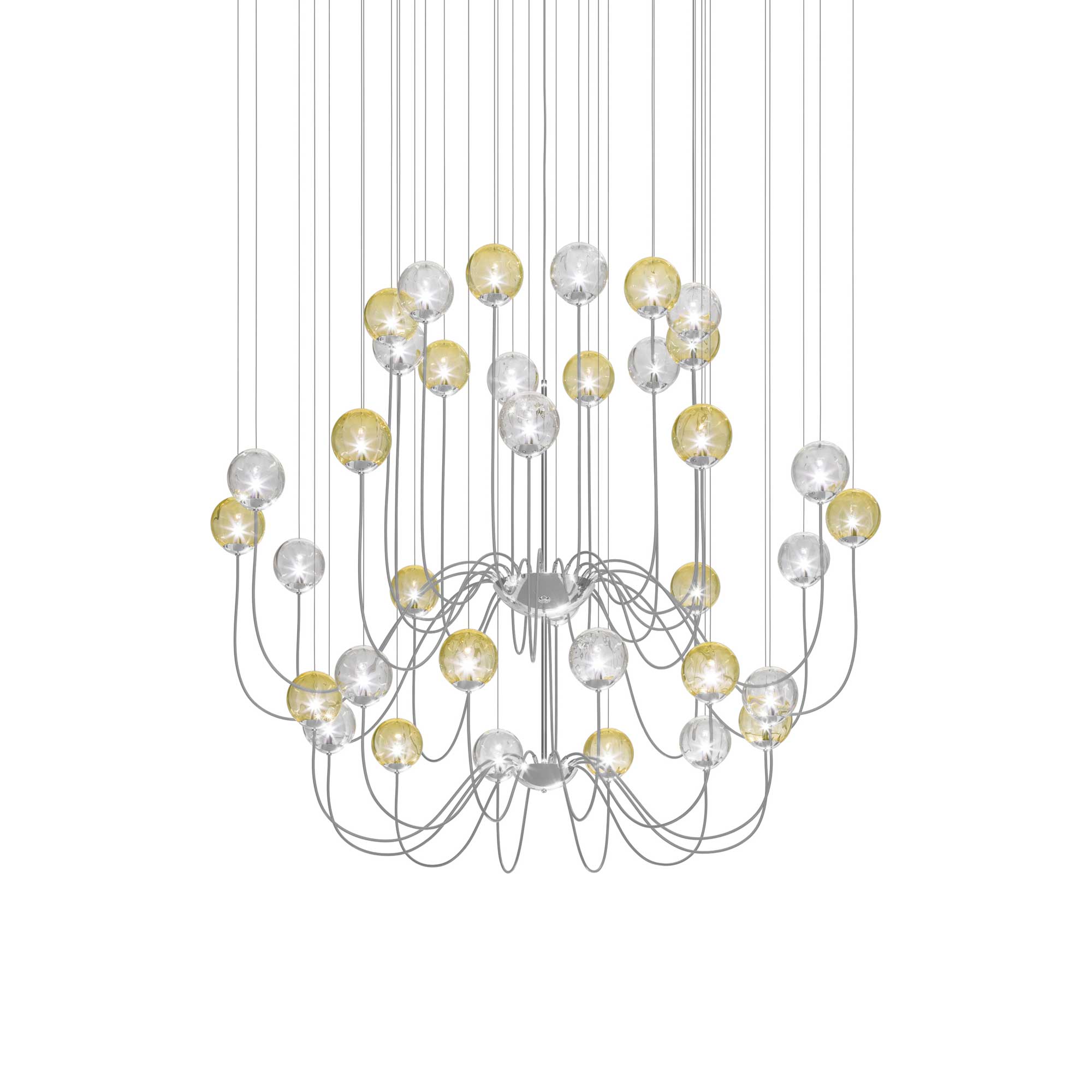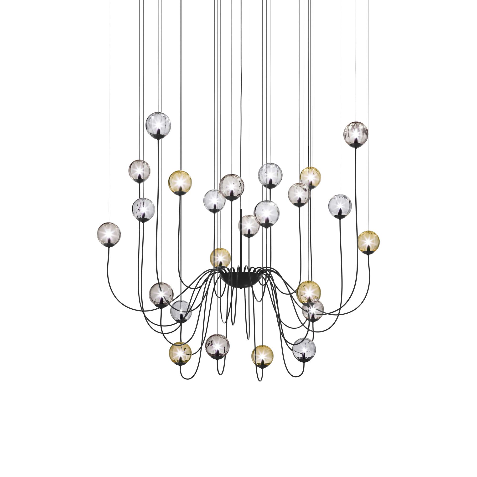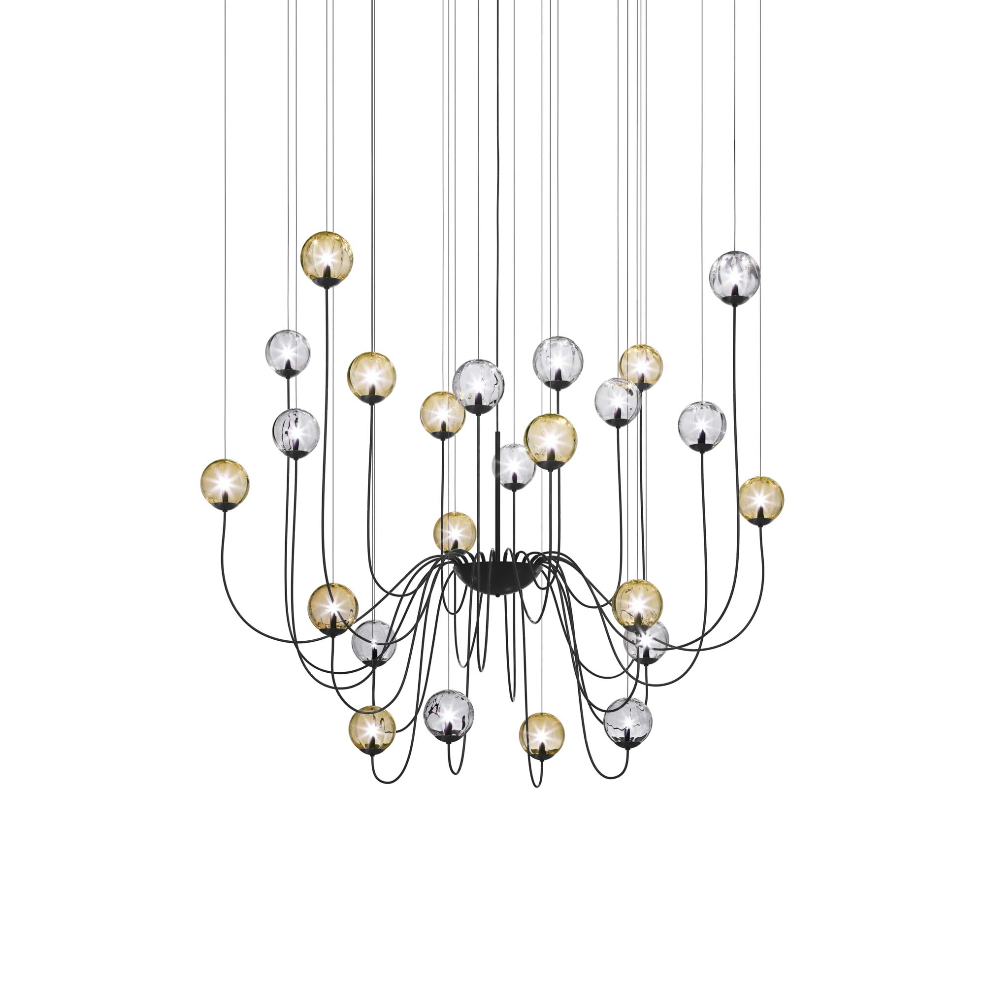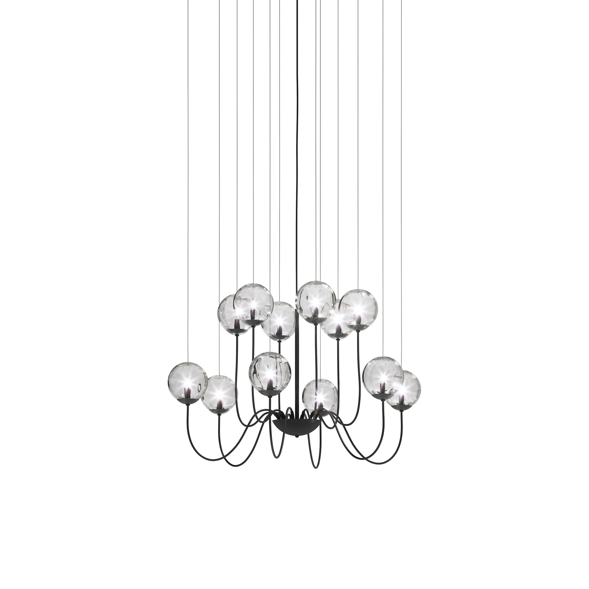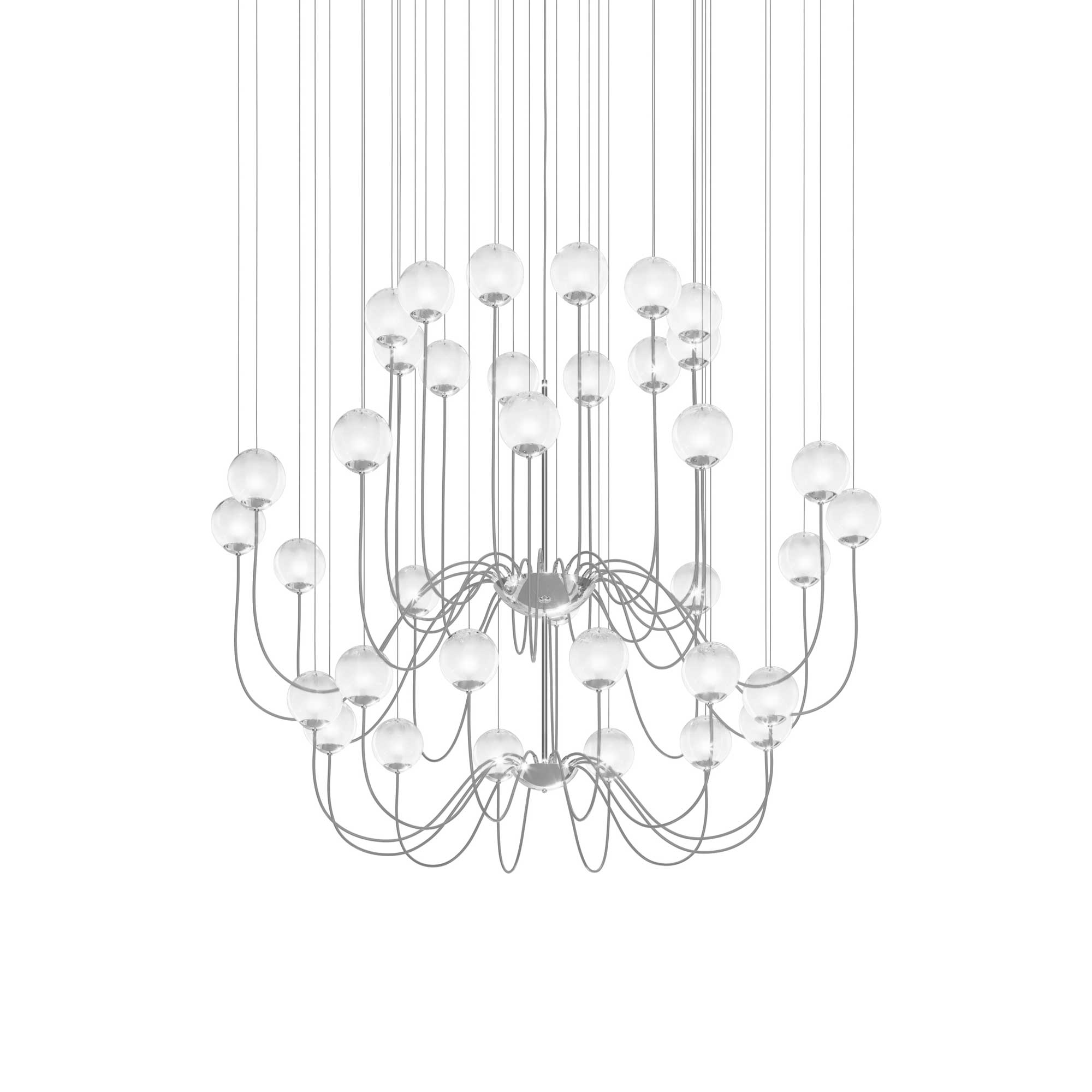 Find the balance between decadence and simplicity with the Puppet Chandelier from Vistosi, perfecting the art of transforming lighting into gallery-style artistry. The sheer delicacy of glass spheres become instrumental in radiating soft light and delivering a captivating aesthetic. Subtle metal holders and suspension cords embellish the contemporary feel of this stylish fixture.