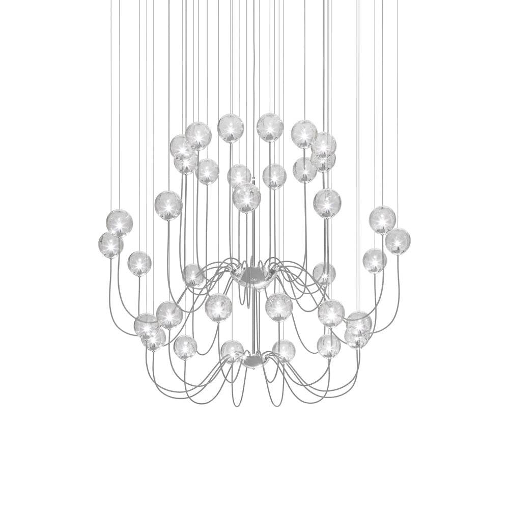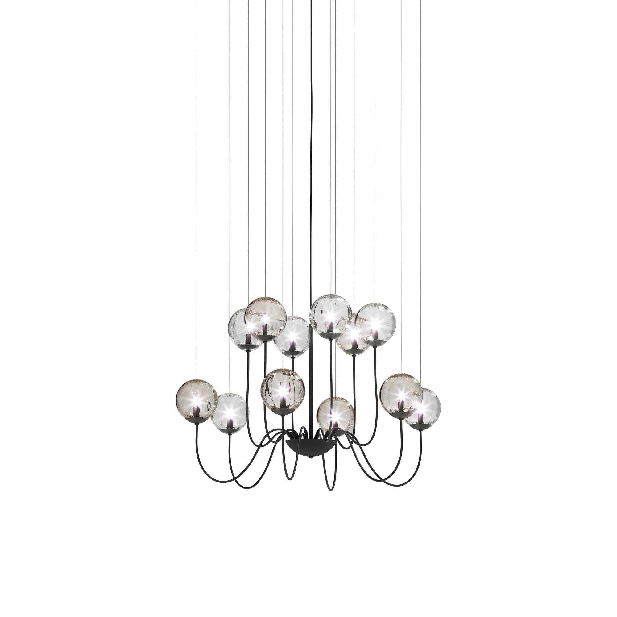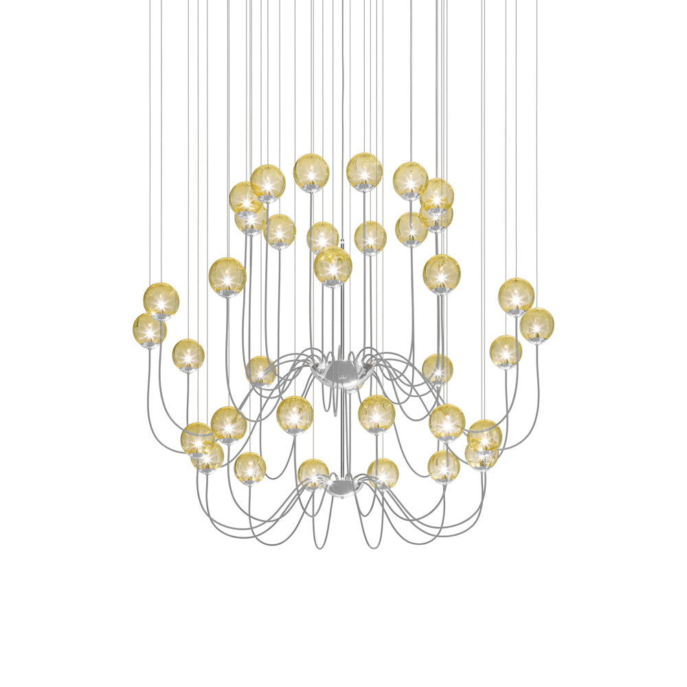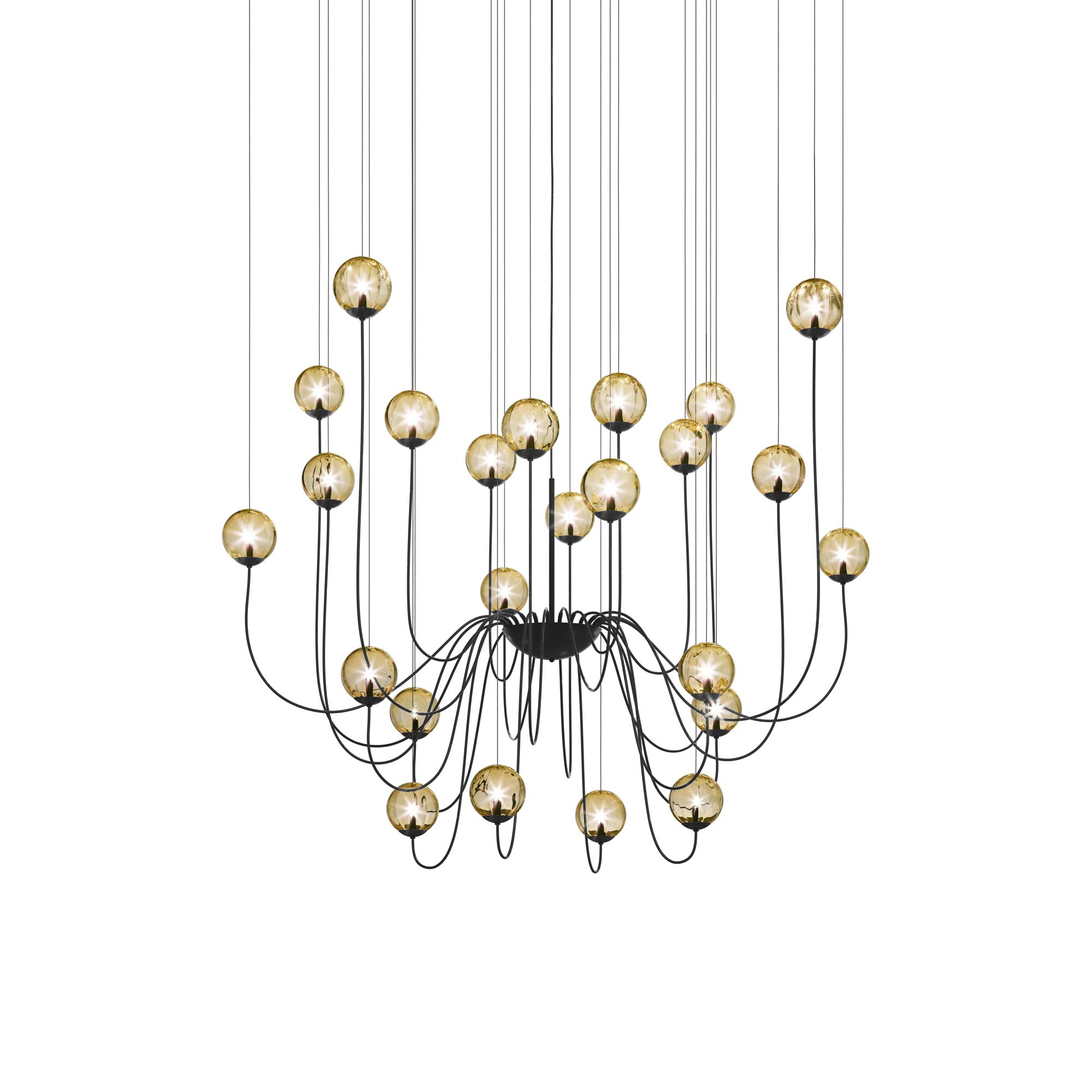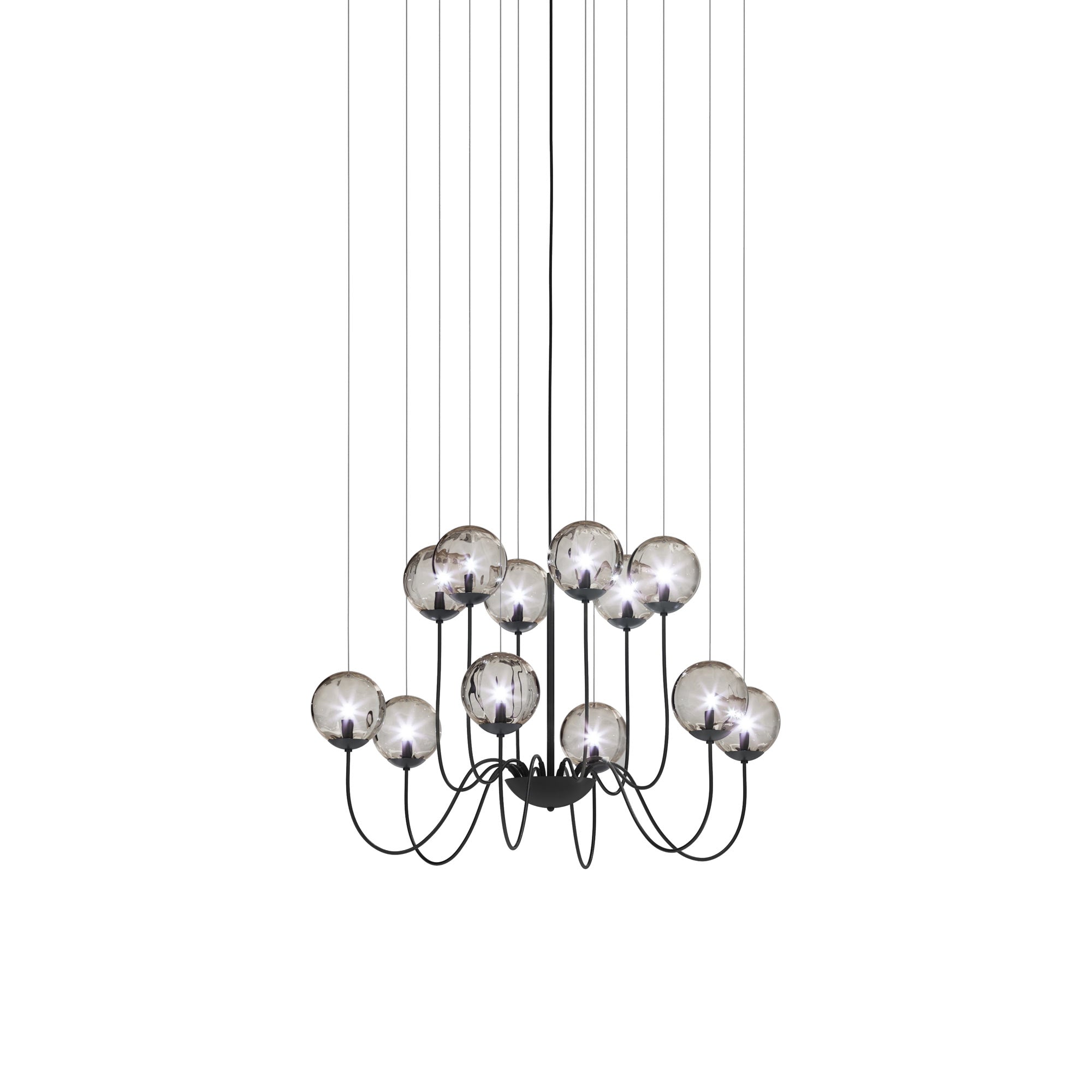 Find the balance between decadence and simplicity with the Puppet Chandelier from Vistosi, perfecting the art of transforming lighting into gallery-style artistry. The sheer delicacy of glass spheres become instrumental in radiating soft light and delivering a captivating aesthetic. Subtle metal holders and suspension cords embellish the contemporary feel of this stylish fixture.