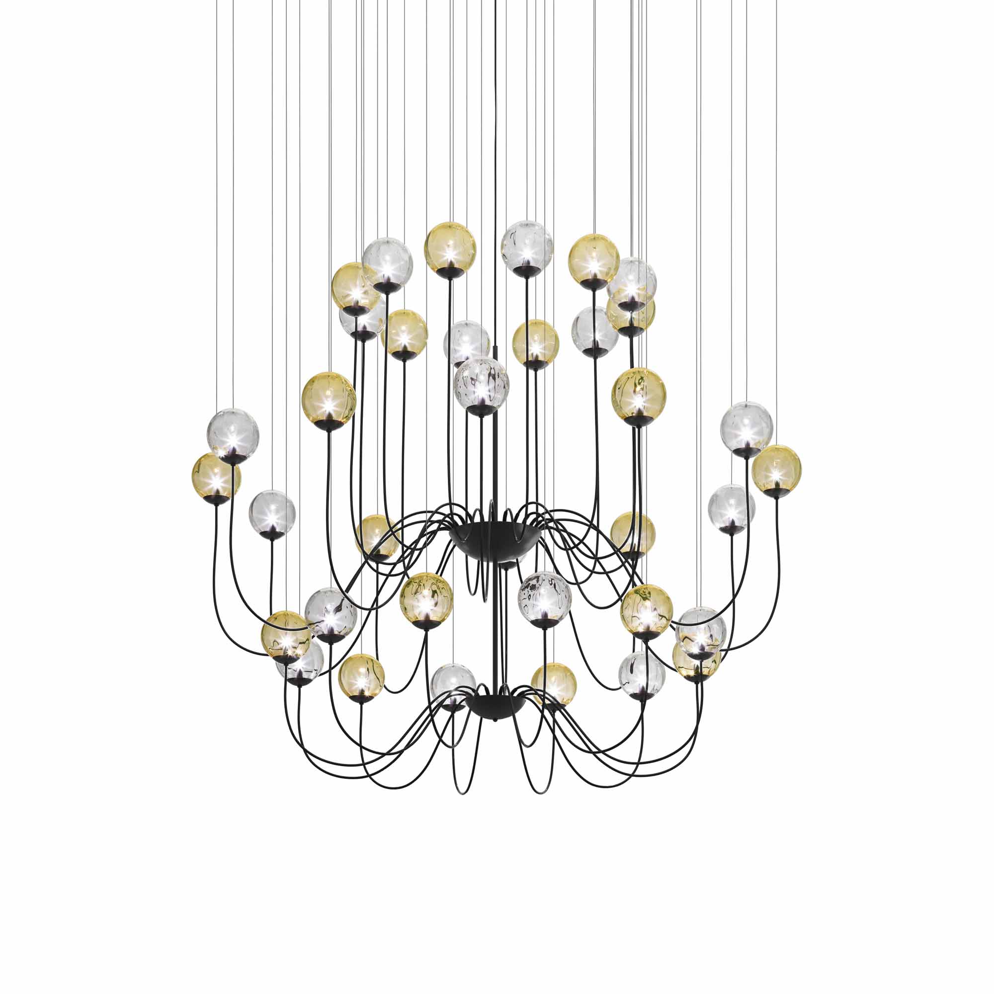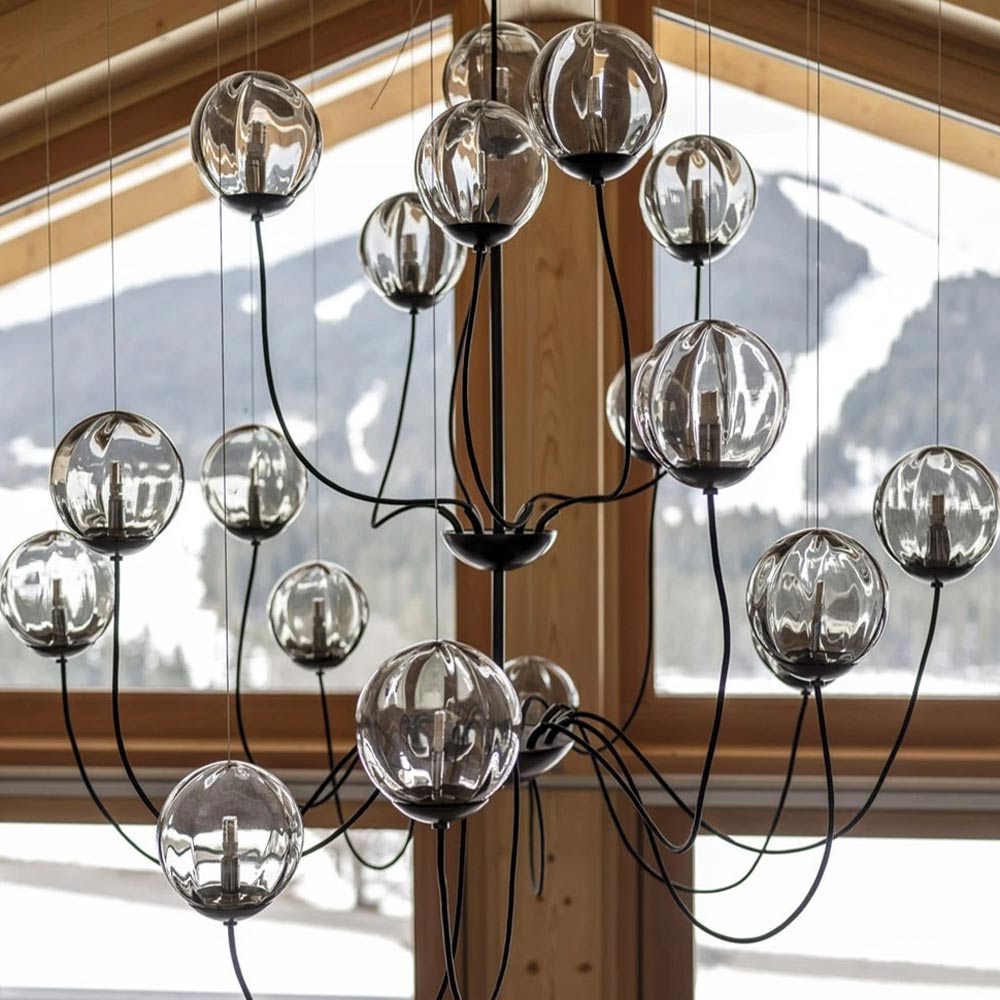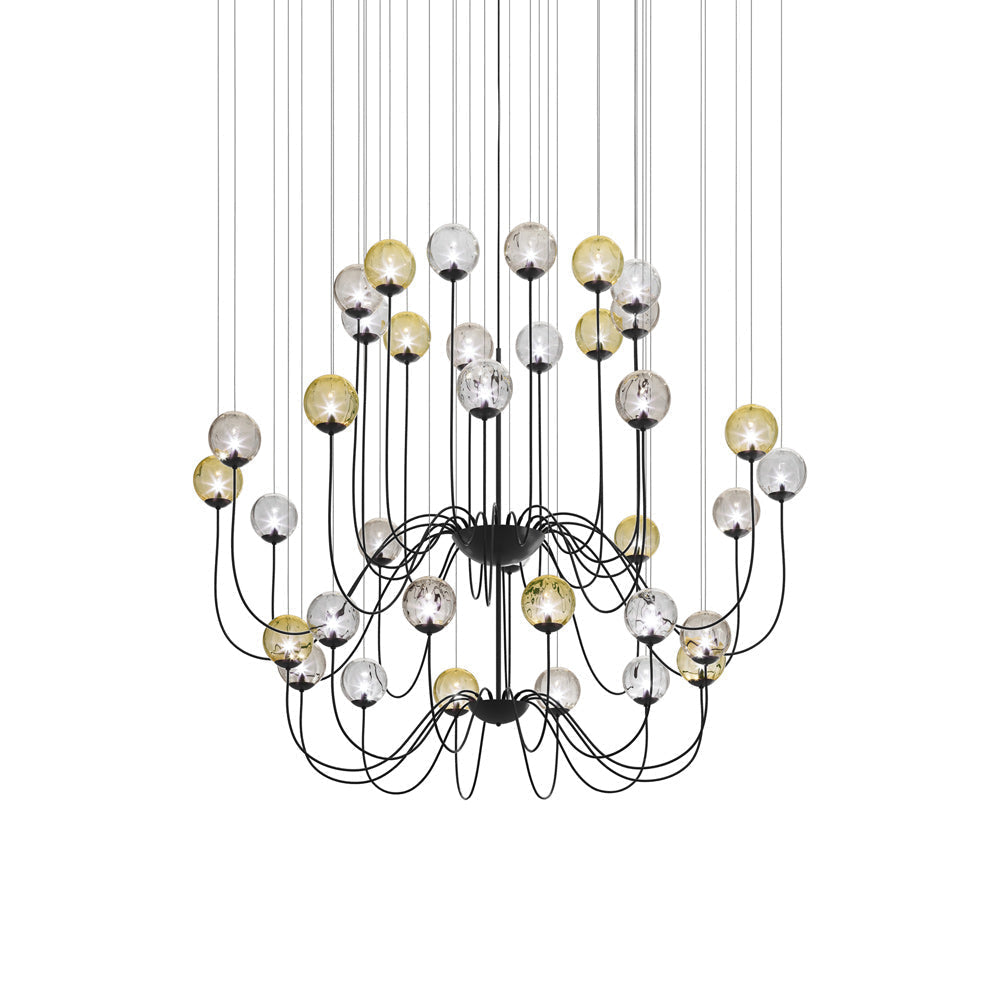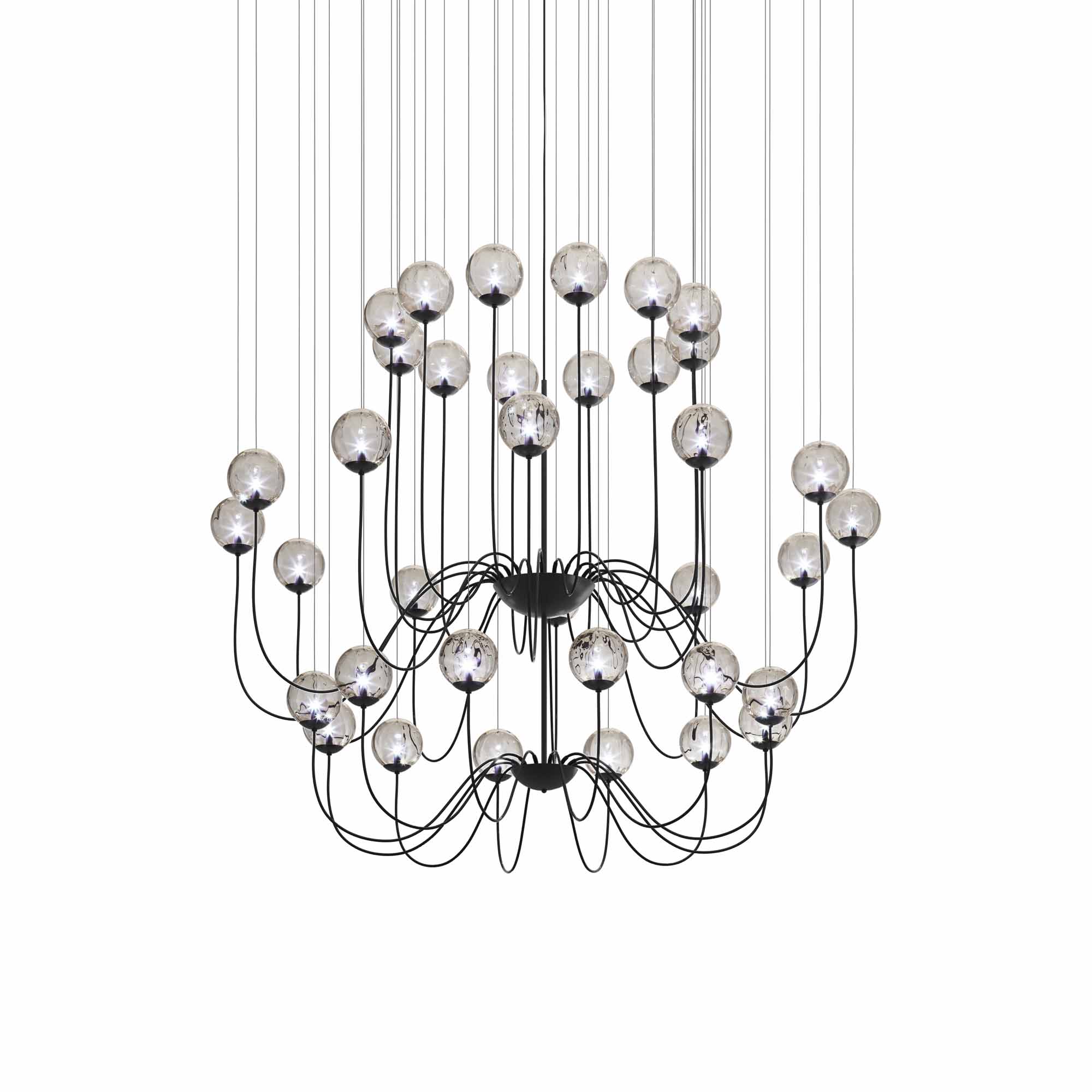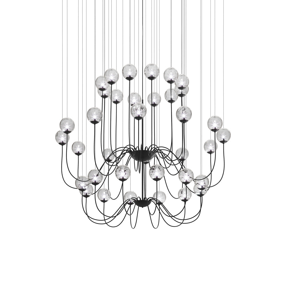 Find the balance between decadence and simplicity with the Puppet Chandelier from Vistosi, perfecting the art of transforming lighting into gallery-style artistry. The sheer delicacy of glass spheres become instrumental in radiating soft light and delivering a captivating aesthetic. Subtle metal holders and suspension cords embellish the contemporary feel of this stylish fixture.