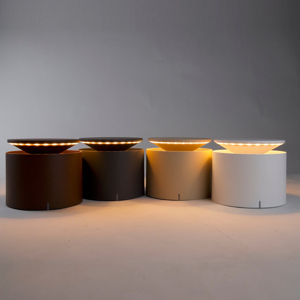 A nouveau design is impressive and stylish in a light source with updated features. The PushUp Pro LED Table Lamp from Zafferano America captures the benefits of contemporary lighting with a chic design, cordless and efficient as it powers up with a contact-induction charging base including a USB port. For use inside or outside, this compact, refined table lamp is made of die-cast aluminum in a cylinder shape, as energy-efficient light escapes through a lid that lifts when pressed.