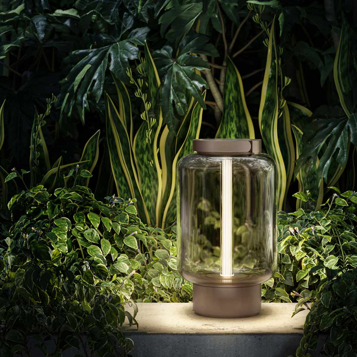 Decorative glass and a sleek light core create a chic look for the Qu Outdoor LED Portable Table Lamp from IP44.DE. A jug-like silhouette is crisp and clean, with a half-moon handle for easy portability within your backyard.