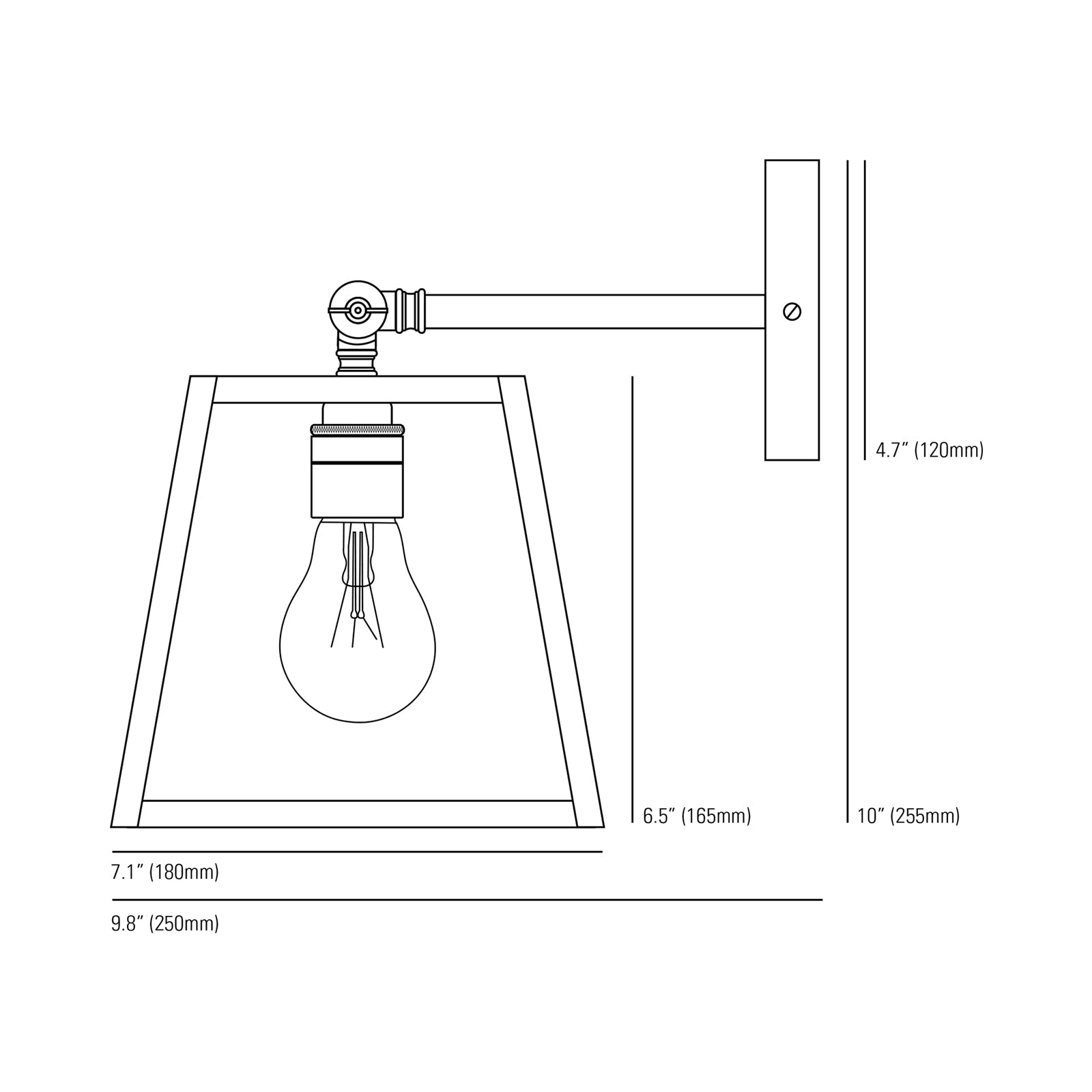 - Dimensions: 7.1"W X 10"H; 9.8" Extension